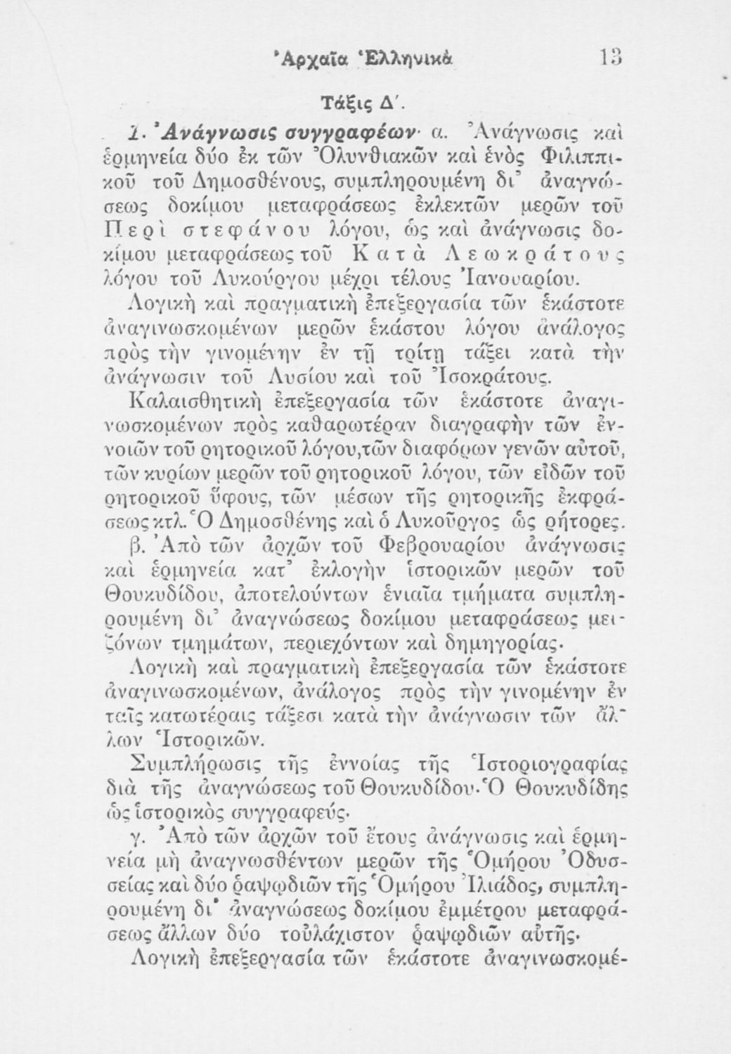 Βαθμίδα εκπαίδευσης: Δευτεροβάθμια Τάξη: Γυμνάσιο Γλώσσα: Καθαρεύουσα Παρουσίαση περιεχομένου: Έκδοση του Υπουργείου Παιδείας και Θρησκευμάτων που περιέχει τις κατευθυντήριες γραμμές και αποφάσεις του Υπουργείου Παιδείας για το αναλυτικό πρόγραμμα του Γυμνασίου κατά τα έτη 1931-1932. |