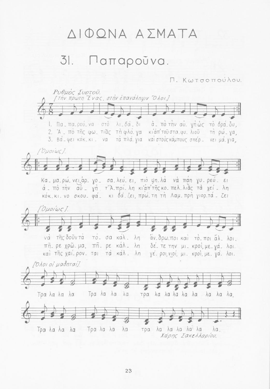 Σχολικά τραγούδια. Προς χρήσιν των σχολείων Δημ. και Μ. Εκπαιδεύσεως