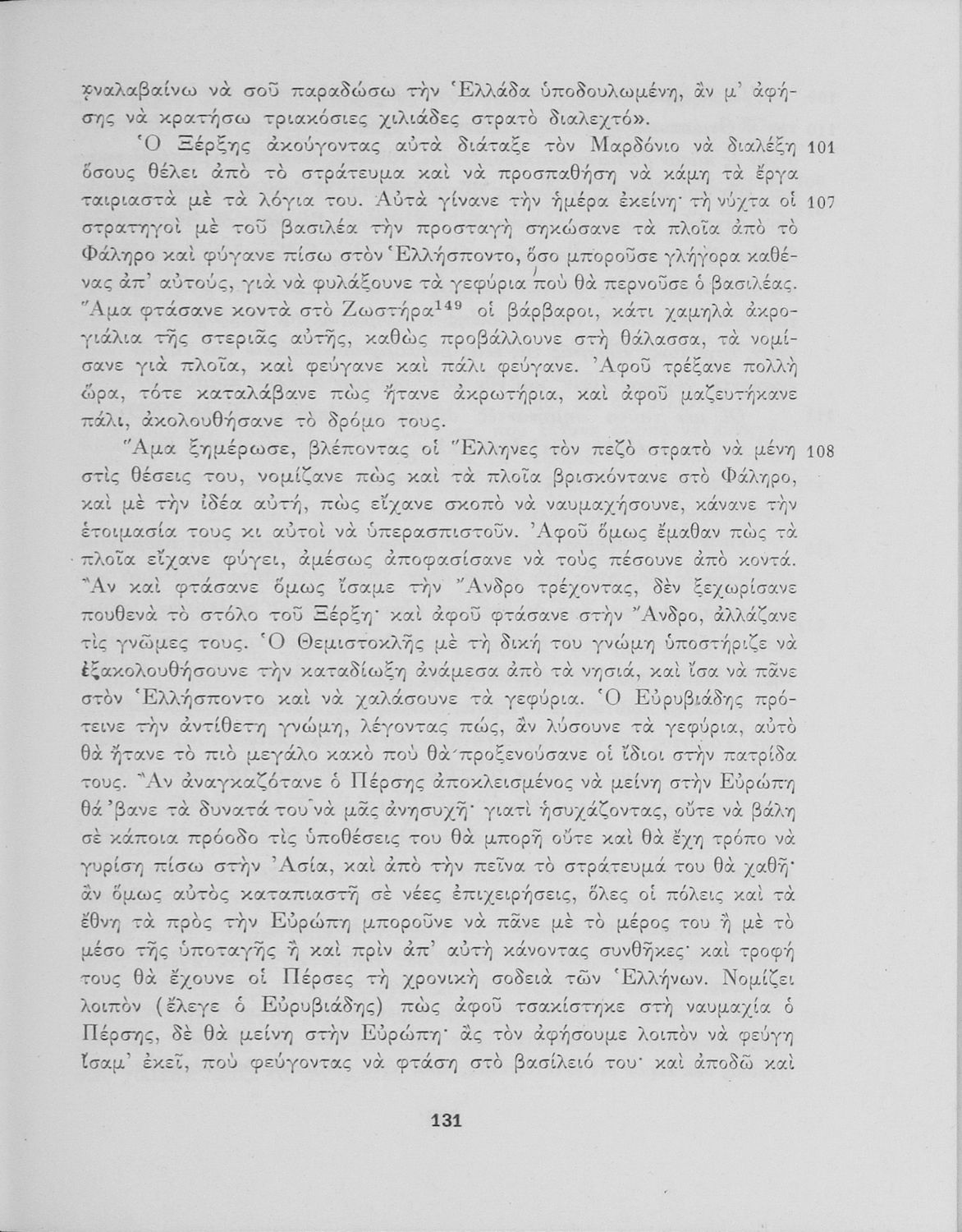 Σχολικό εγχειρίδιο Αρχαίων Ελληνικών Γυμνασίου που περιέχει αποσπάσματα από το έργο του Ηρόδοτου Περσικοί Πόλεμοι, μετάφραση, εισαγωγή στη ζωή και το έργο του, και ερμηνευτικά σχόλια. Περιλαμβάνει παράρτημα με