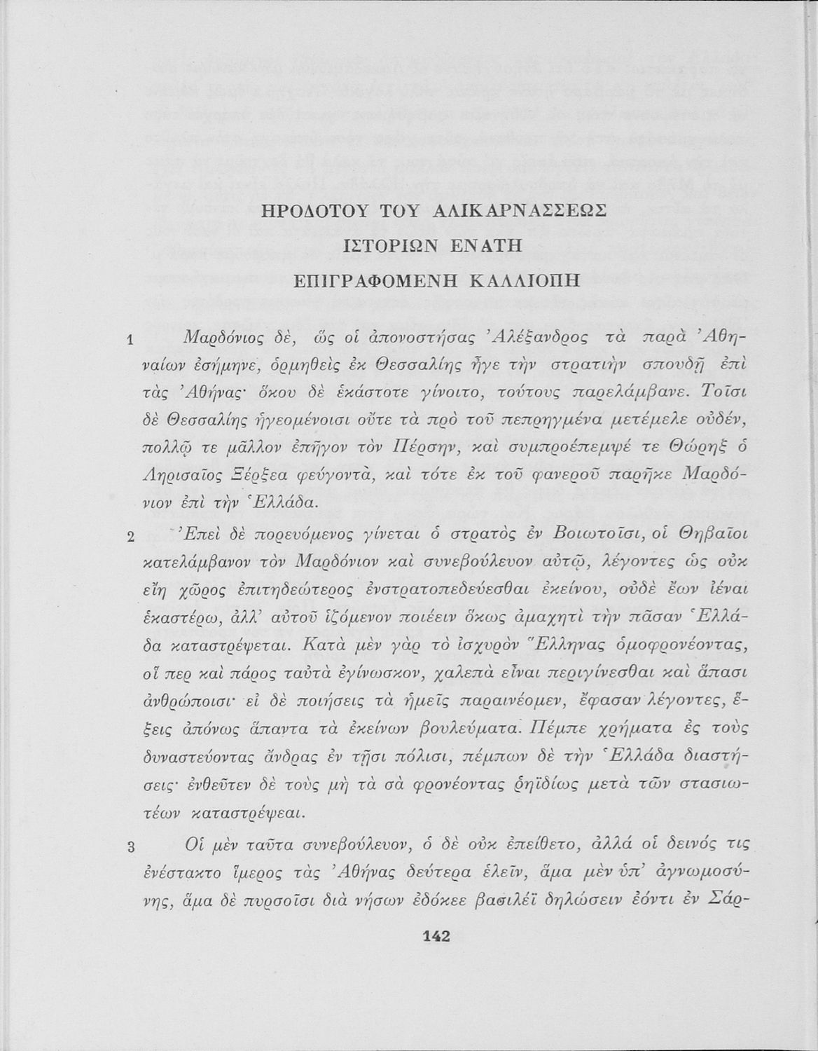 Σχολικό εγχειρίδιο Αρχαίων Ελληνικών Γυμνασίου που περιέχει αποσπάσματα από το έργο του Ηρόδοτου Περσικοί Πόλεμοι, μετάφραση, εισαγωγή στη ζωή και το έργο του, και ερμηνευτικά σχόλια. Περιλαμβάνει παράρτημα με