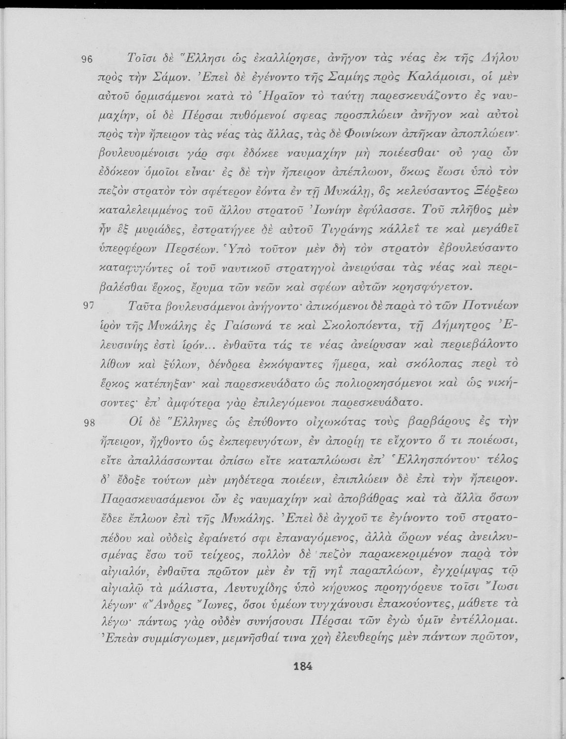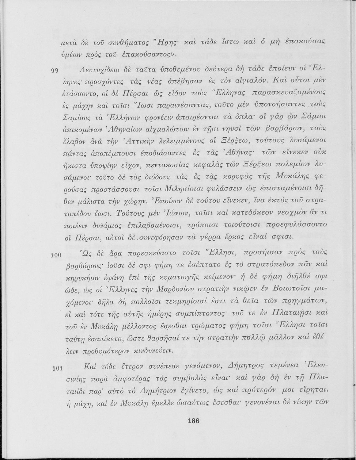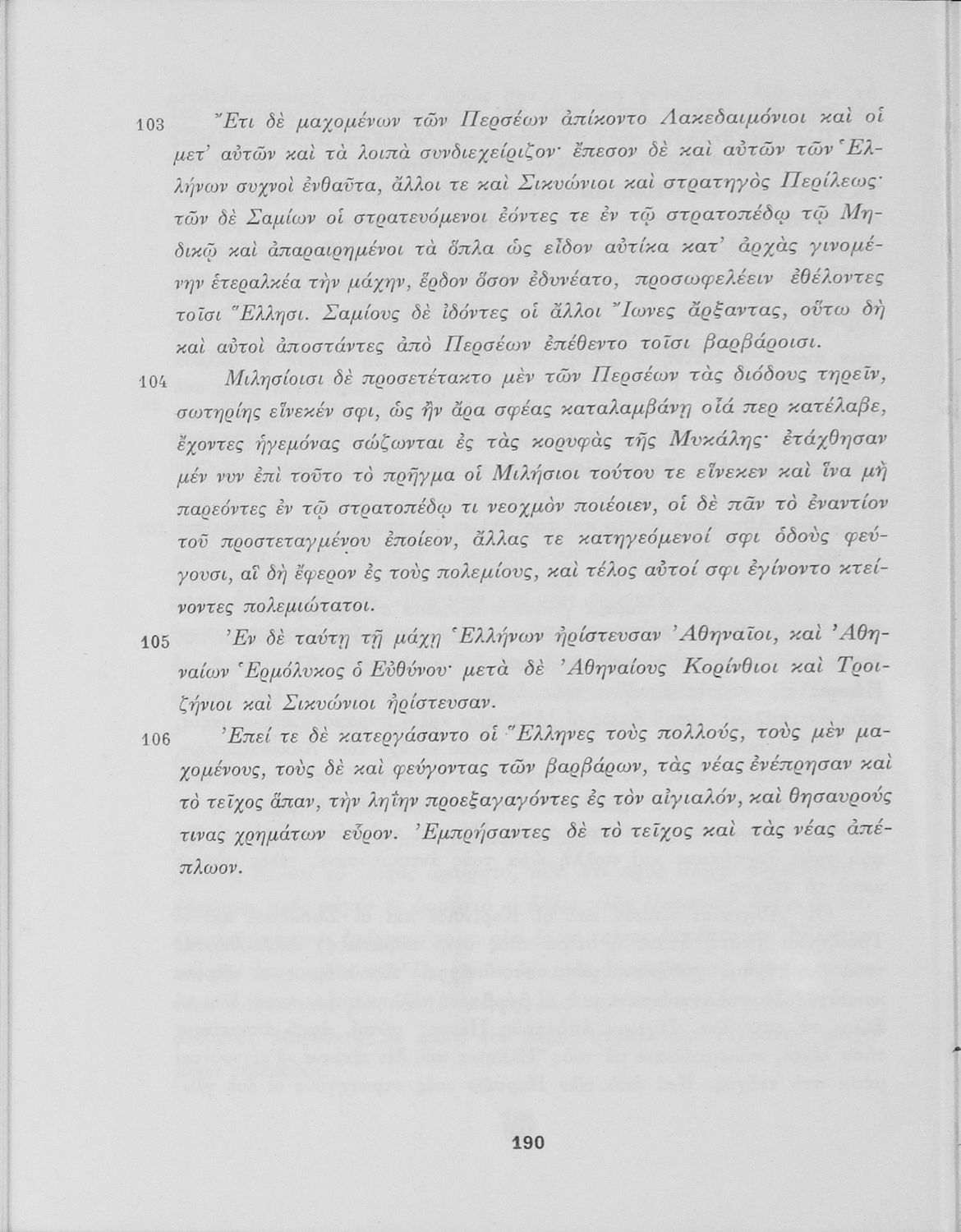 Σχολικό εγχειρίδιο Αρχαίων Ελληνικών Γυμνασίου που περιέχει αποσπάσματα από το έργο του Ηρόδοτου Περσικοί Πόλεμοι, μετάφραση, εισαγωγή στη ζωή και το έργο του, και ερμηνευτικά σχόλια. Περιλαμβάνει παράρτημα με