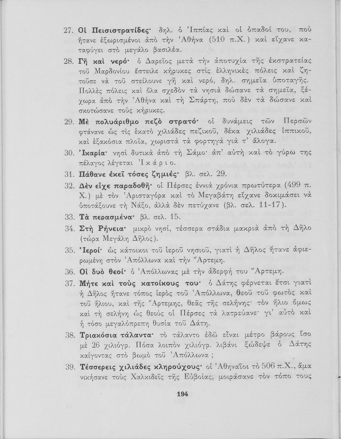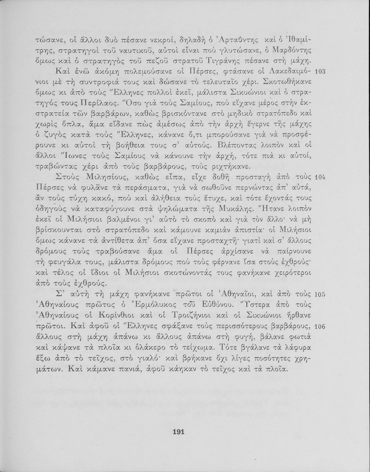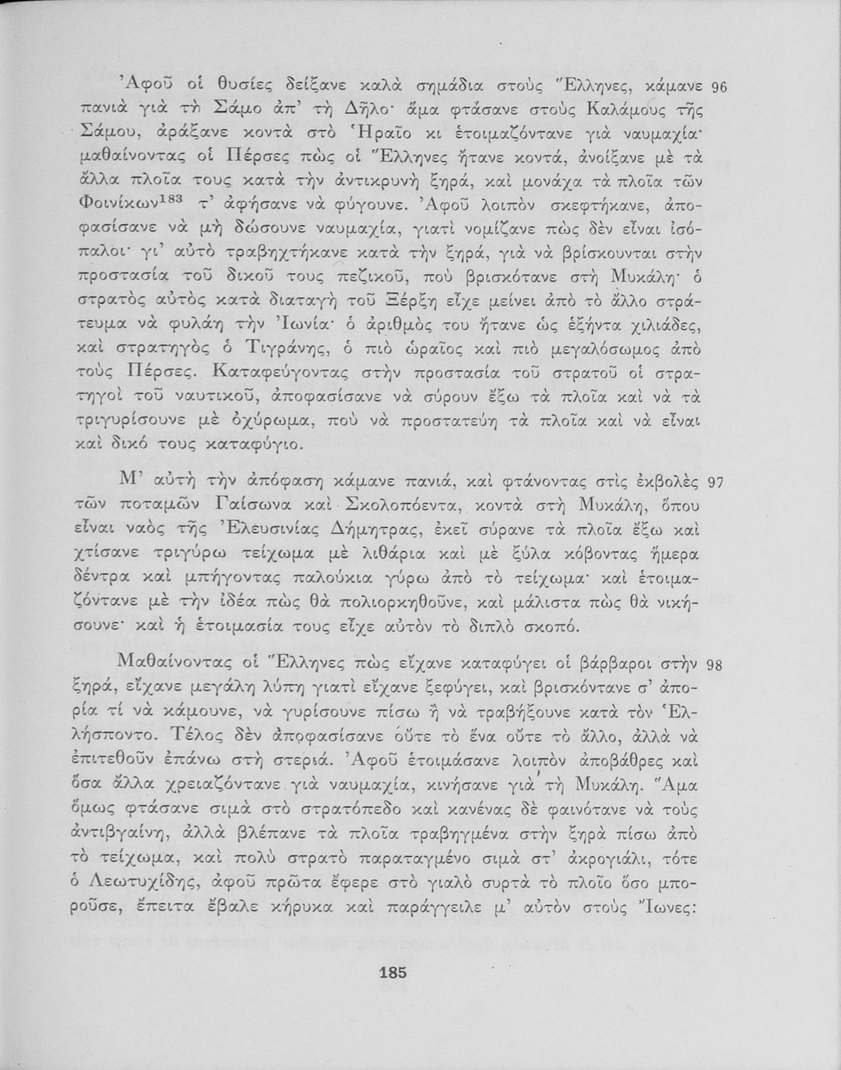 Σχολικό εγχειρίδιο Αρχαίων Ελληνικών Γυμνασίου που περιέχει αποσπάσματα από το έργο του Ηρόδοτου Περσικοί Πόλεμοι, μετάφραση, εισαγωγή στη ζωή και το έργο του, και ερμηνευτικά σχόλια. Περιλαμβάνει παράρτημα με