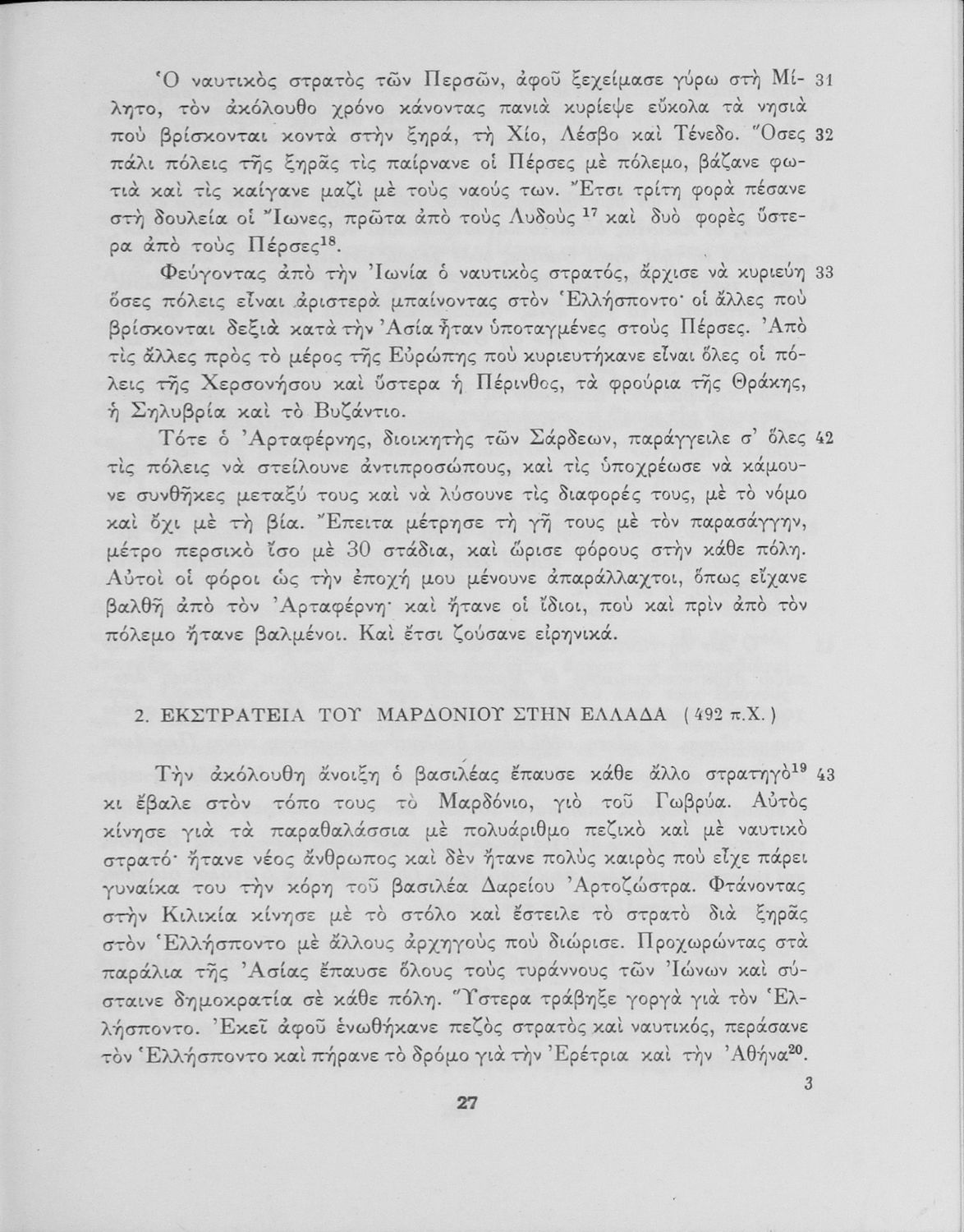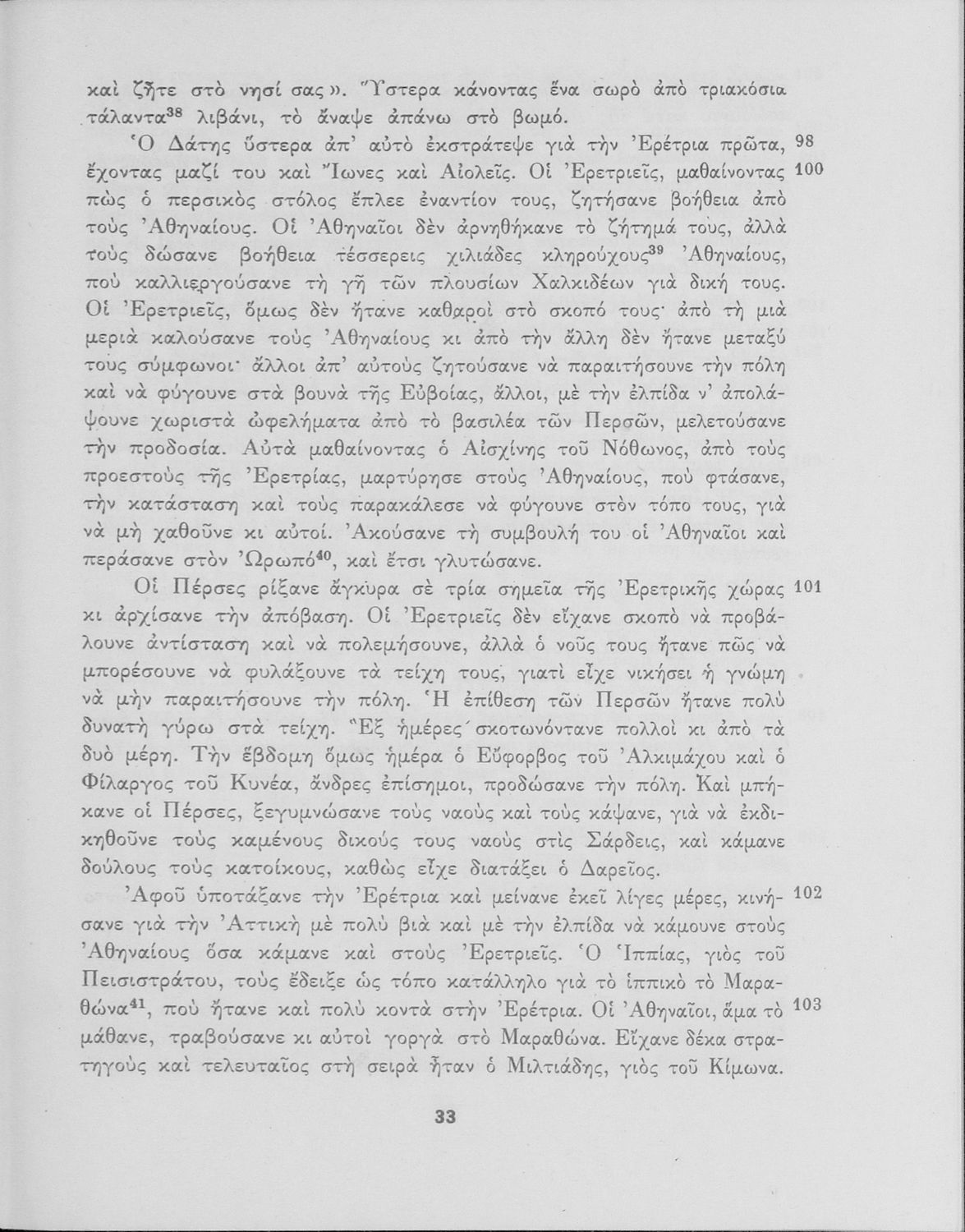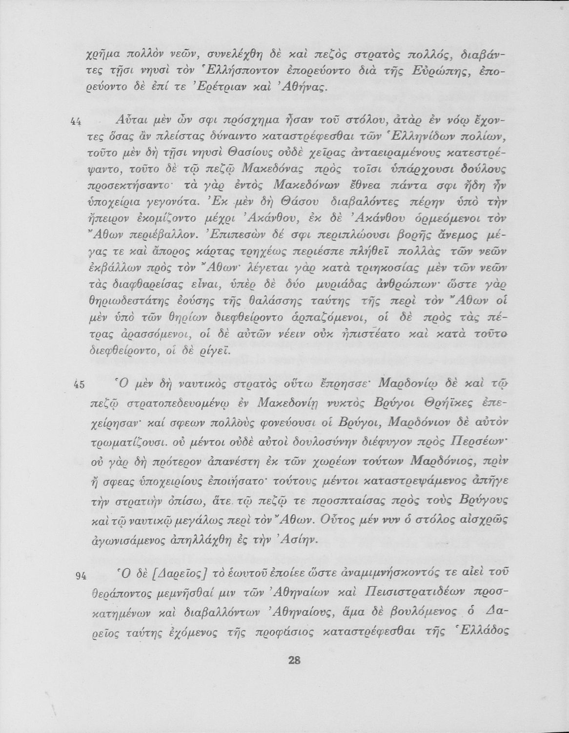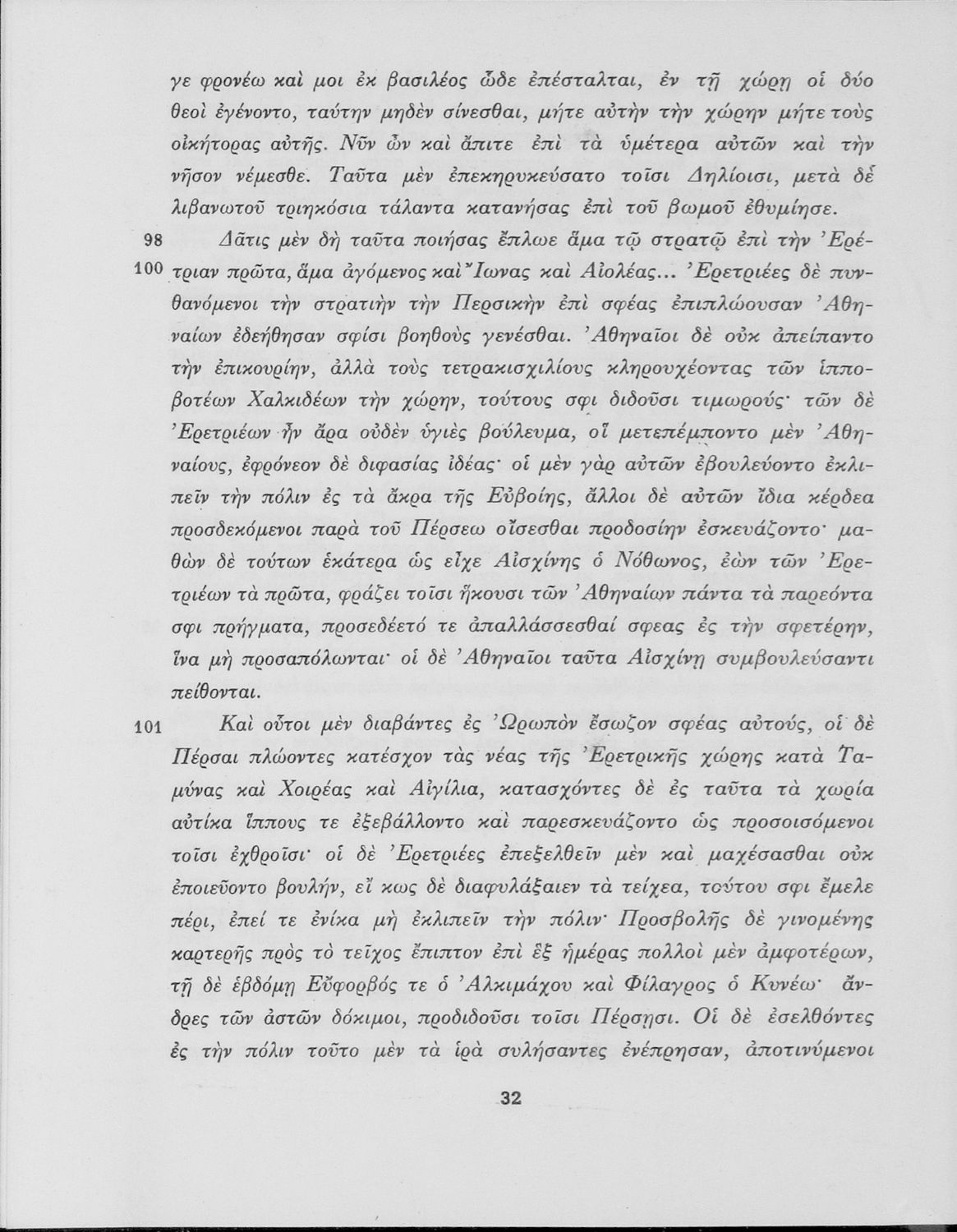 Σχολικό εγχειρίδιο Αρχαίων Ελληνικών Γυμνασίου που περιέχει αποσπάσματα από το έργο του Ηρόδοτου Περσικοί Πόλεμοι, μετάφραση, εισαγωγή στη ζωή και το έργο του, και ερμηνευτικά σχόλια. Περιλαμβάνει παράρτημα με χάρτες και σχεδιαγράμματα.