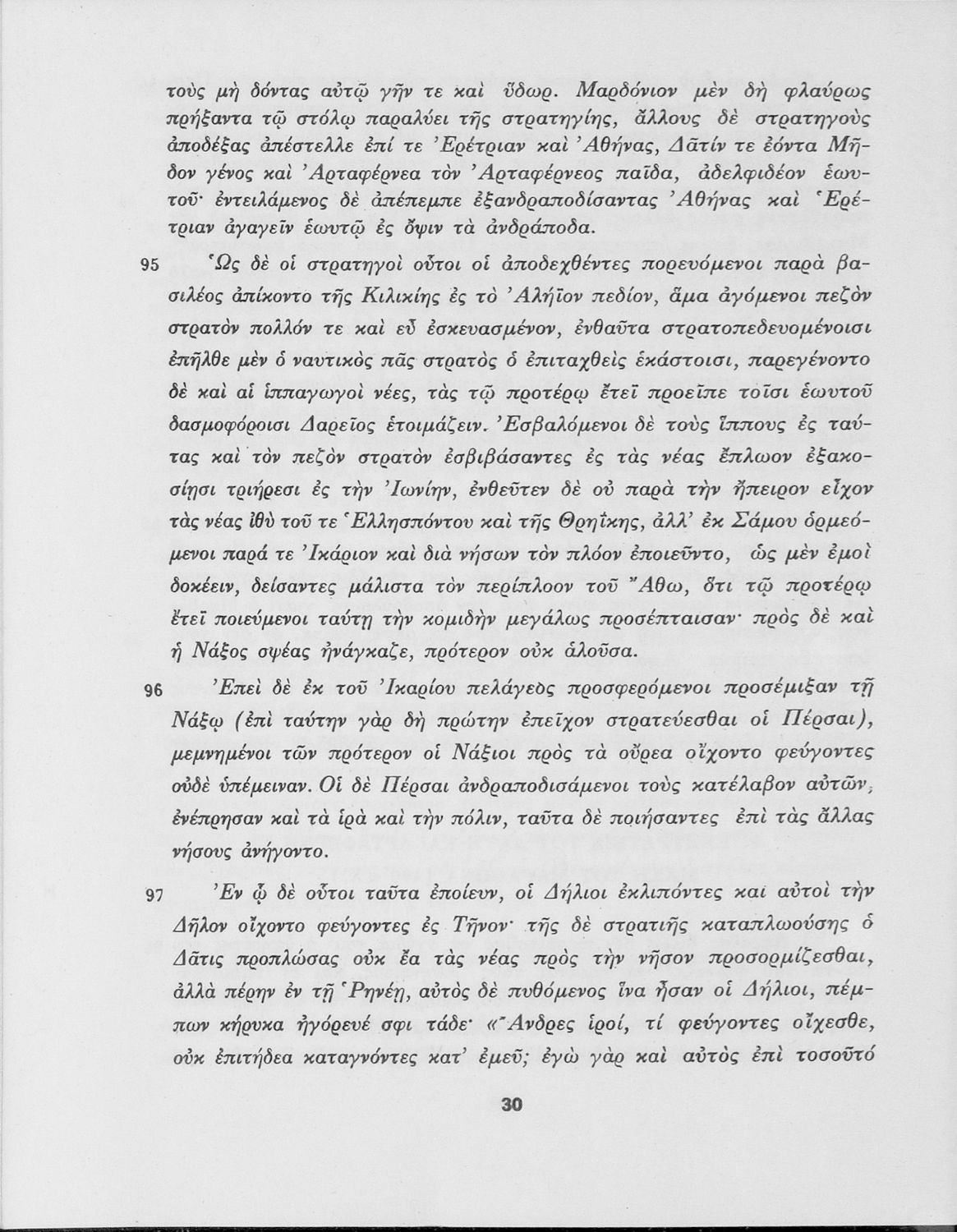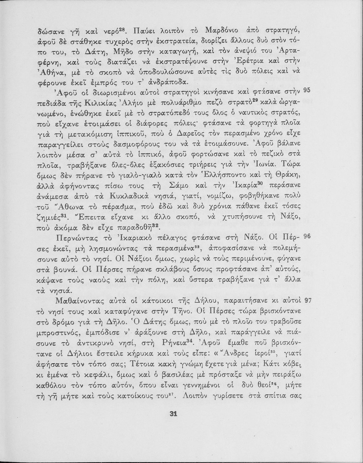 LDR 01399 2200205 4500 035 ## _a05-00063 040 ## _aΕργαστήρι Ιστορίας Ν.Ε. Εκπαίδευσης, Πανεπιστήμιο Ιωαννίνων 041 ## _ael 100 ## _aΗρόδοτος _aΓ. Βλαχογιάννης _aΚ. Κοσμάς (μετάφραση _aσχόλια) 110 ## _a063 245 0# _aΗροδότου Οι Περσικοί Πόλεμοι 250 ## _a1η Έκδοση 260 ## _aΑθήνα _bΟργανισμός Εκδόσεως Διδακτικών Βιβλίων _c1964 300 ## _a212 _bΣχεδιαγράμματα και σκίτσα (ασπρόμαυρα), εξώφυλλο (έγχρωμο) 520 ## _aΣχολικό εγχειρίδιο Αρχαίων Ελληνικών Γυμνασίου που περιέχει αποσπάσματα από το έργο του Ηρόδοτου Περσικοί Πόλεμοι, μετάφραση, εισαγωγή στη ζωή και το έργο του, και ερμηνευτικά σχόλια. Περιλαμβάνει παράρτημα με χάρτες και σχεδιαγράμματα. 522 ## _aΕλλάδα 546 ## _aΔημοτική 583 ## _a1249/4-10-1964 _c1964 650 #4 _aΑθηναίοι _aΔαρείος _aΘερμοπύλες _aΞέρξης _aΠλαταιές 700 ## _aΦρόσω Παντελίδη (εξώφυλλο)