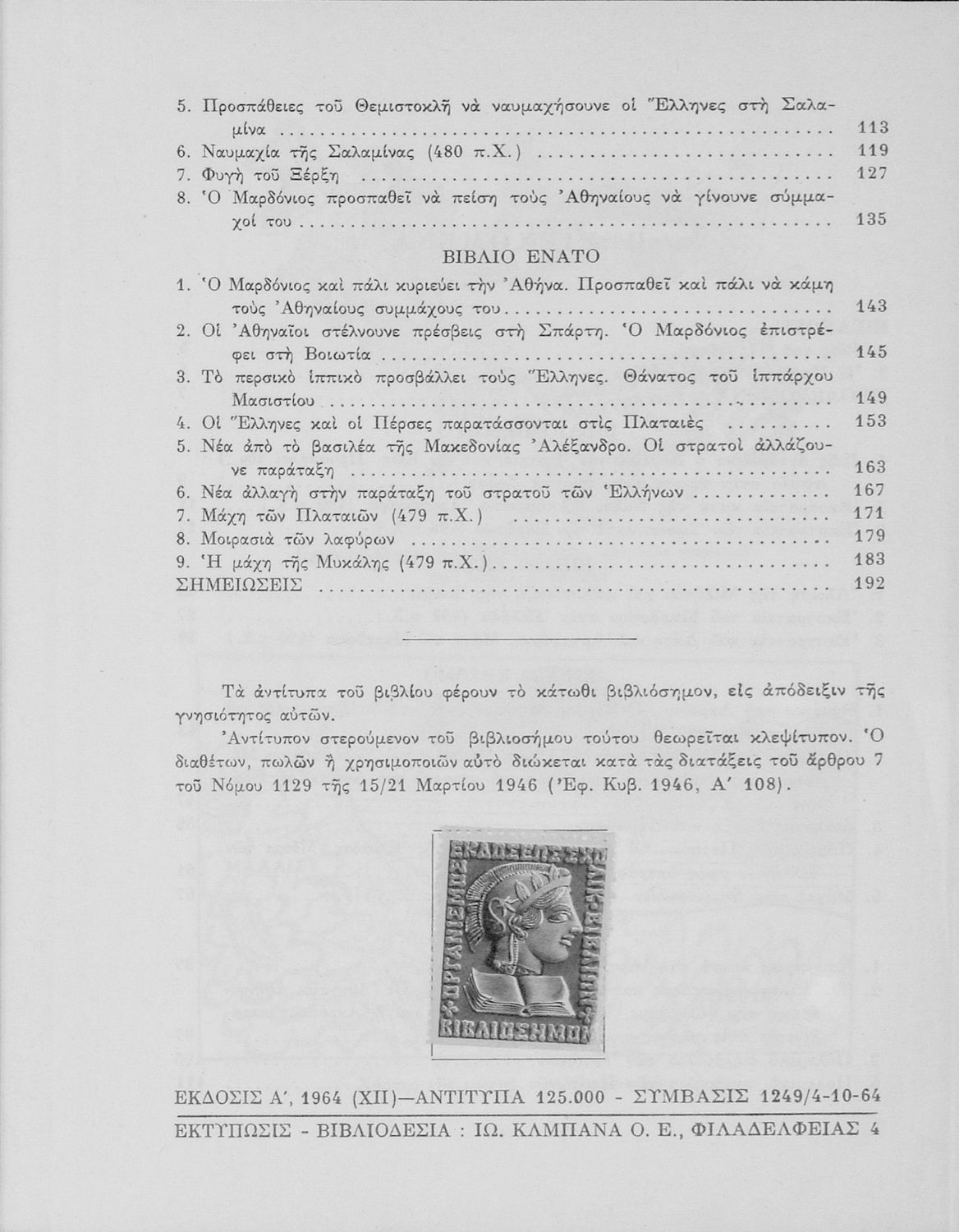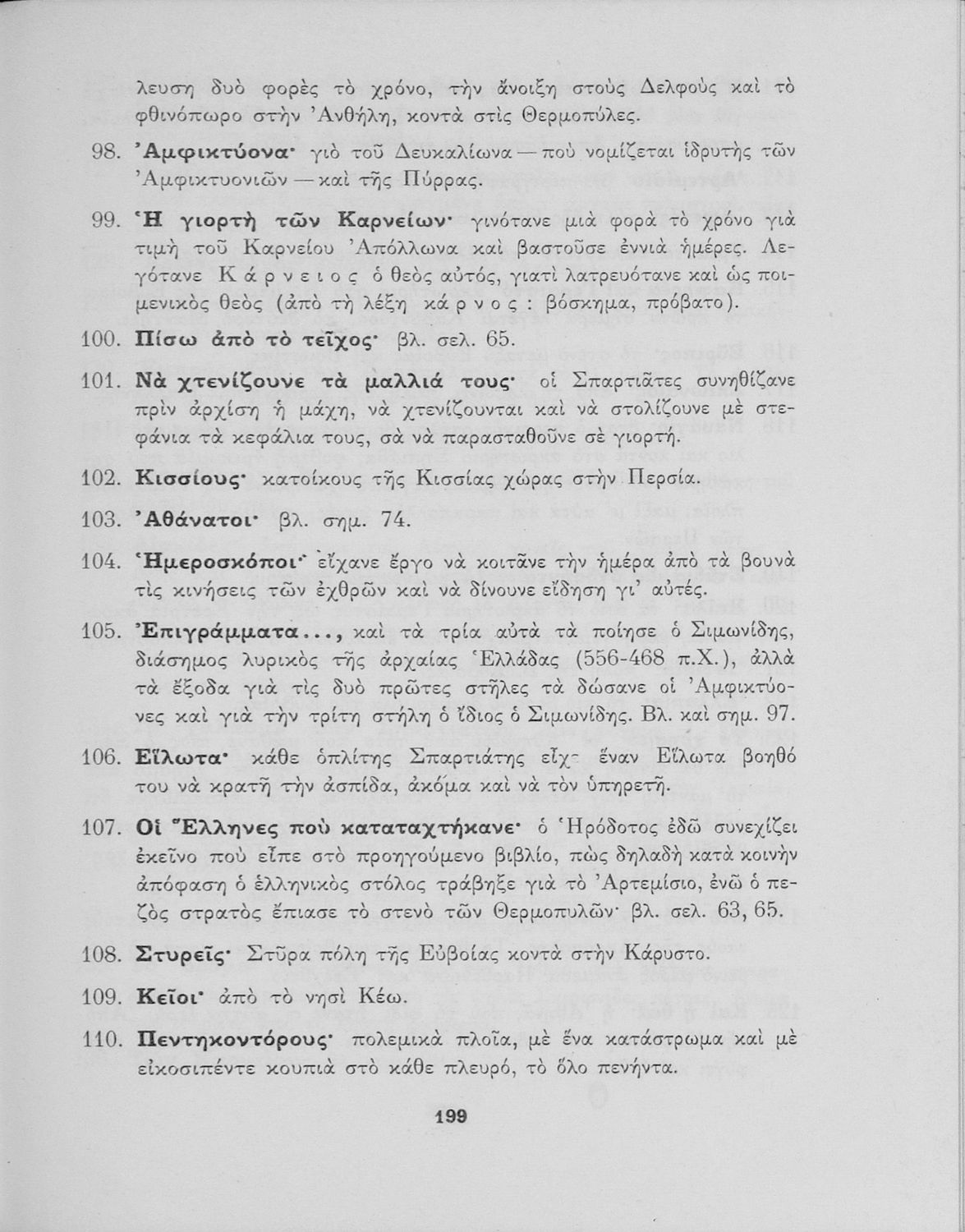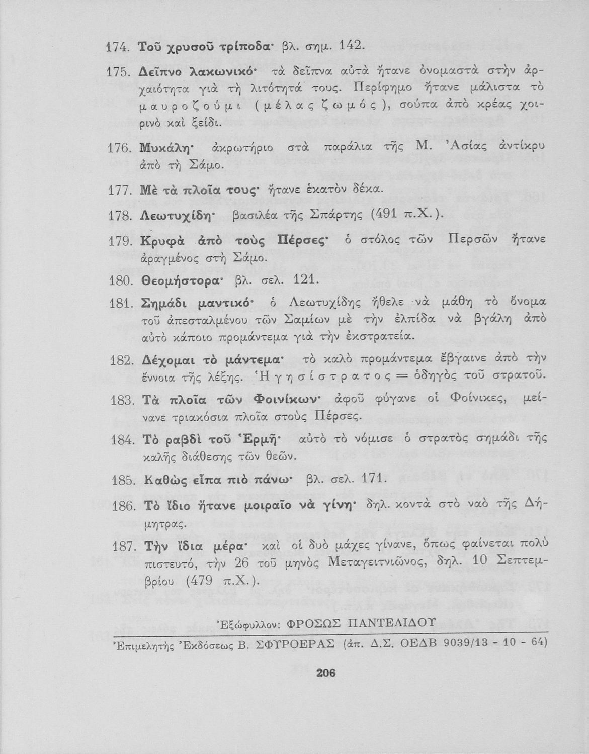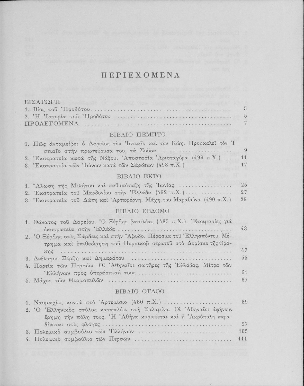 Σχολικό εγχειρίδιο Αρχαίων Ελληνικών Γυμνασίου που περιέχει αποσπάσματα από το έργο του Ηρόδοτου Περσικοί Πόλεμοι, μετάφραση, εισαγωγή στη ζωή και το έργο του, και ερμηνευτικά σχόλια. Περιλαμβάνει παράρτημα με