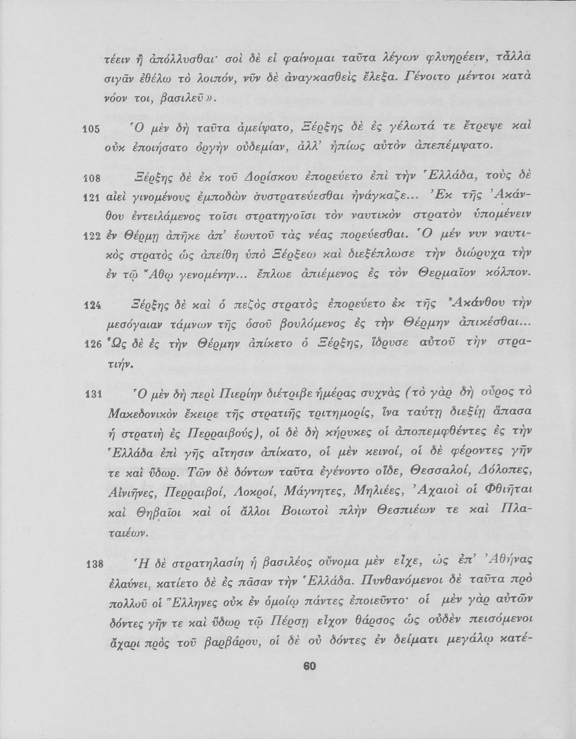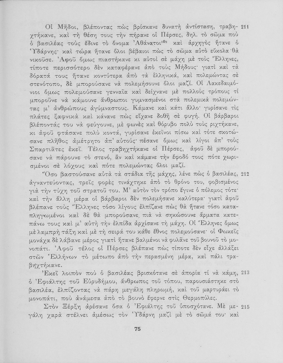 Σχολικό εγχειρίδιο Αρχαίων Ελληνικών Γυμνασίου που περιέχει αποσπάσματα από το έργο του Ηρόδοτου Περσικοί Πόλεμοι, μετάφραση, εισαγωγή στη ζωή και το έργο του, και ερμηνευτικά σχόλια. Περιλαμβάνει παράρτημα με