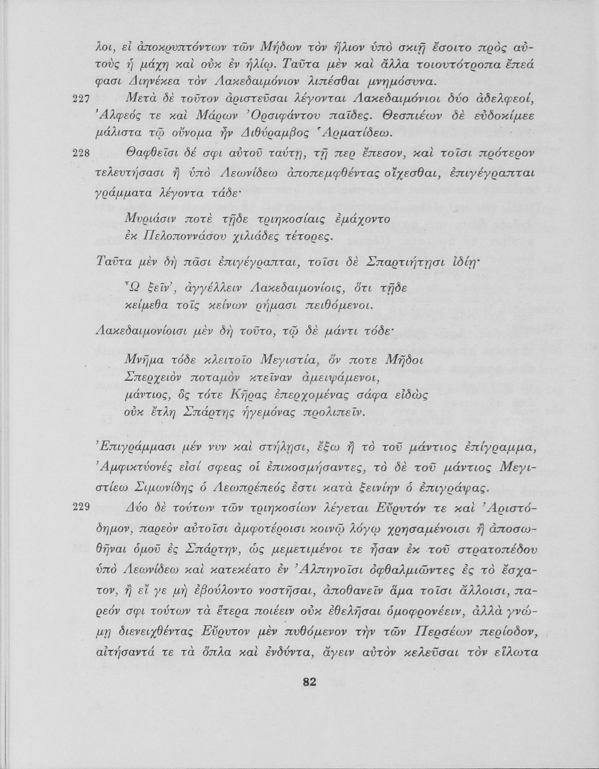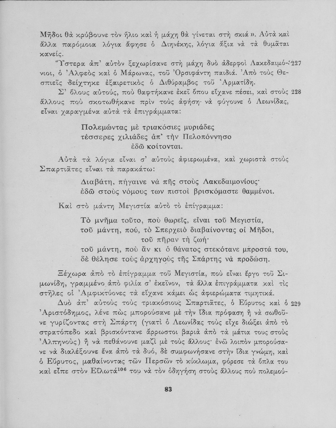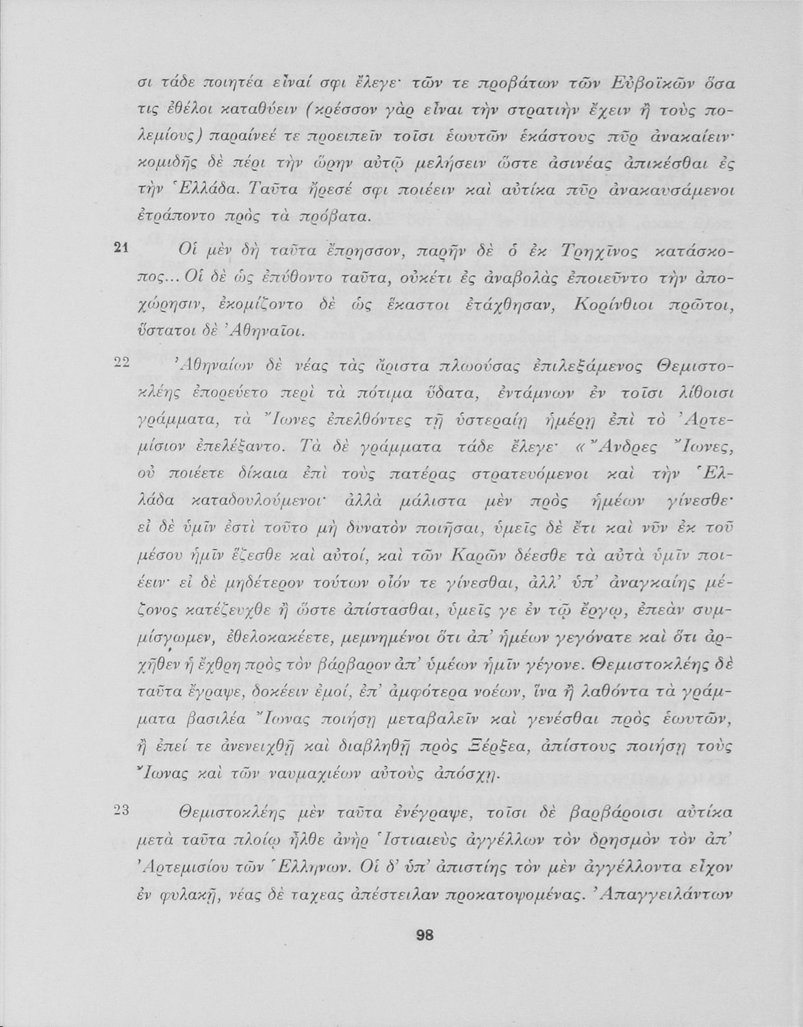 Σχολικό εγχειρίδιο Αρχαίων Ελληνικών Γυμνασίου που περιέχει αποσπάσματα από το έργο του Ηρόδοτου Περσικοί Πόλεμοι, μετάφραση, εισαγωγή στη ζωή και το έργο του, και ερμηνευτικά σχόλια. Περιλαμβάνει παράρτημα με χάρτες και σχεδιαγράμματα.