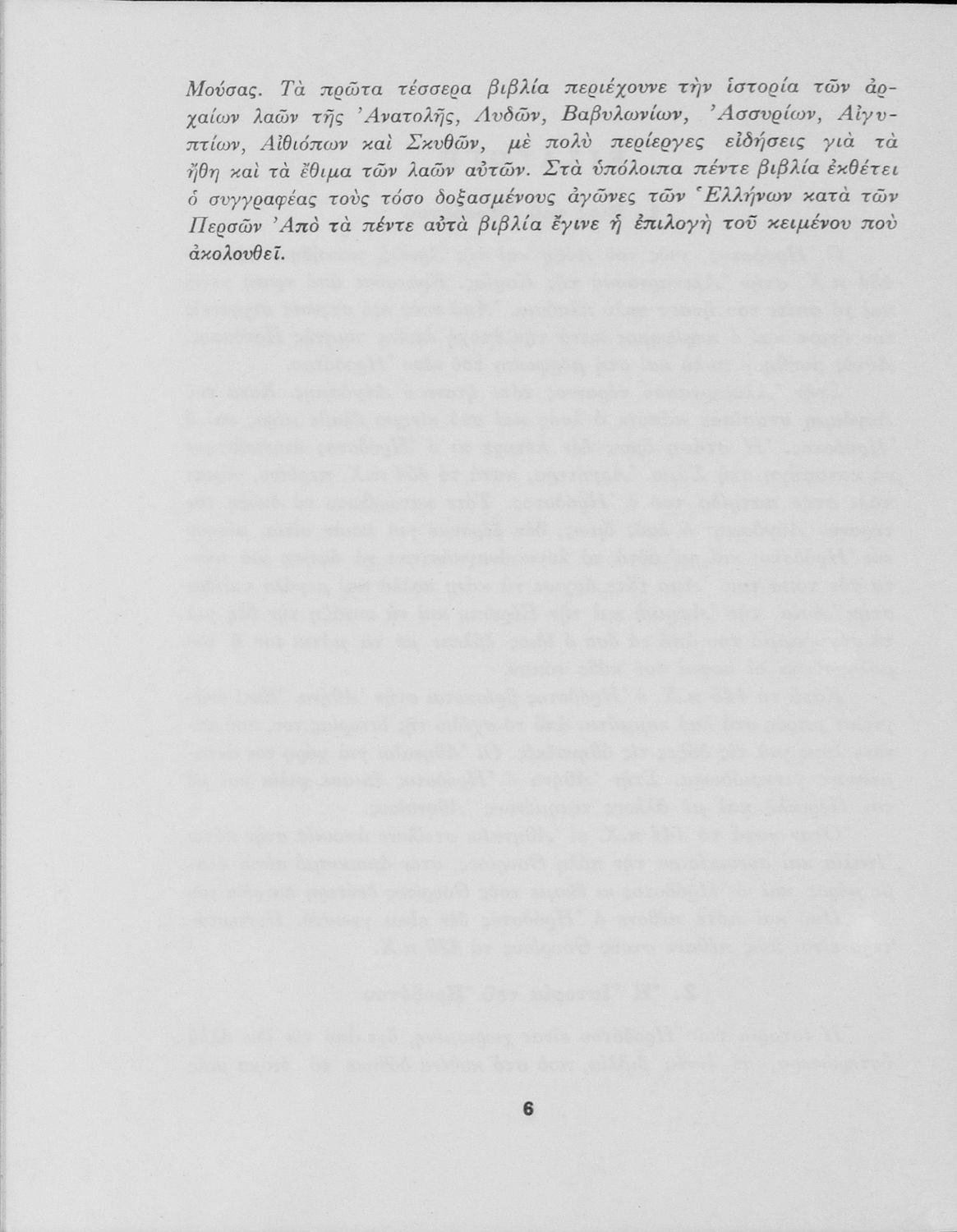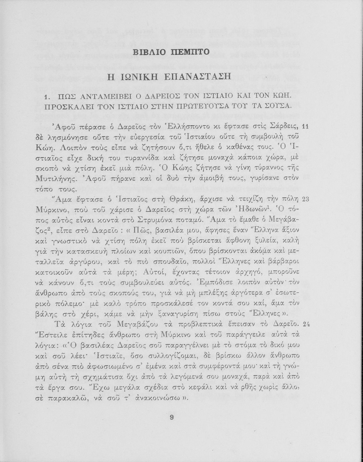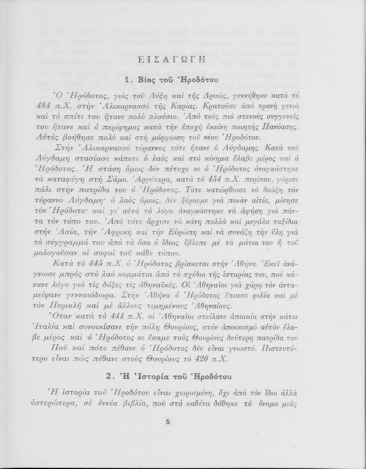 Σχολικό εγχειρίδιο Αρχαίων Ελληνικών Γυμνασίου που περιέχει αποσπάσματα από το έργο του Ηρόδοτου Περσικοί Πόλεμοι, μετάφραση, εισαγωγή στη ζωή και το έργο του, και ερμηνευτικά σχόλια. Περιλαμβάνει παράρτημα με χάρτες και σχεδιαγράμματα.