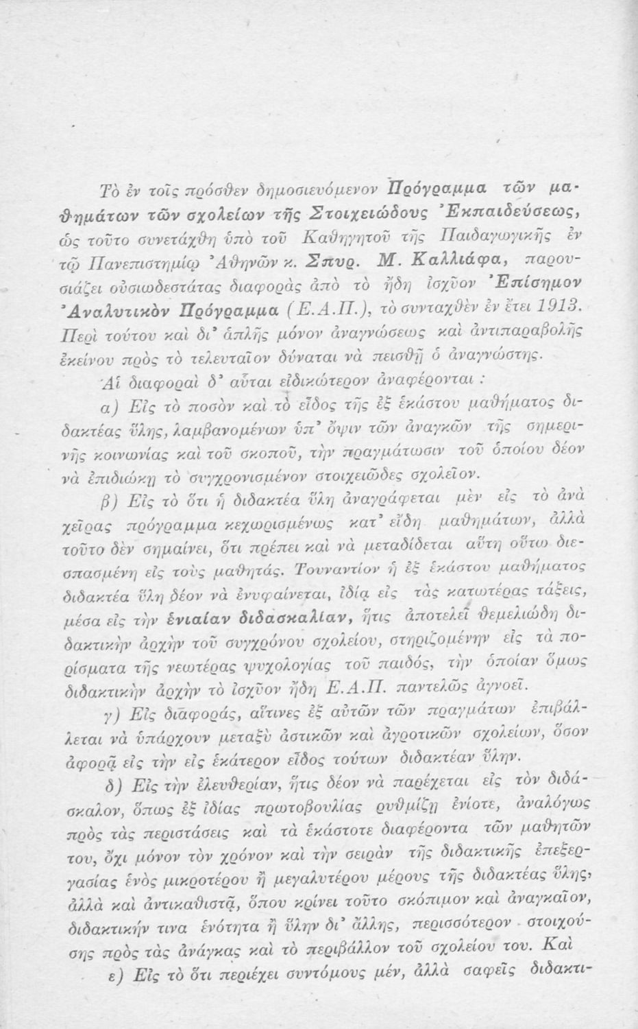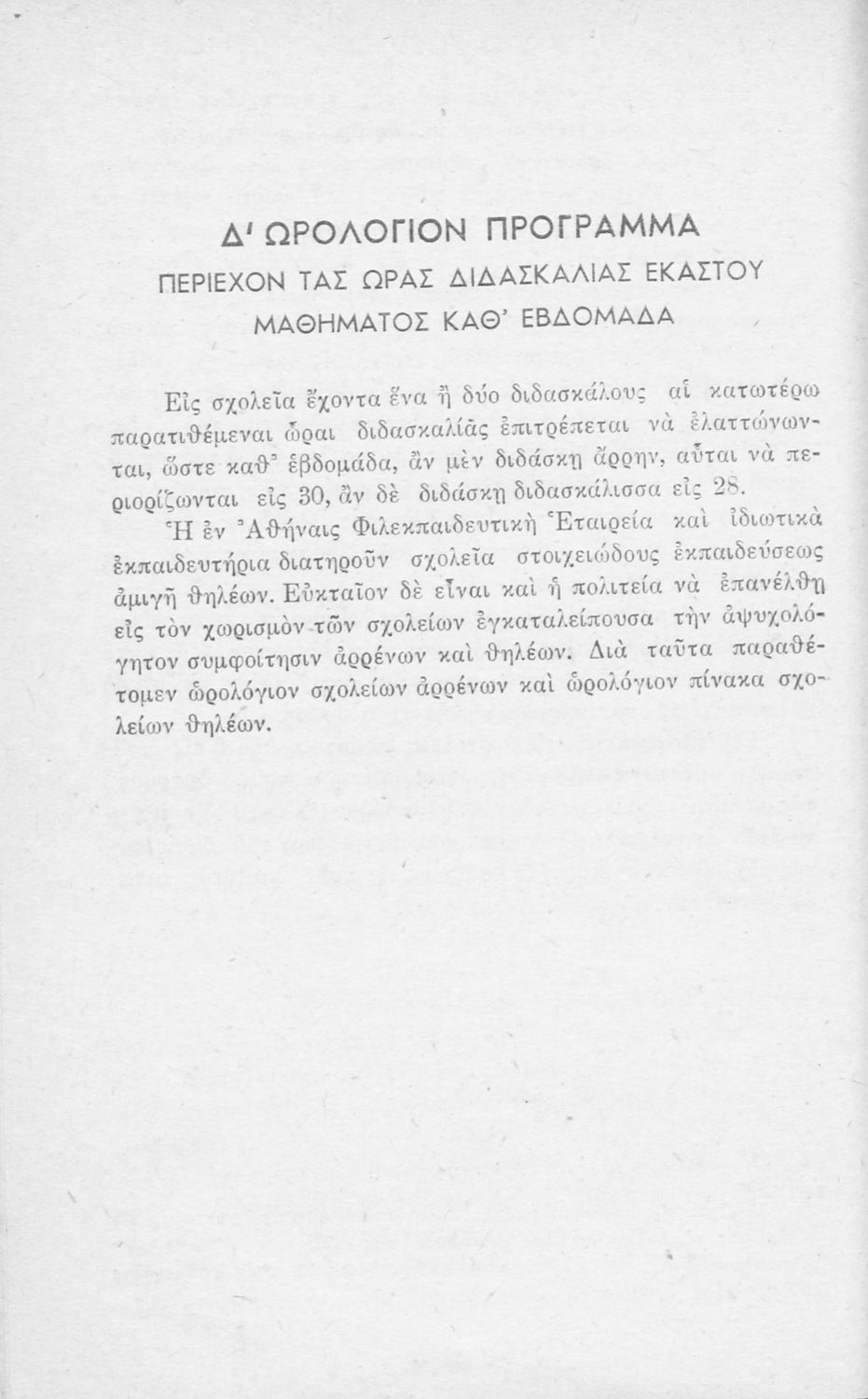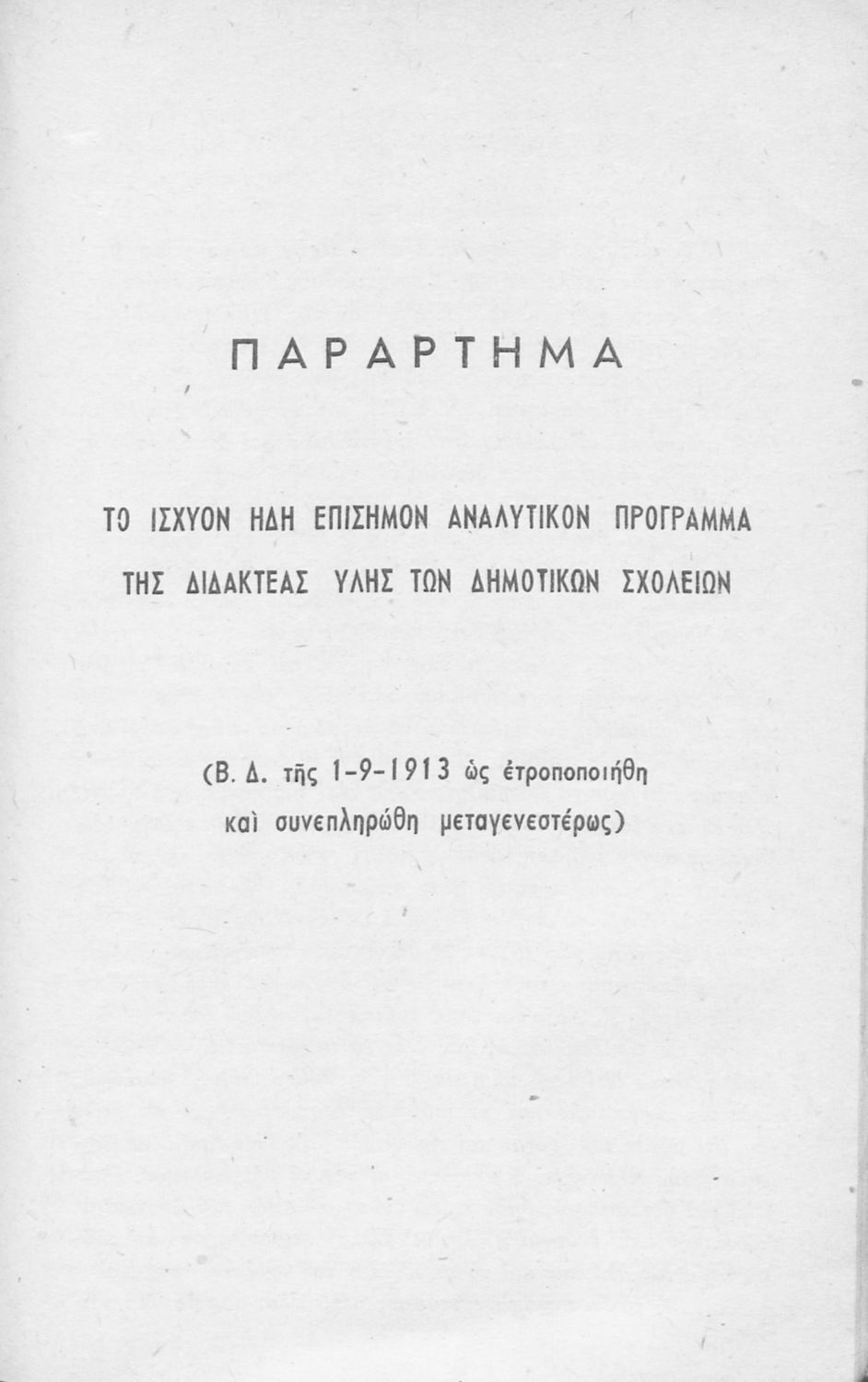 Τίτλος: Πρόγραμμα των μαθημάτων των σχολείων της Στοιχειώδους Εκπαιδεύσεως