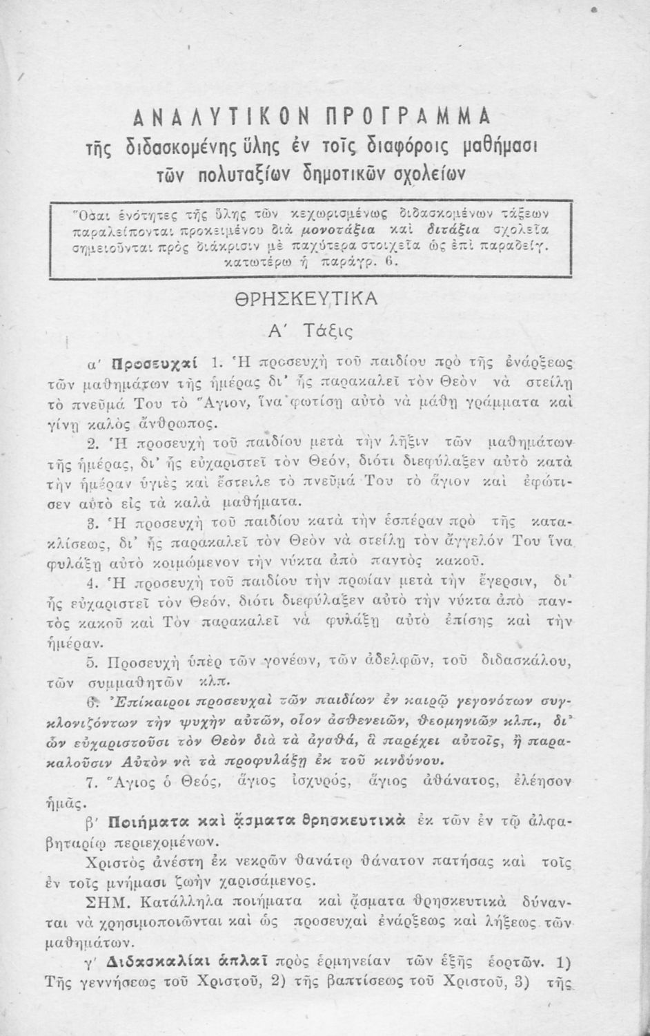Αναλυτικό πρόγραμμα που εκδόθηκε με εντολή του Υπουργείου των Εκκλησιαστικών και της Δημόσιας Εκπαιδεύσεως από το τμήμα Δ΄, Μέσης Εκπαίδευσης, Γυμναστικής και Σκοποβολής. Στο εξώφυλλο υπάρχει το βασιλικό σήμα.