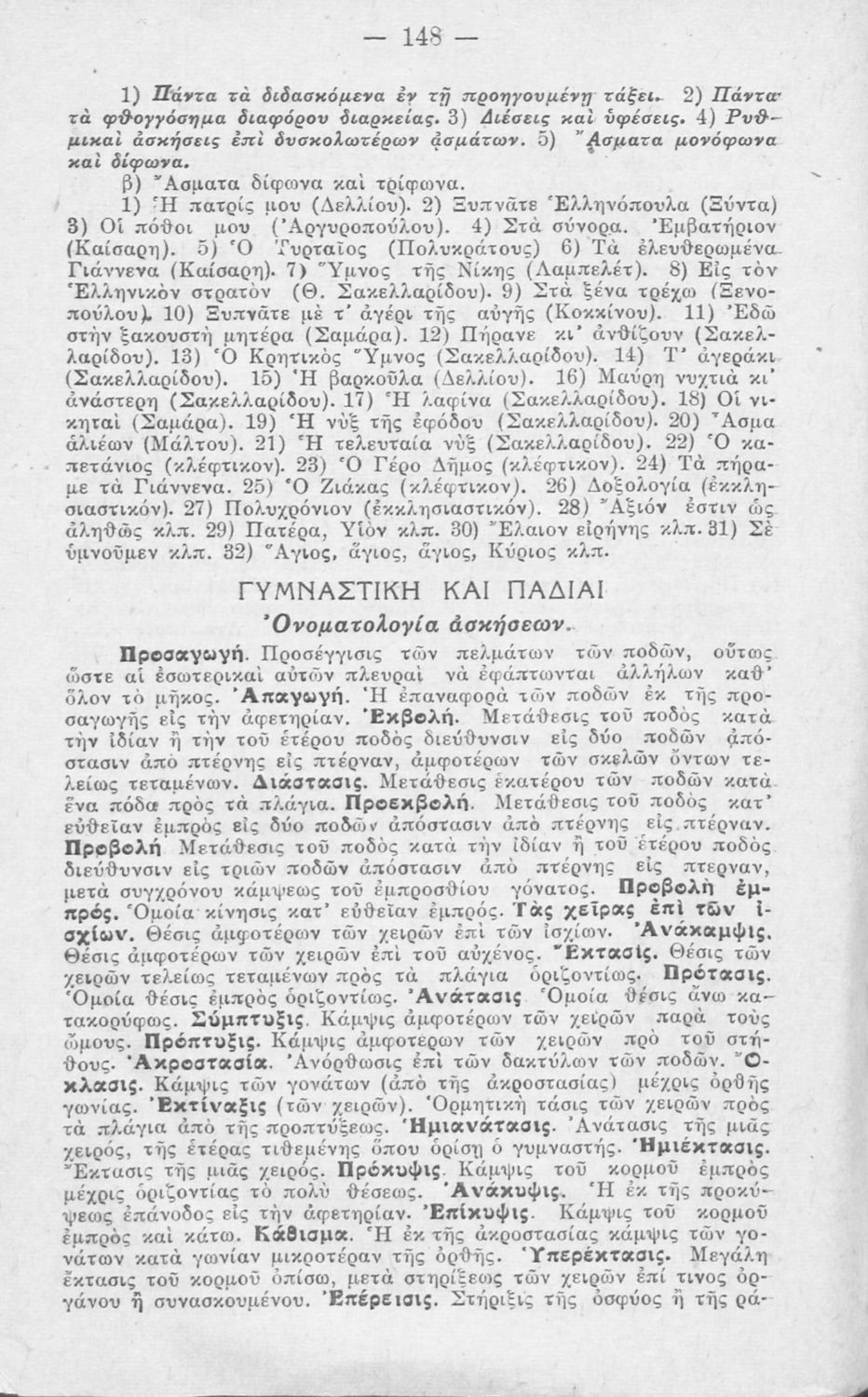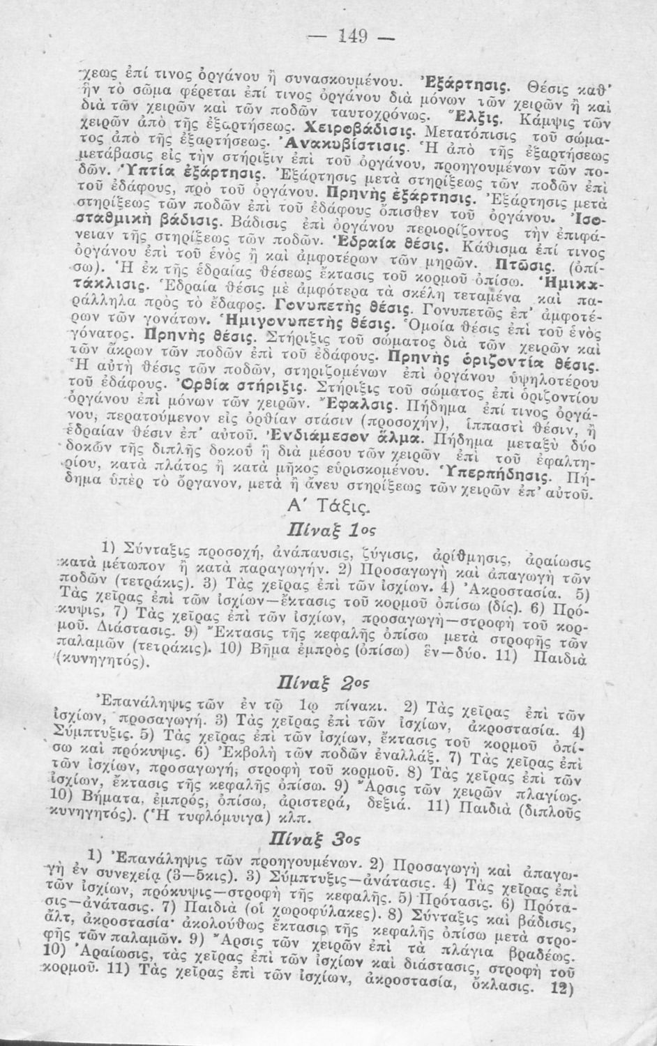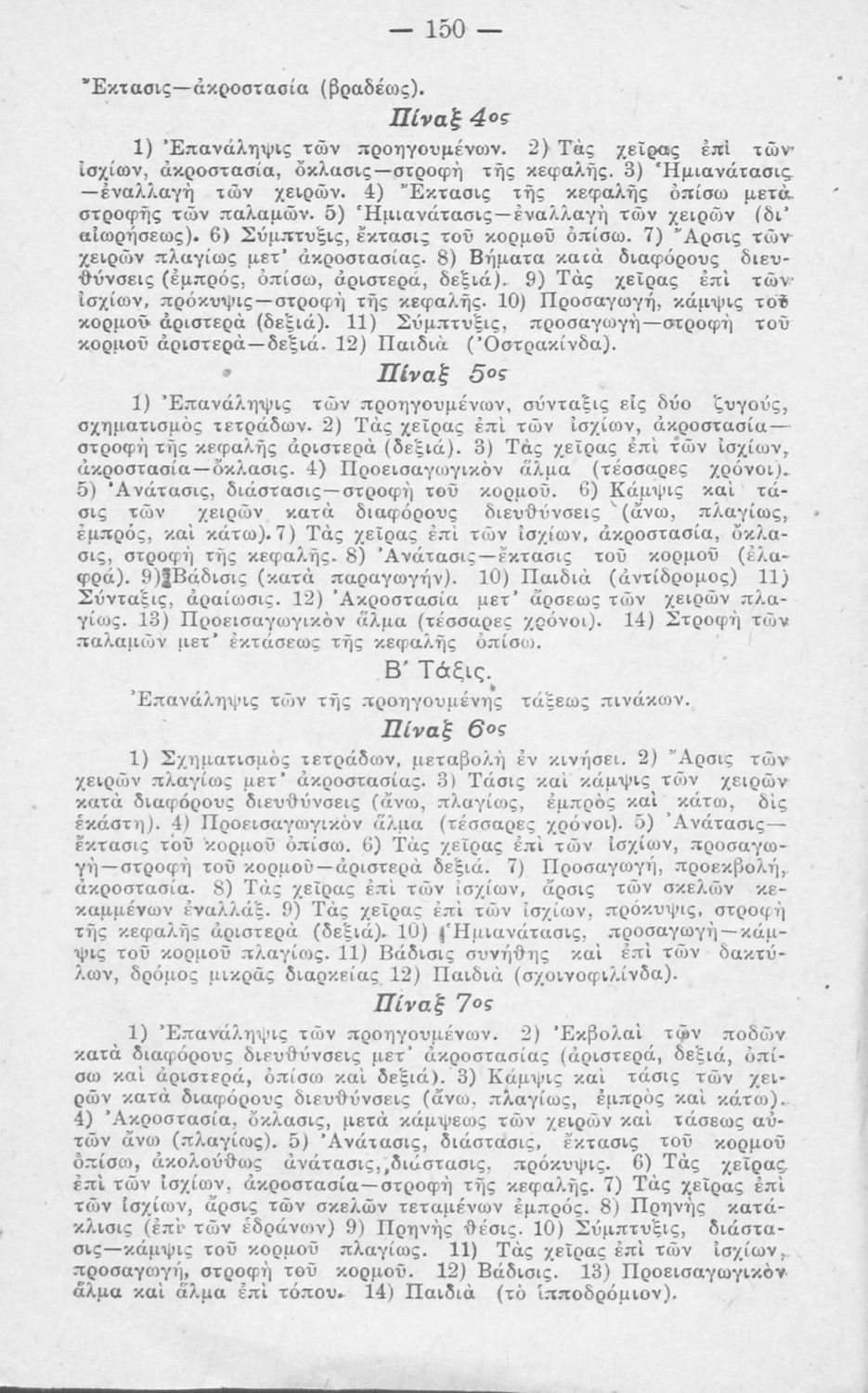 Αναλυτικό πρόγραμμα που εκδόθηκε με εντολή του Υπουργείου των Εκκλησιαστικών και της Δημόσιας Εκπαιδεύσεως από το τμήμα Δ΄, Μέσης Εκπαίδευσης, Γυμναστικής και Σκοποβολής. Στο εξώφυλλο υπάρχει το βασιλικό σήμα.