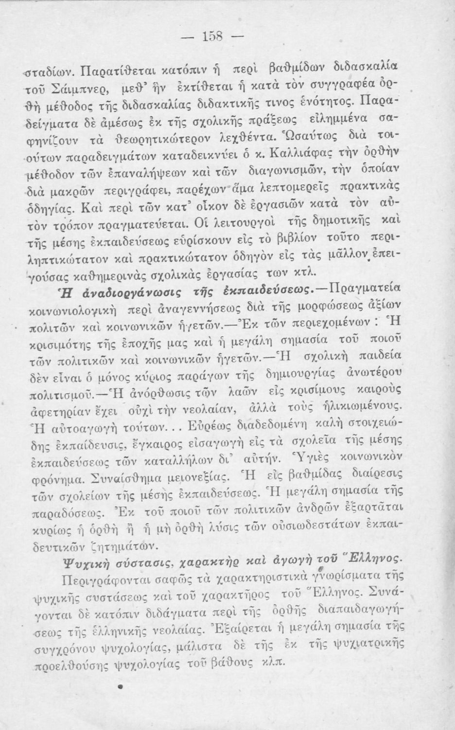 Παρουσίαση περιεχομένου: Παιδαγωγικό βοήθημα που παρέχει θεωρητικές κατευθύνσεις και πρακτικές συμβουλές για τη διδασκαλία των μαθημάτων της Πρωτοβάθμιας Εκπαίδευσης ανά τάξη και μάθημα. Περιλαμβάνει και το αναλυτικό πρόγραμμα. Ο συγγραφέας ήταν καθηγητής Παιδαγωγικής στο Πανεπιστήμιο Αθηνών.