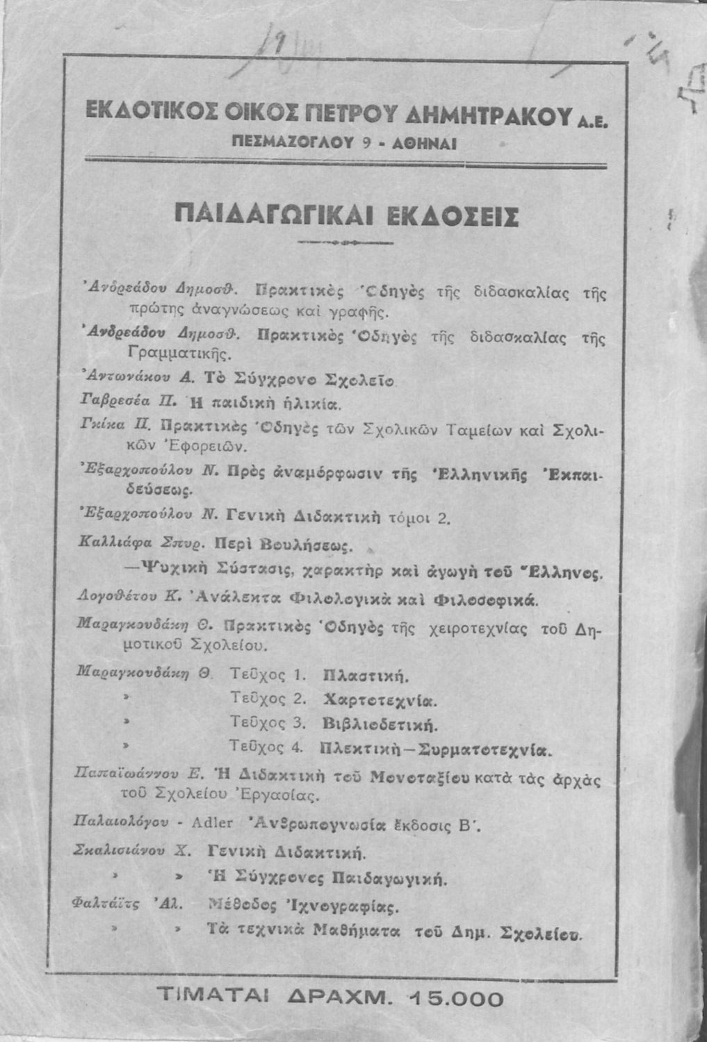 Εκδότης: Πέτρος Δημητράκος Έτος έκδοσης: 1949 Τόπος έκδοσης: Αθήνα |
