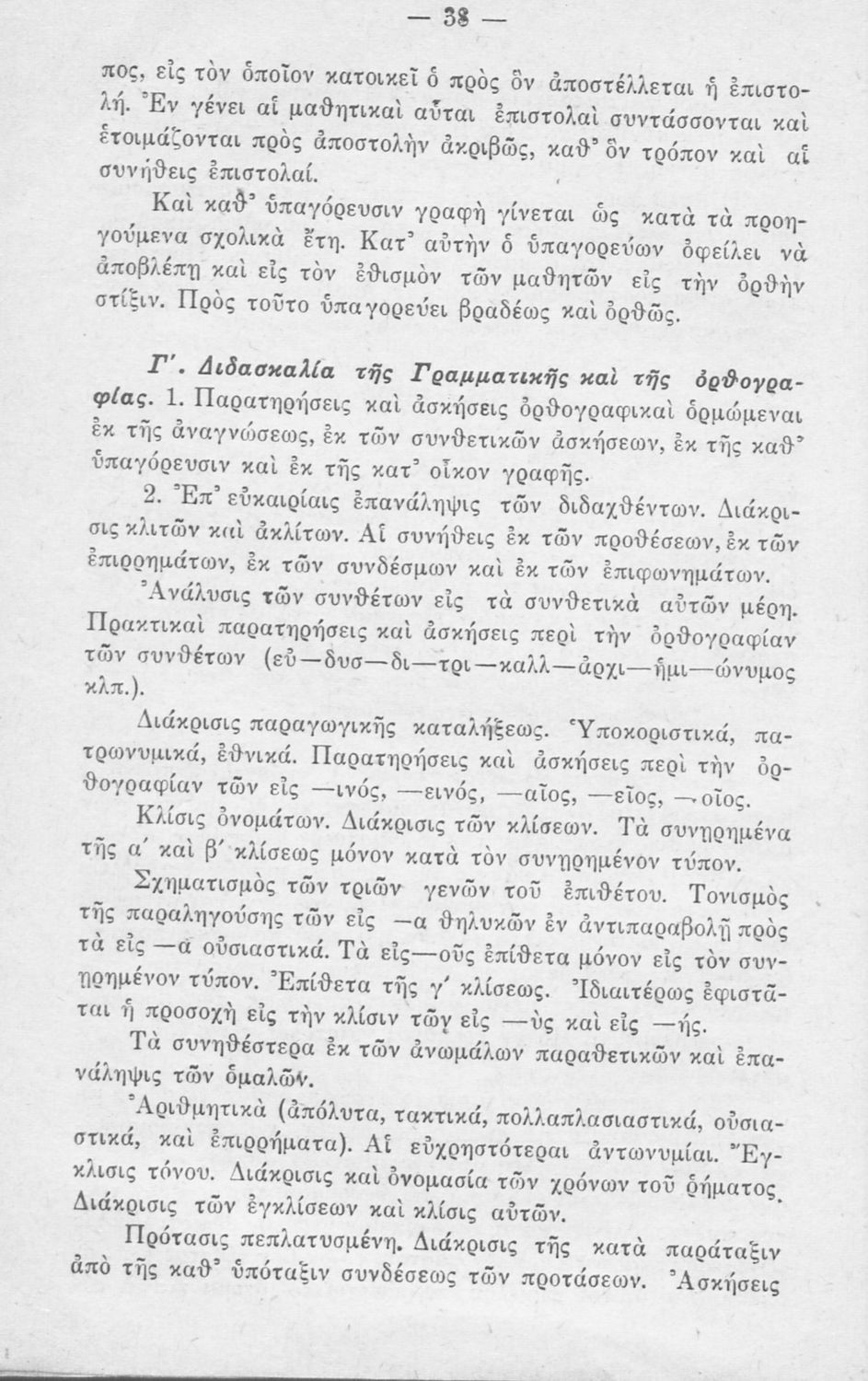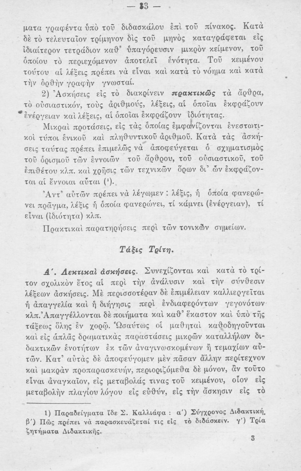 Βαθμίδα εκπαίδευσης: Πρωτοβάθμια Γλώσσα: Καθαρεύουσα Παρουσίαση περιεχομένου: Παιδαγωγικό βοήθημα που παρέχει θεωρητικές κατευθύνσεις και πρακτικές συμβουλές για τη διδασκαλία των μαθημάτων της Πρωτοβάθμιας Εκπαίδευσης ανά τάξη και μάθημα. Περιλαμβάνει και το αναλυτικό πρόγραμμα. Ο συγγραφέας ήταν καθηγητής Παιδαγωγικής στο Πανεπιστήμιο Αθηνών. |