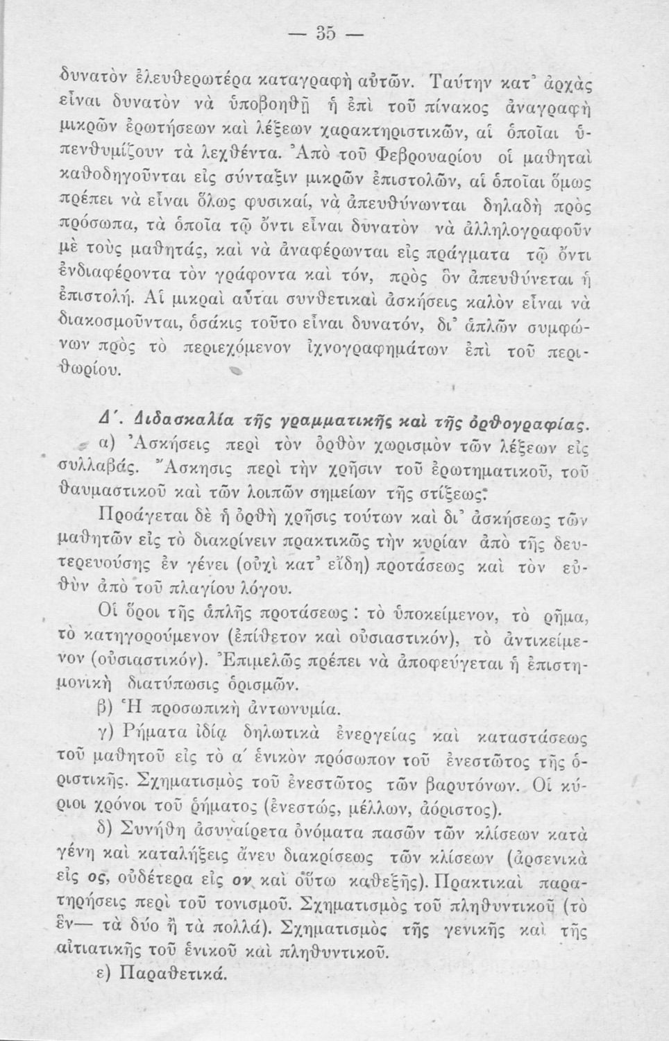 Παιδαγωγικό βοήθημα που παρέχει θεωρητικές κατευθύνσεις και πρακτικές συμβουλές για τη διδασκαλία των μαθημάτων της Πρωτοβάθμιας Εκπαίδευσης ανά τάξη και μάθημα. Περιλαμβάνει και το αναλυτικό πρόγραμμα. Ο συγγραφέας ήταν καθηγητής Παιδαγωγικής στο Πανεπιστήμιο Αθηνών.