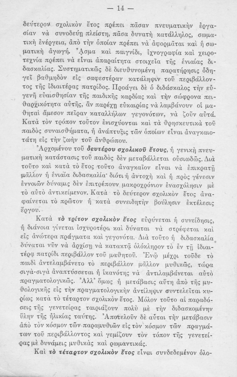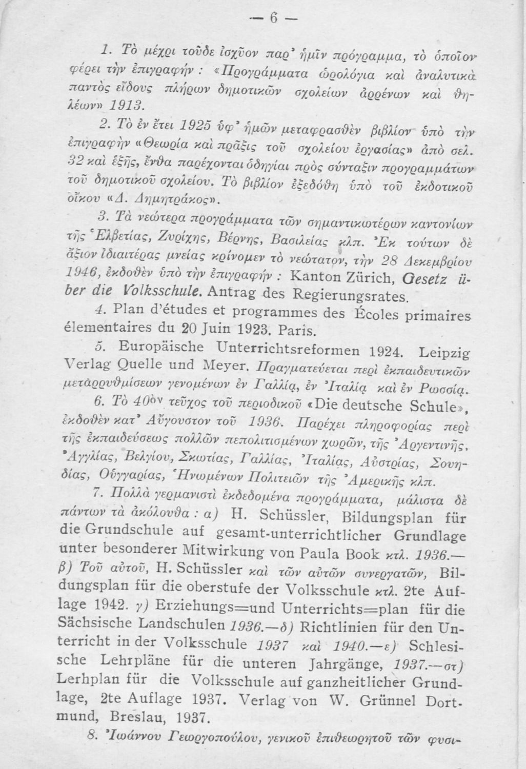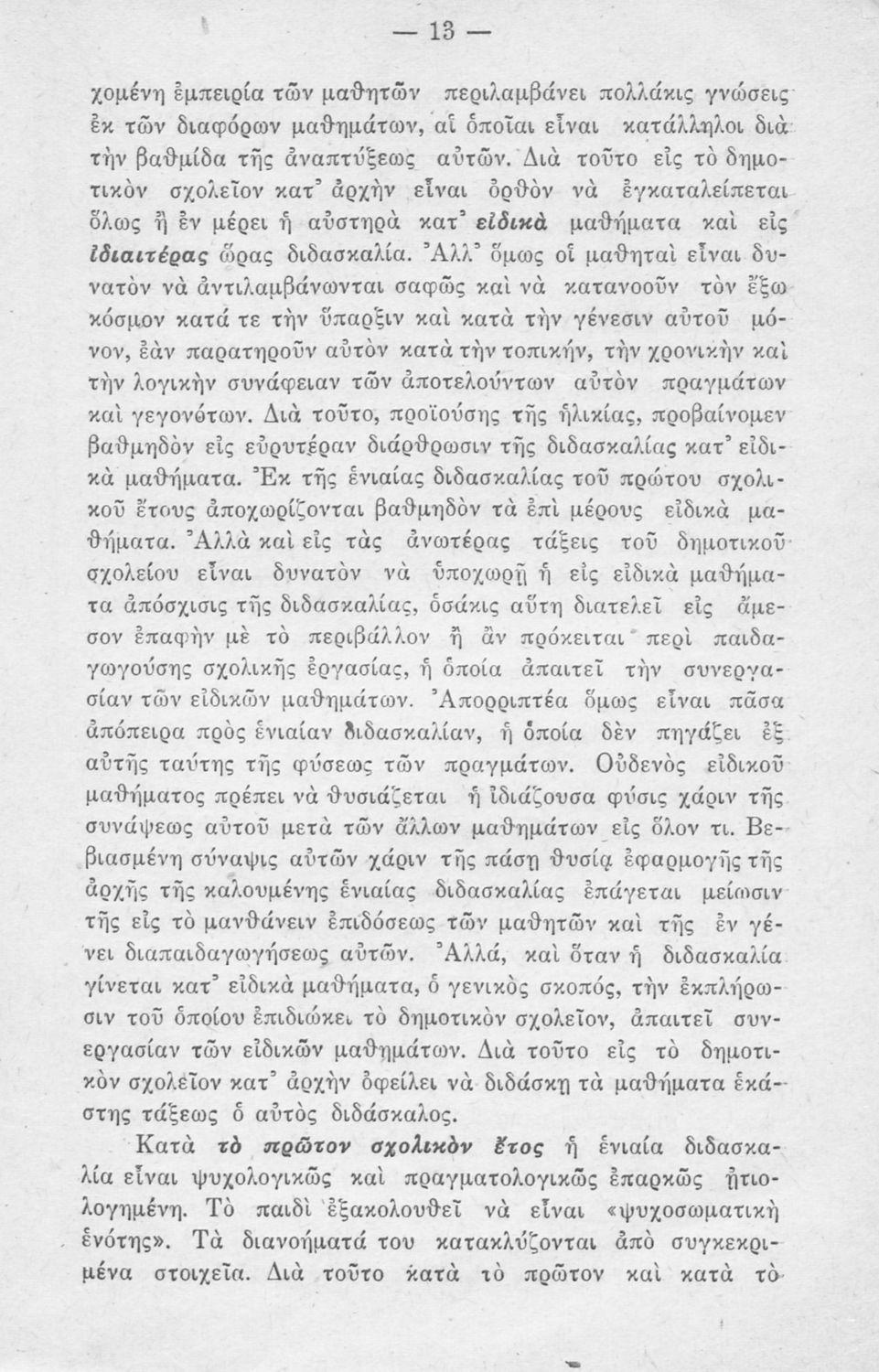 Παιδαγωγικό βοήθημα που παρέχει θεωρητικές κατευθύνσεις και πρακτικές συμβουλές για τη διδασκαλία των μαθημάτων της Πρωτοβάθμιας Εκπαίδευσης ανά τάξη και μάθημα. Περιλαμβάνει και το αναλυτικό πρόγραμμα. Ο συγγραφέας ήταν καθηγητής Παιδαγωγικής στο Πανεπιστήμιο Αθηνών.