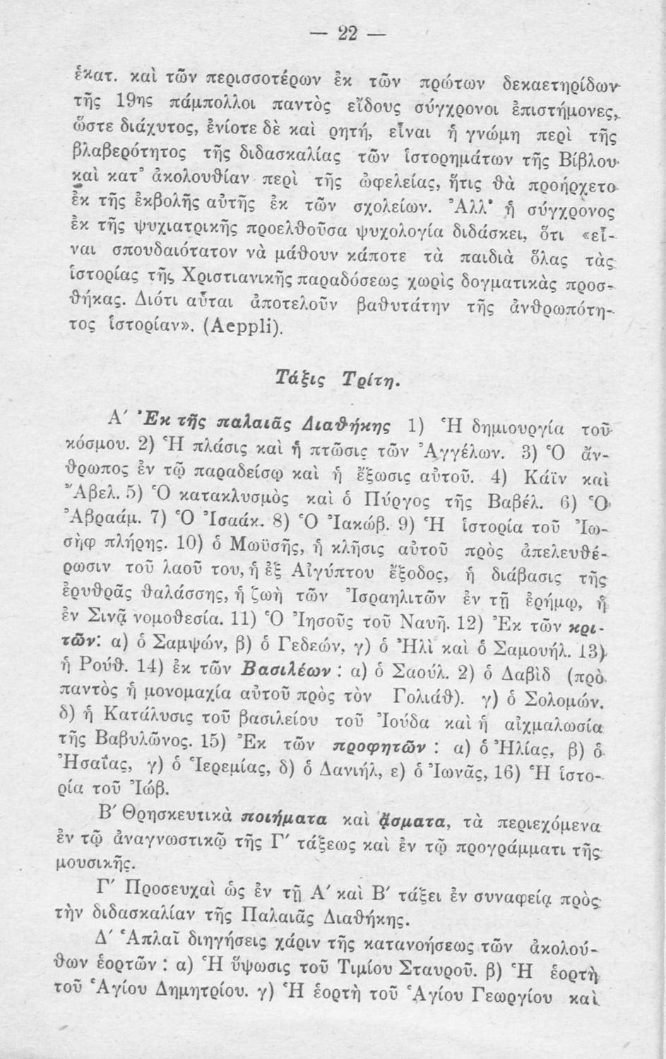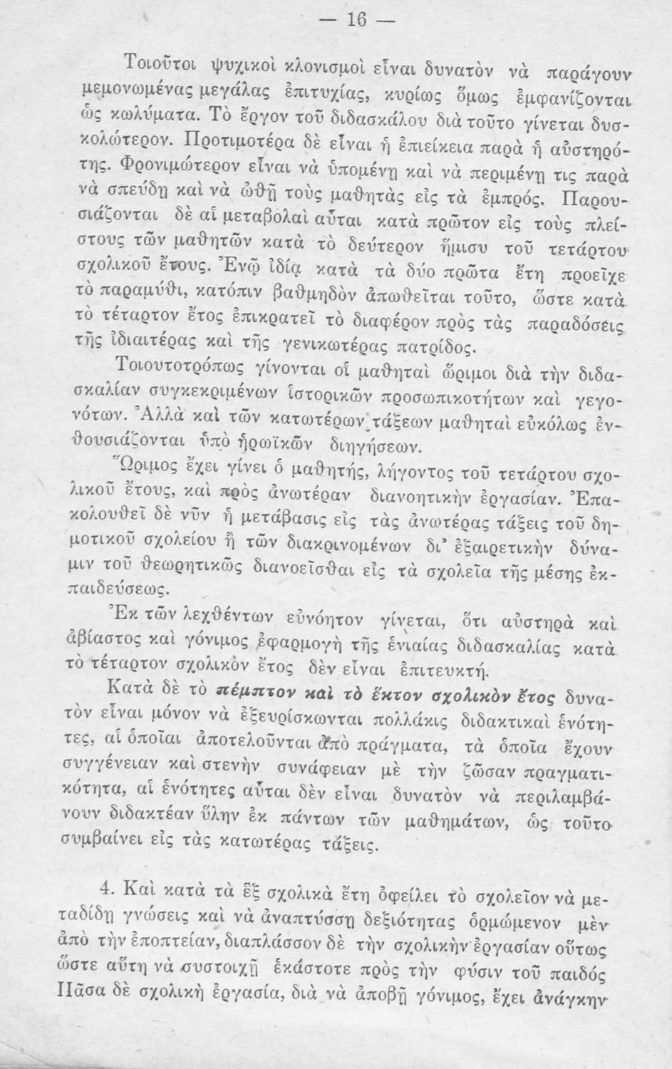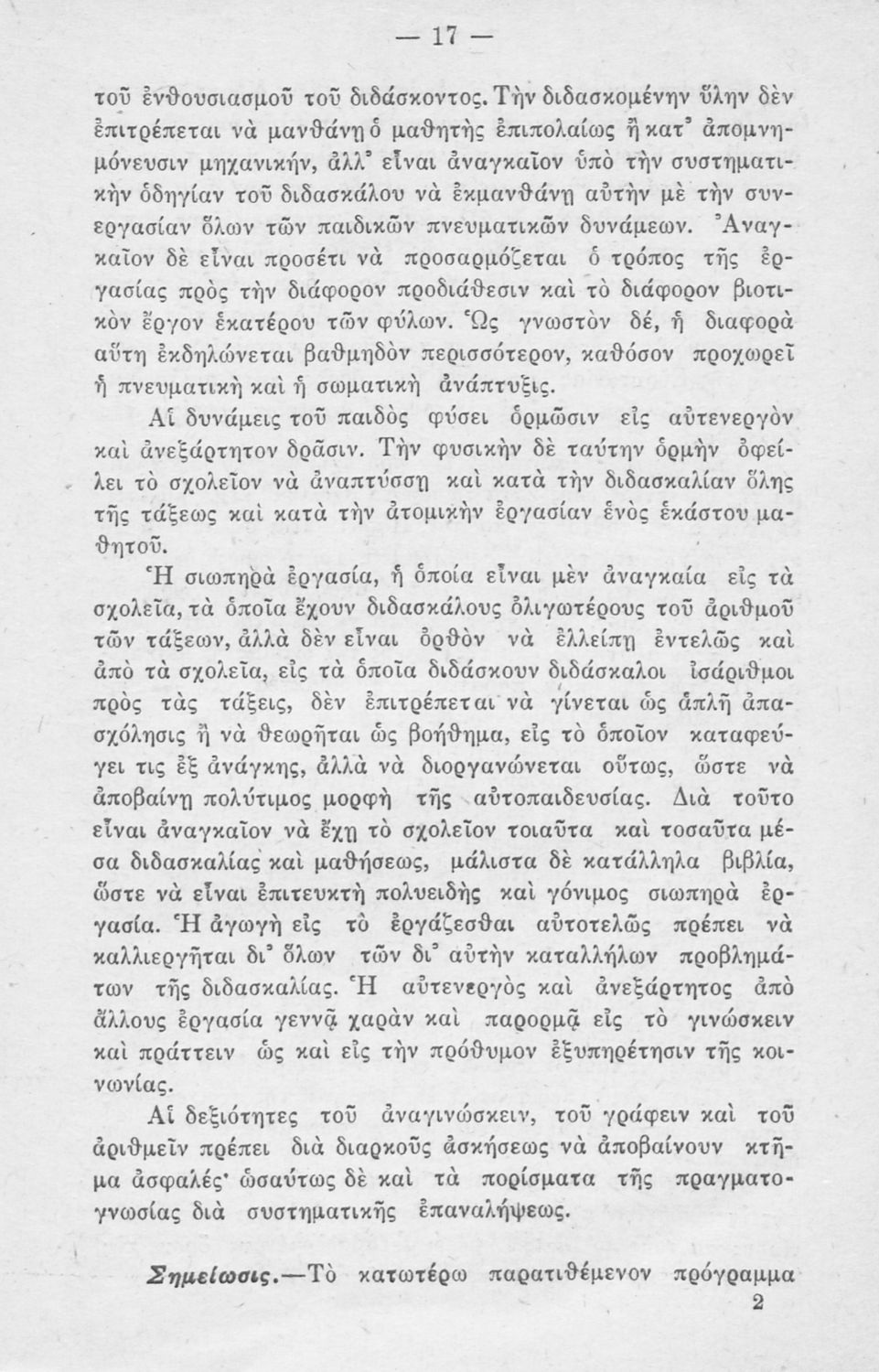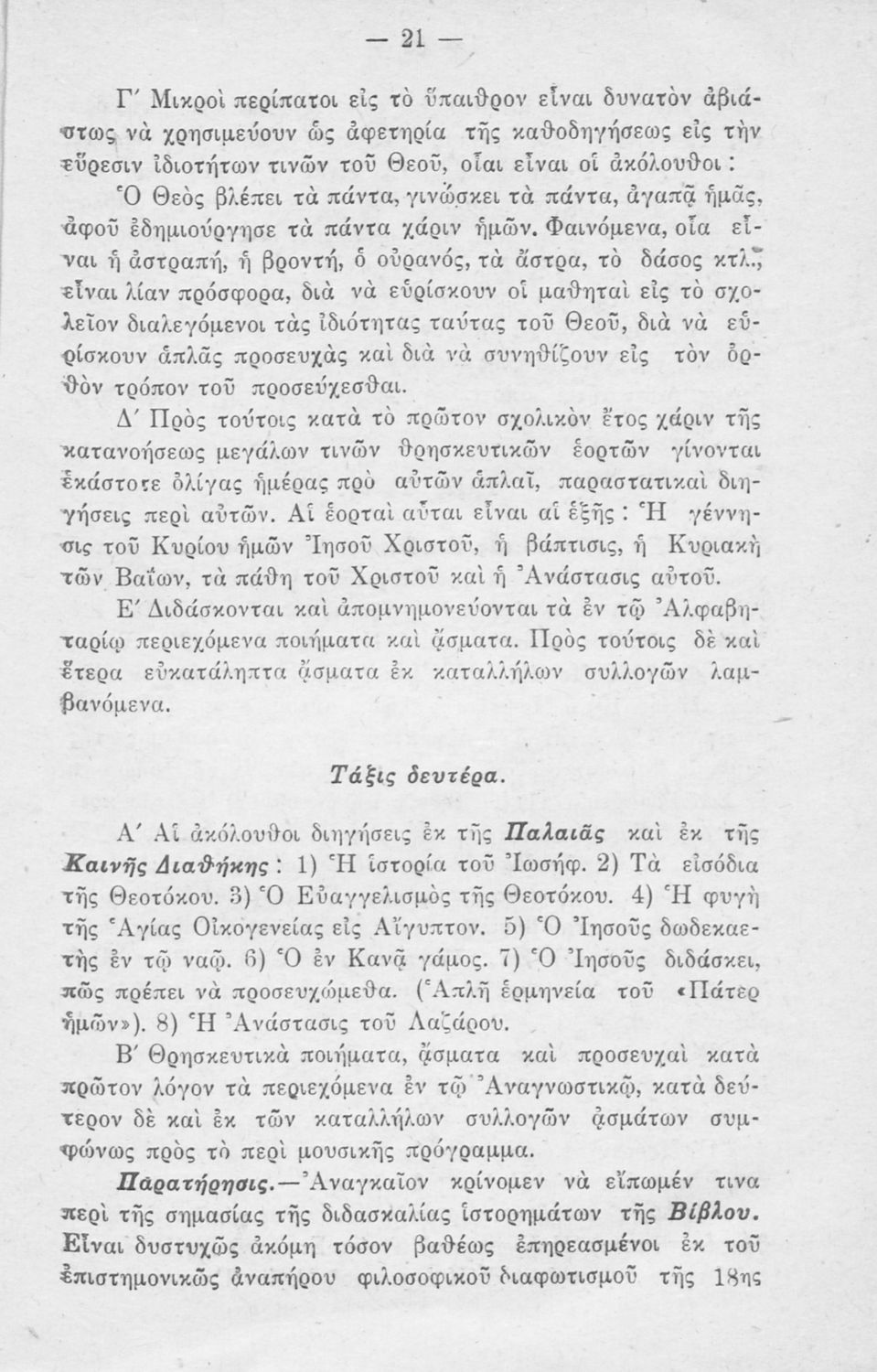 Βαθμίδα εκπαίδευσης: Πρωτοβάθμια Γλώσσα: Καθαρεύουσα Παρουσίαση περιεχομένου: Παιδαγωγικό βοήθημα που παρέχει θεωρητικές κατευθύνσεις και πρακτικές συμβουλές για τη διδασκαλία των μαθημάτων της Πρωτοβάθμιας Εκπαίδευσης ανά τάξη και μάθημα. Περιλαμβάνει και το αναλυτικό πρόγραμμα. Ο συγγραφέας ήταν καθηγητής Παιδαγωγικής στο Πανεπιστήμιο Αθηνών. |