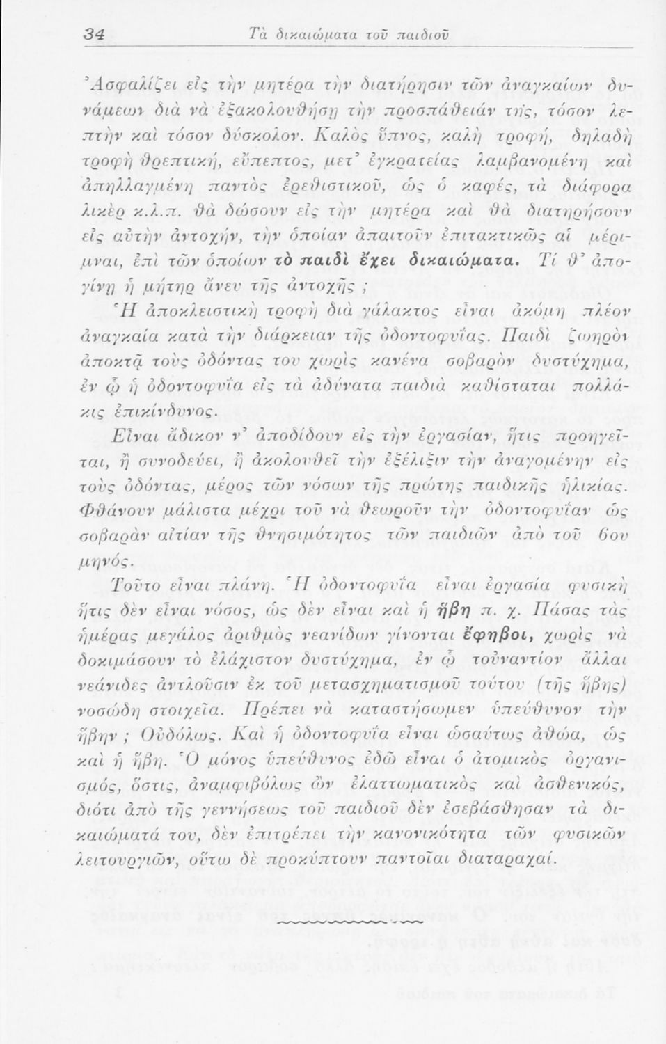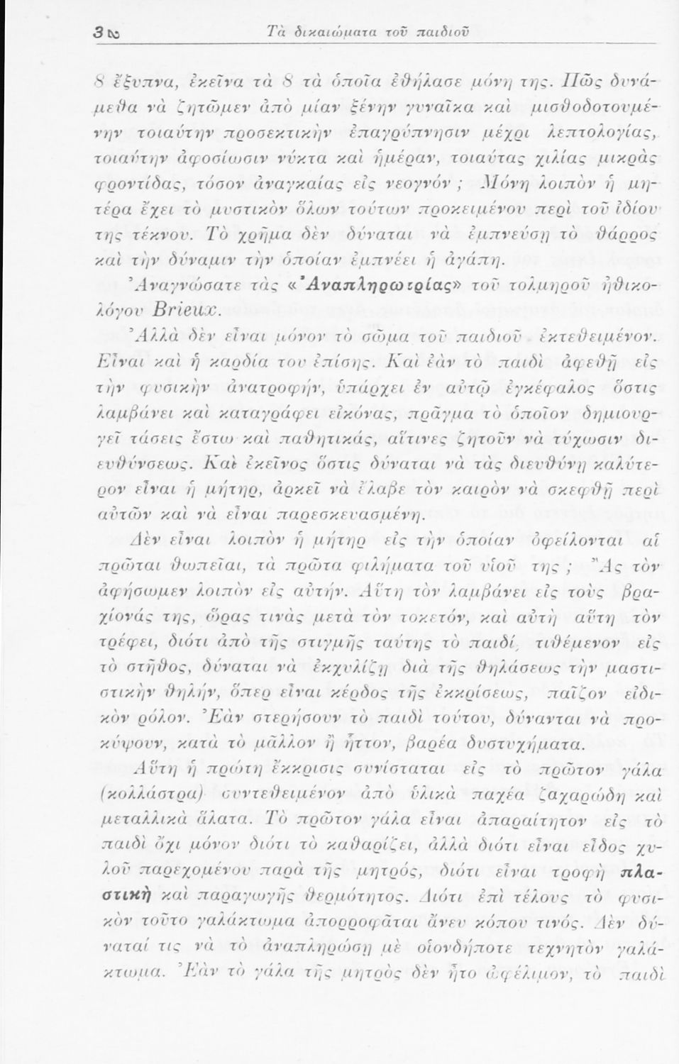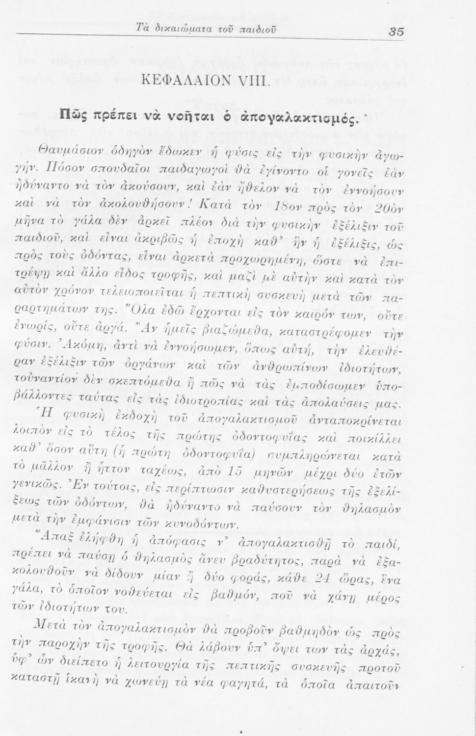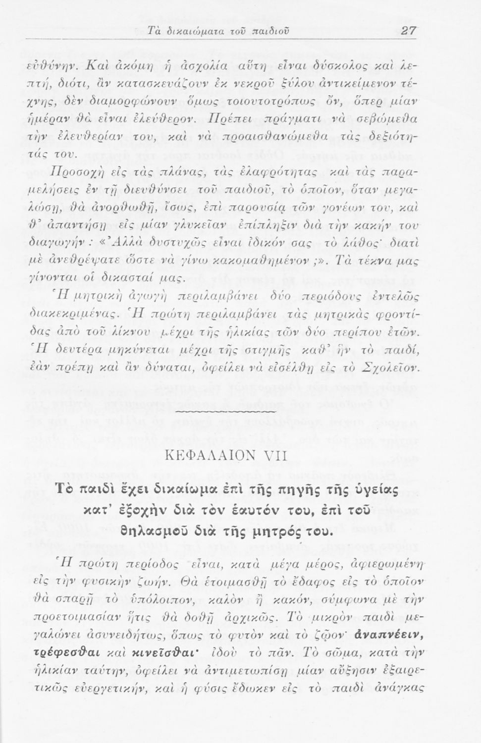 520 ## _aΔοκίμιο που περιλαμβάνει διεξοδικά τα δικαιώματα του παιδιού στην καθαριότητα και υγιεινή, στον απογαλακτισμό, στον σεβασμό, στην ένδυση, στην διατροφή κ.α. Ο μεταφραστής ήταν Επιθεωρητής Δημοτικών Σχολείων.