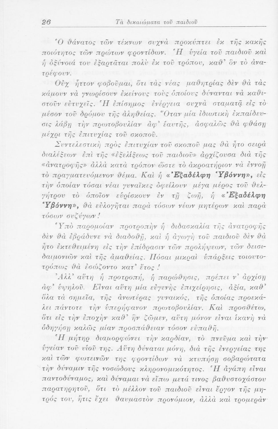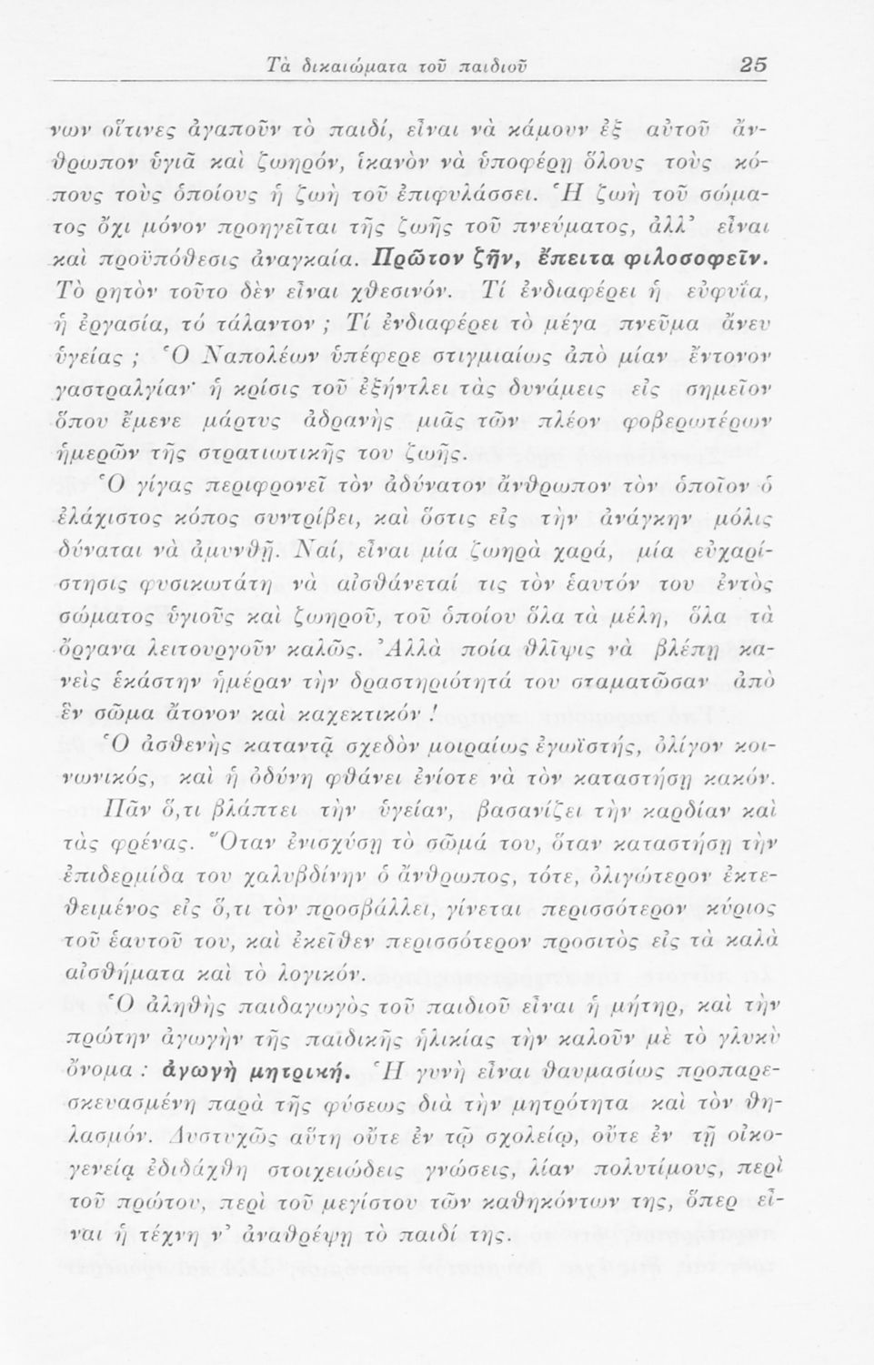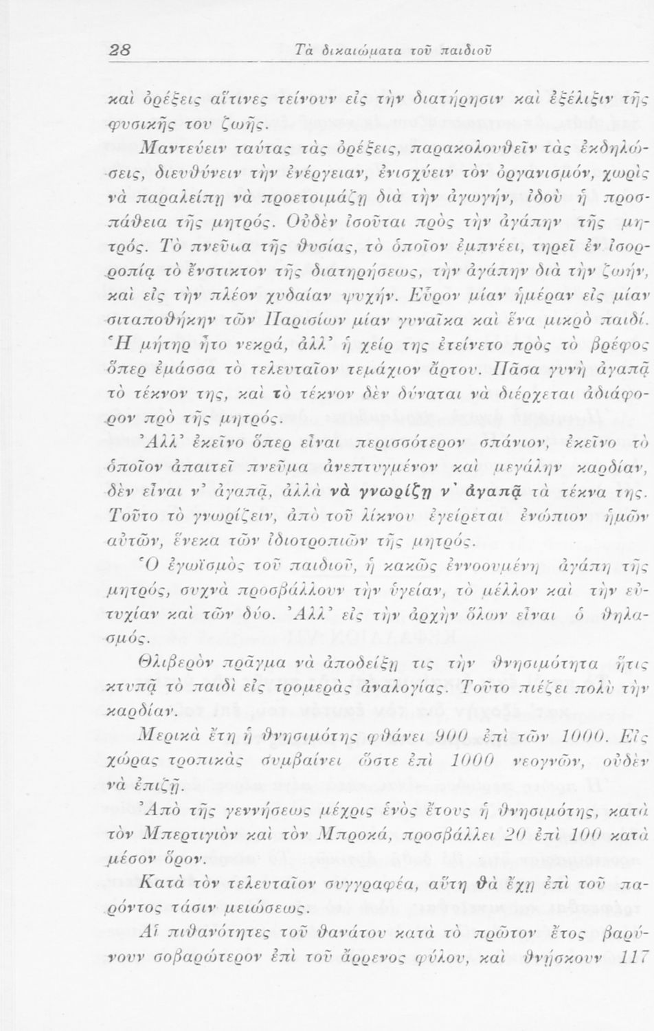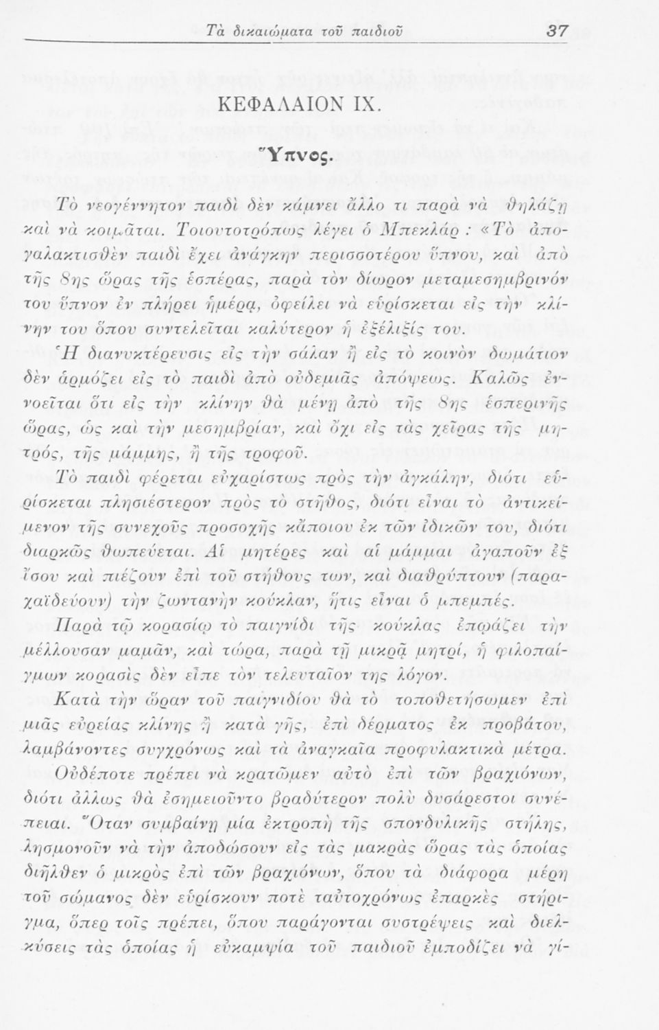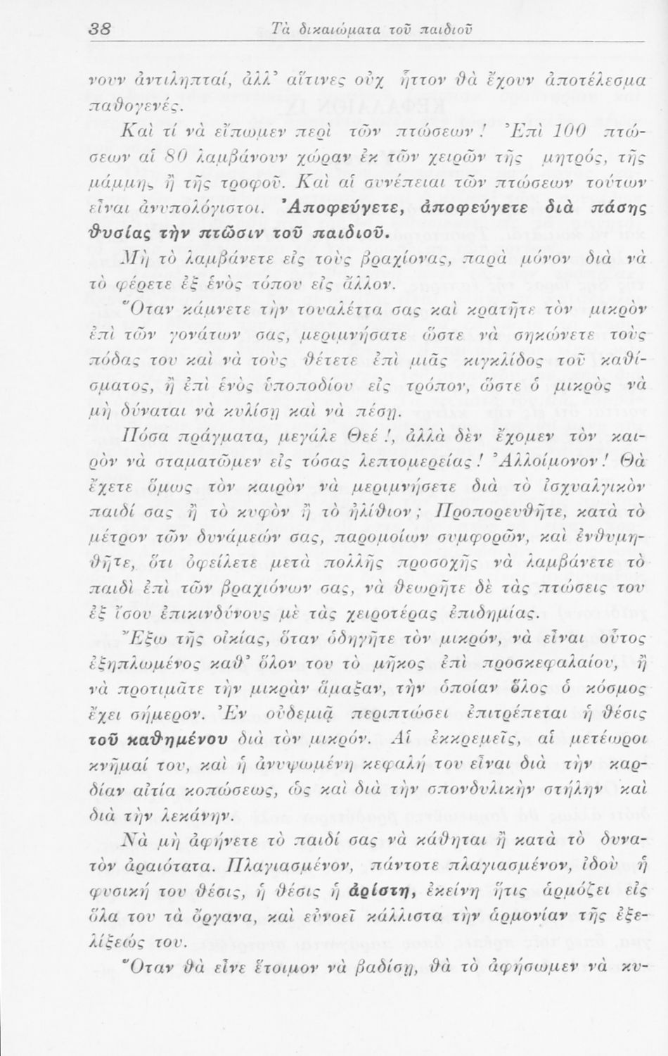 520 ## _aΔοκίμιο που περιλαμβάνει διεξοδικά τα δικαιώματα του παιδιού στην καθαριότητα και υγιεινή, στον απογαλακτισμό, στον σεβασμό, στην ένδυση, στην διατροφή κ.α. Ο μεταφραστής ήταν Επιθεωρητής Δημοτικών Σχολείων.