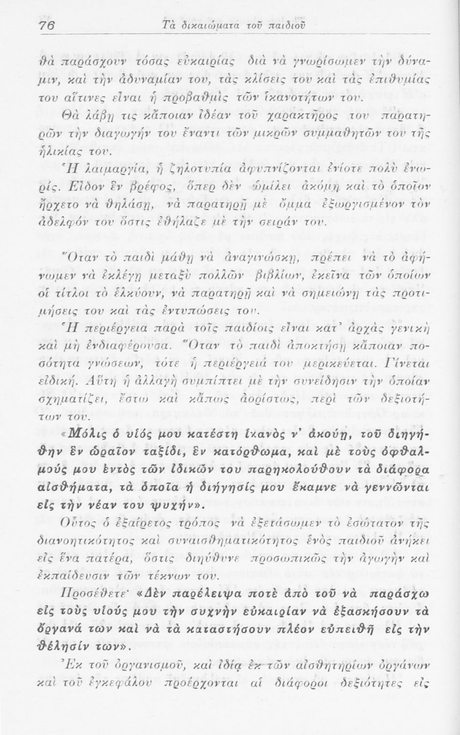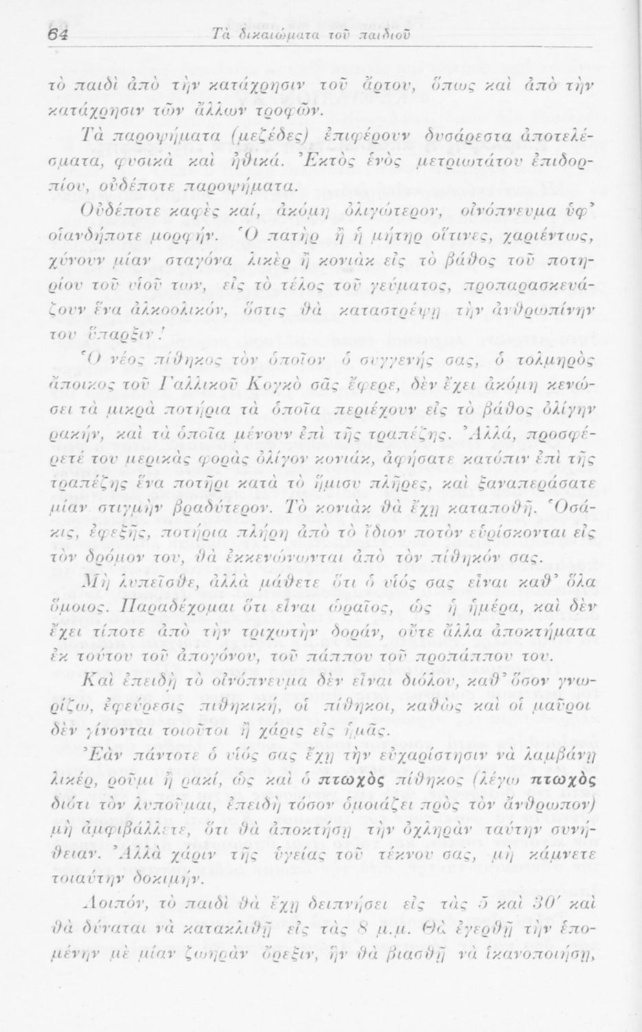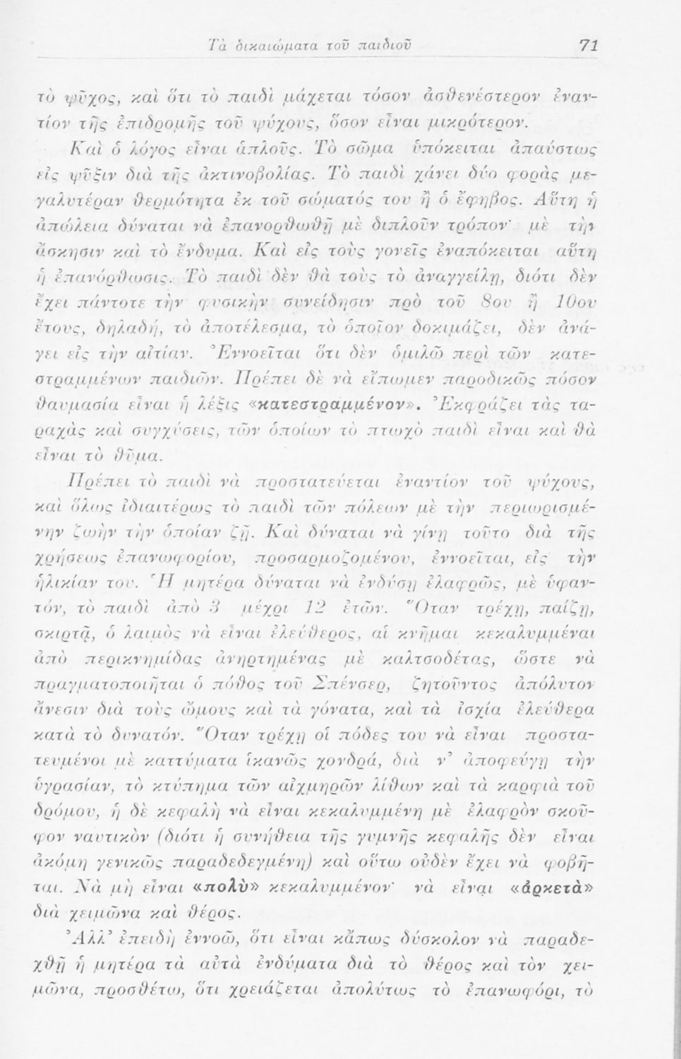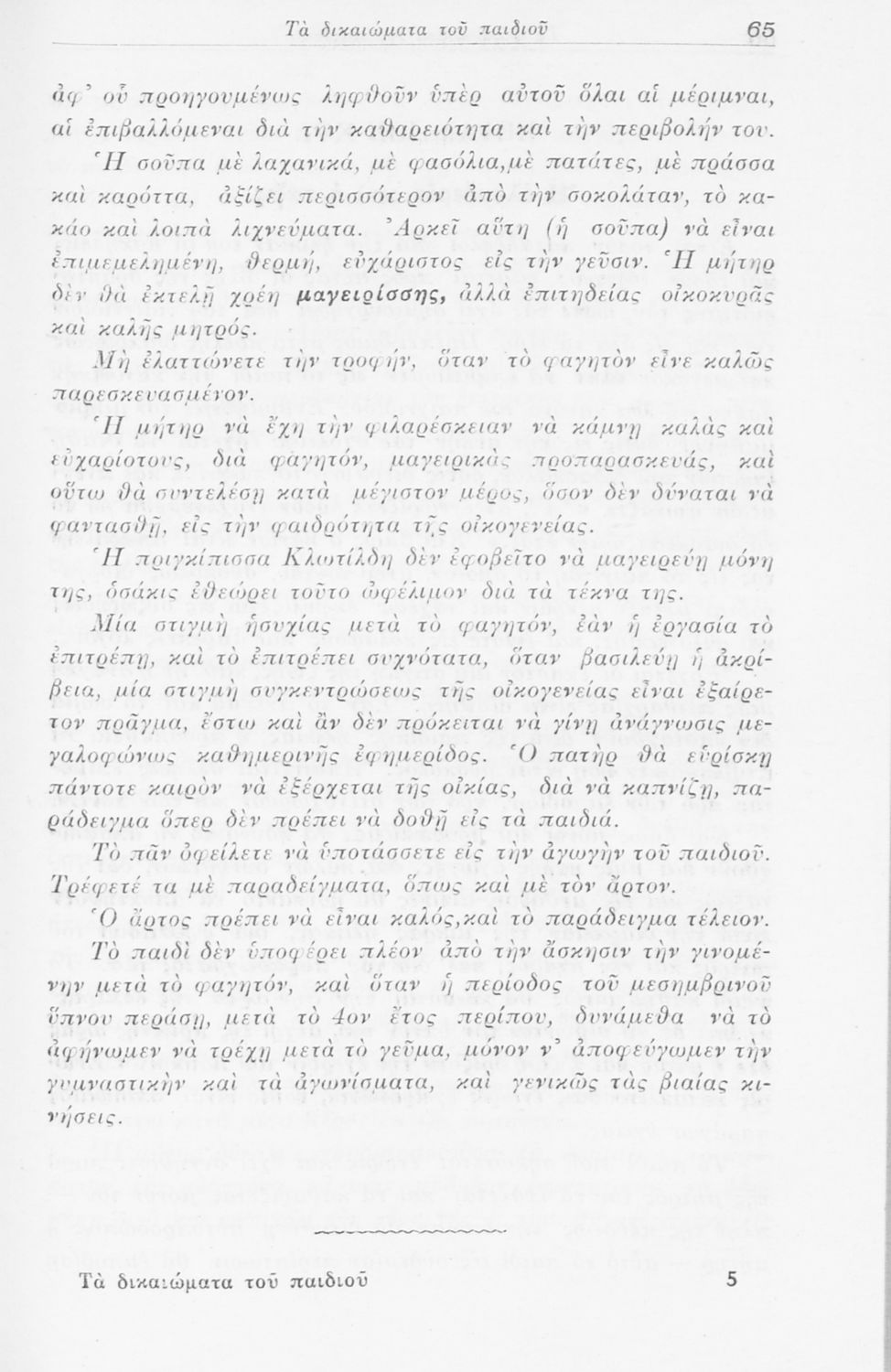 520 ## _aΔοκίμιο που περιλαμβάνει διεξοδικά τα δικαιώματα του παιδιού στην καθαριότητα και υγιεινή, στον απογαλακτισμό, στον σεβασμό, στην ένδυση, στην διατροφή κ.α. Ο μεταφραστής ήταν Επιθεωρητής Δημοτικών Σχολείων.
