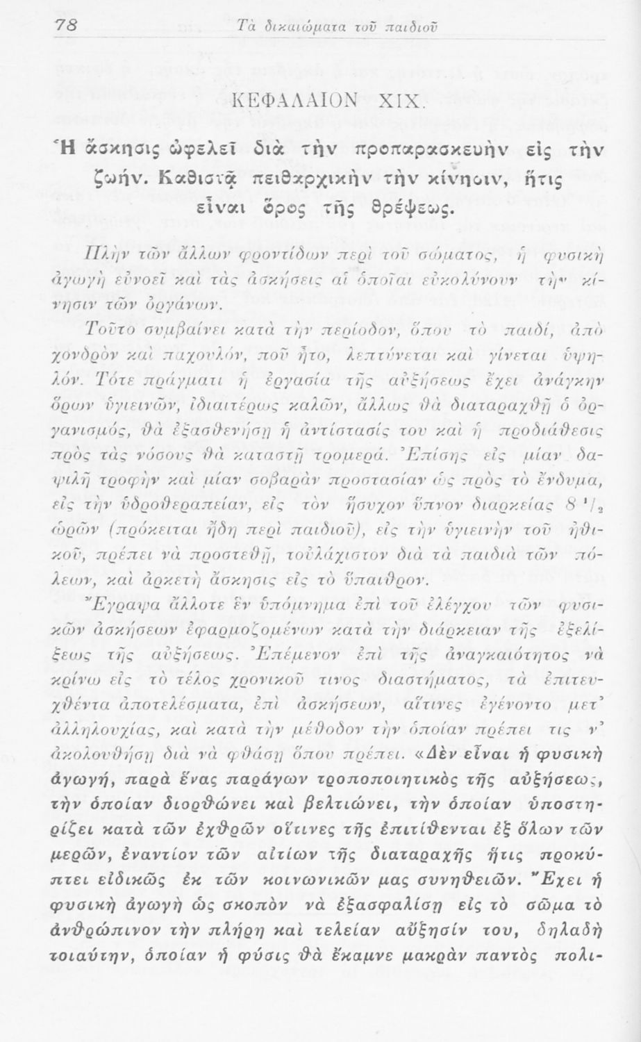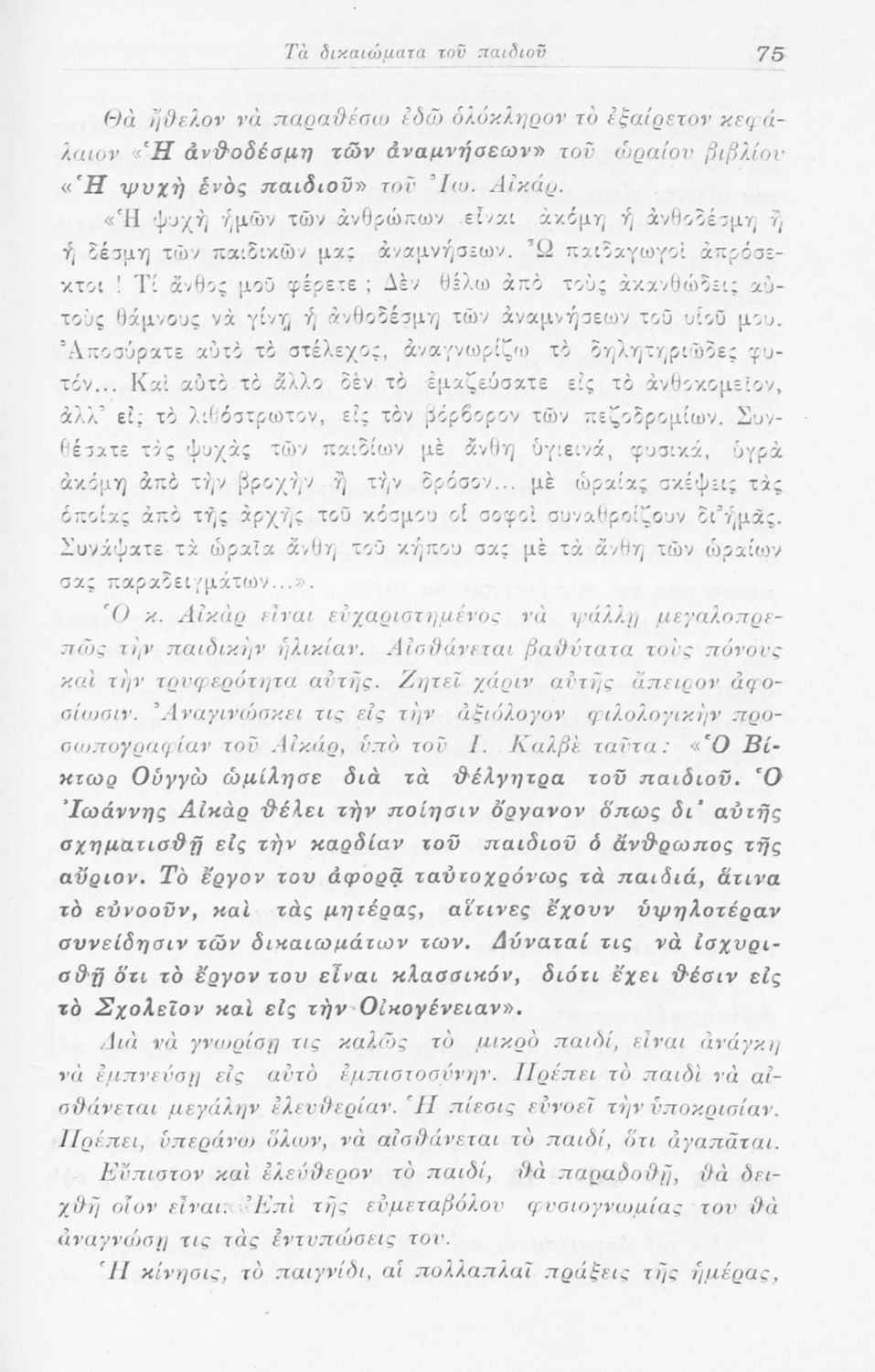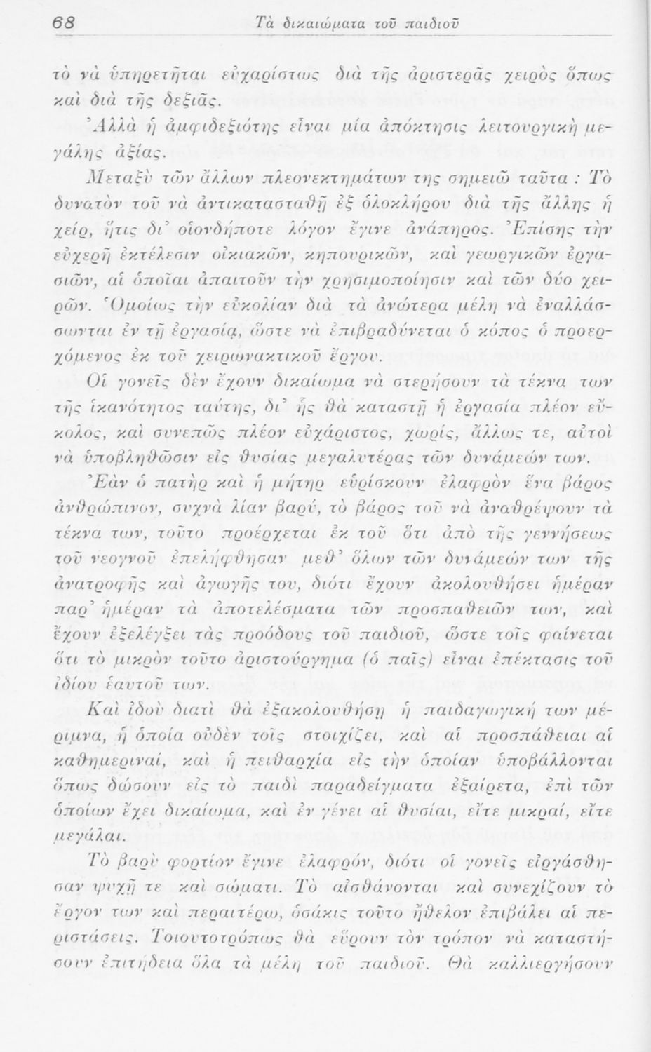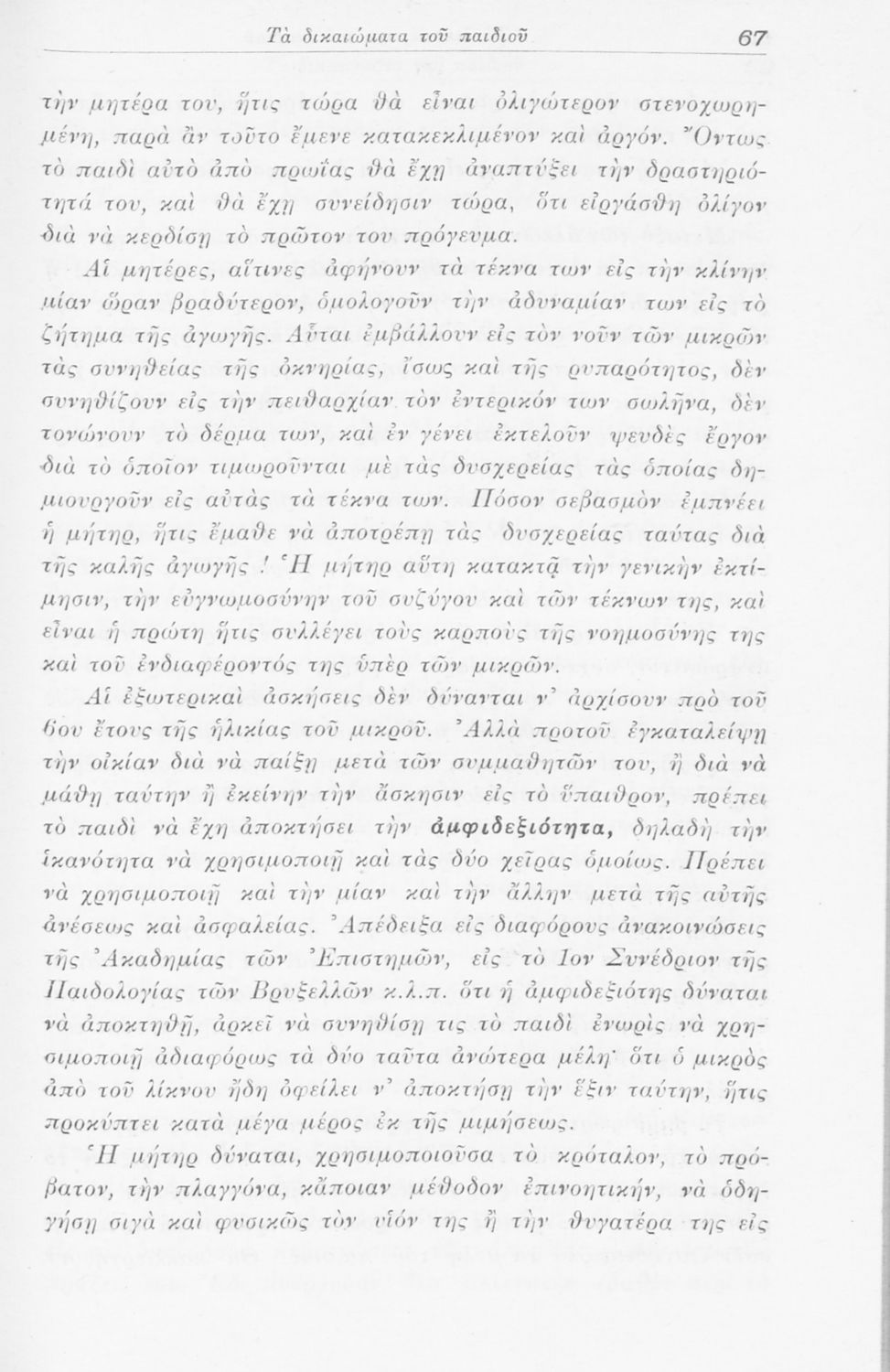 520 ## _aΔοκίμιο που περιλαμβάνει διεξοδικά τα δικαιώματα του παιδιού στην καθαριότητα και υγιεινή, στον απογαλακτισμό, στον σεβασμό, στην ένδυση, στην διατροφή κ.α. Ο μεταφραστής ήταν Επιθεωρητής Δημοτικών Σχολείων.