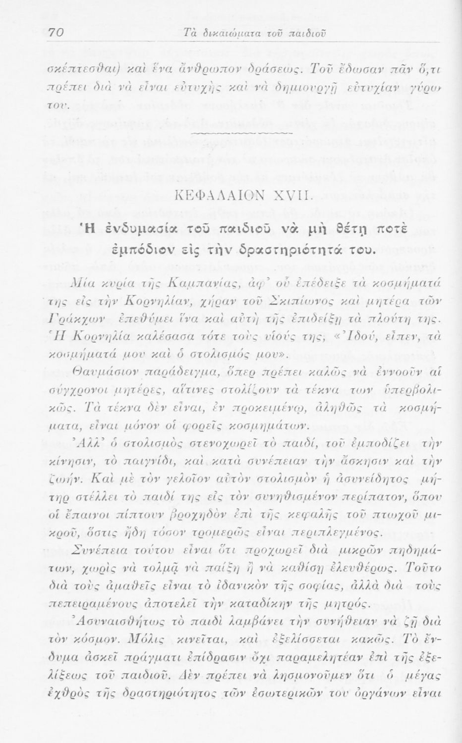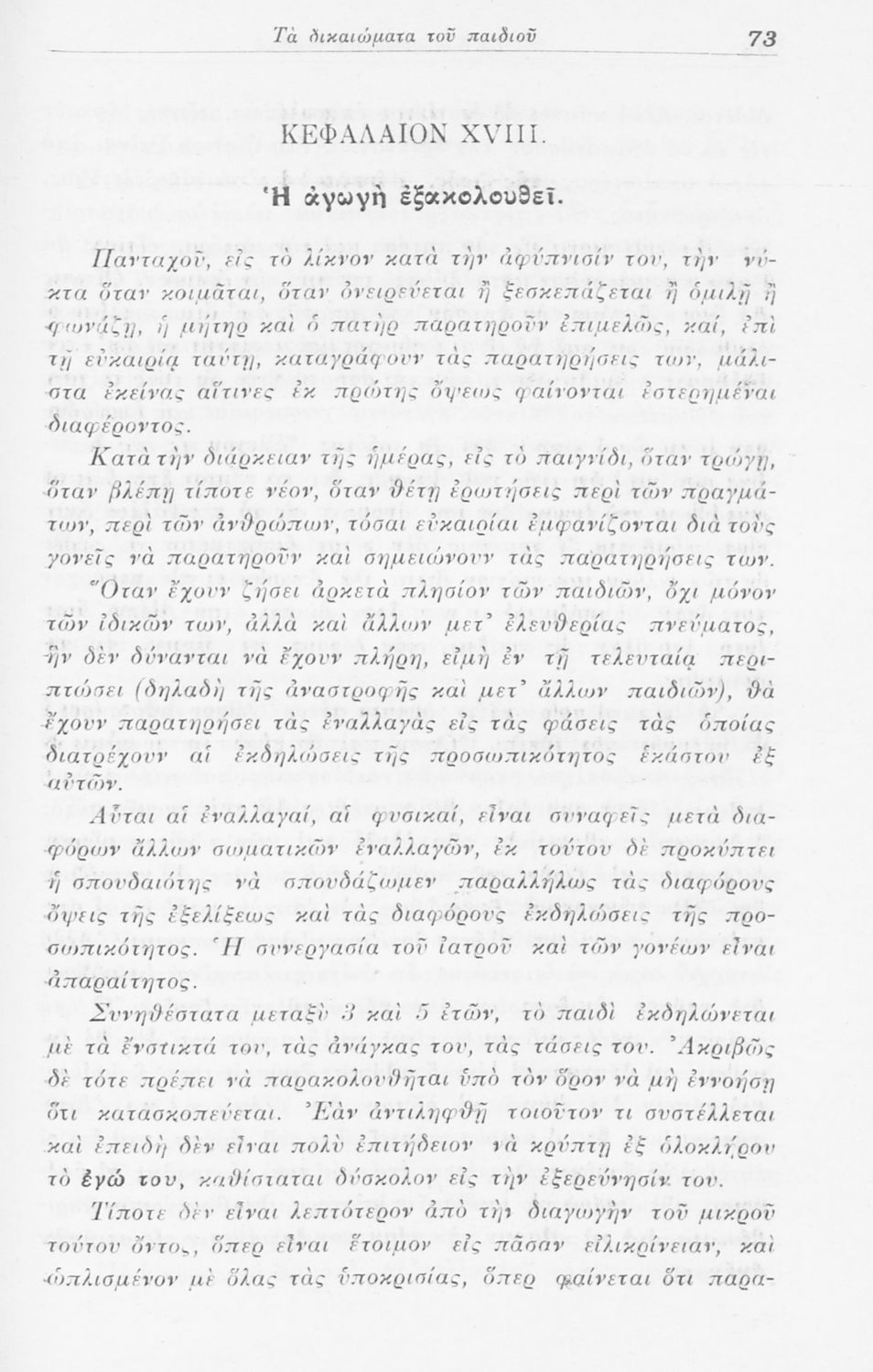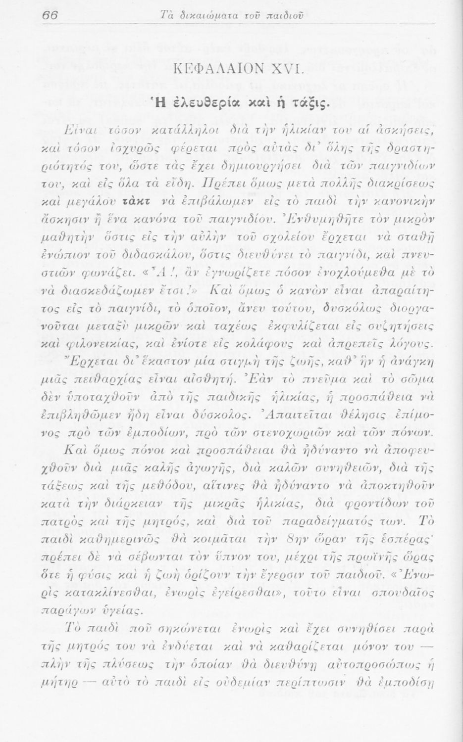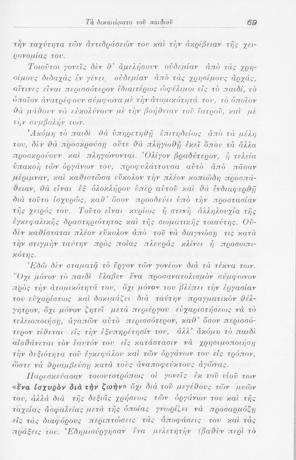 520 ## _aΔοκίμιο που περιλαμβάνει διεξοδικά τα δικαιώματα του παιδιού στην καθαριότητα και υγιεινή, στον απογαλακτισμό, στον σεβασμό, στην ένδυση, στην διατροφή κ.α. Ο μεταφραστής ήταν Επιθεωρητής Δημοτικών Σχολείων.