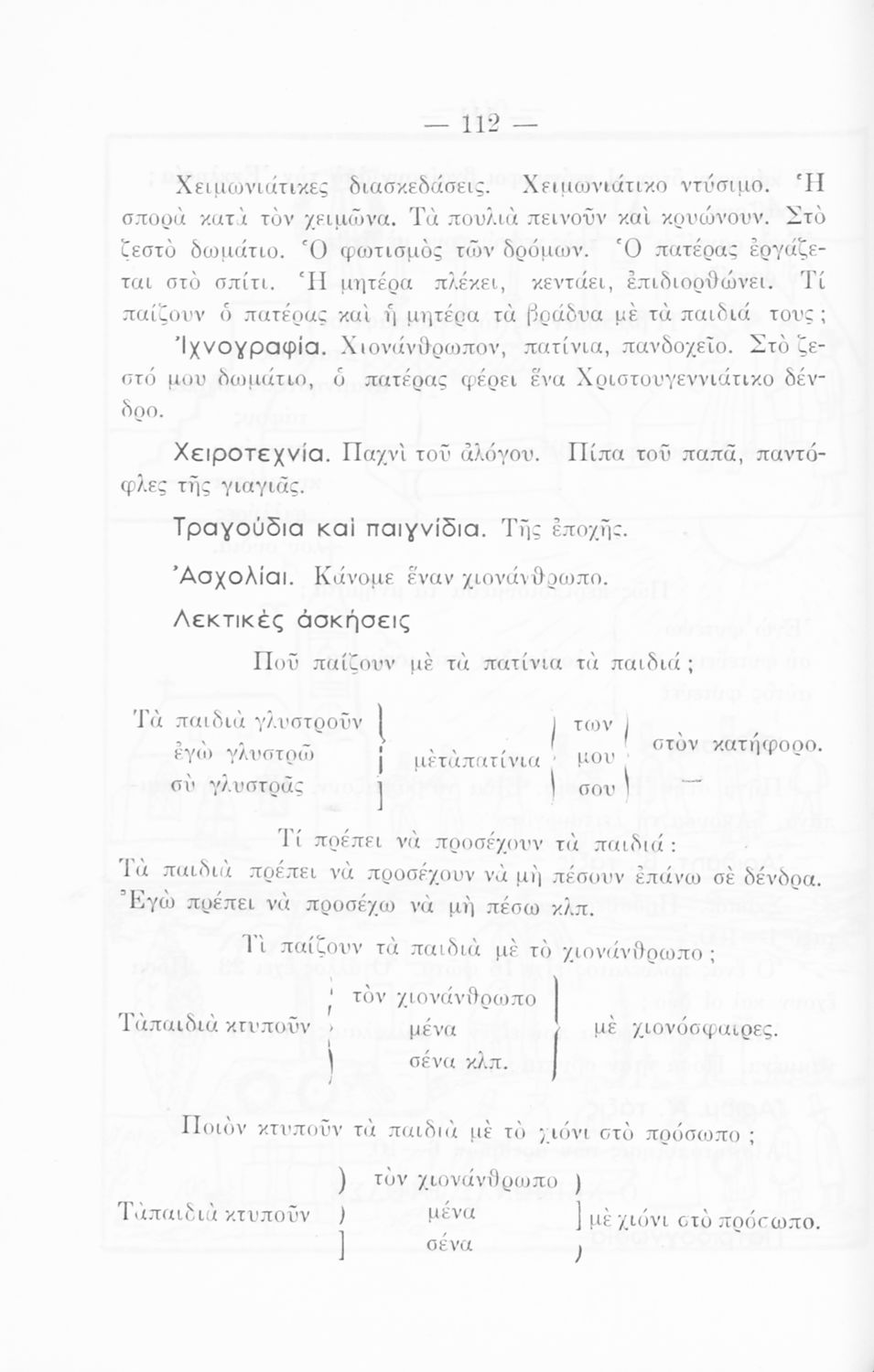 LDR 01359 2200181 4500 035 ## _a05-00068 040 ## _aΕργαστήρι Ιστορίας Ν.Ε. Εκπαίδευσης, Πανεπιστήμιο Ιωαννίνων 041 ## _ael 100 ## _aΙωάννης Ν. Τουρνάς 110 ## _a068 245 0# _aΗ ενιαία διδασκαλία εις την Α΄ και Β΄ τάξιν 260 ## _aΜυτιλήνη _bΤυπογραφείο Τέχνη _c1948 300 ## _a144 _bΣκίτσα (ασπρόμαυρα) 520 ## _aΠαιδαγωγικό βοήθημα που εμφορείται από τις αρχές της Νέας Αγωγής και απευθύνεται στους δασκάλους των Μονοταξίων Δημοτικών. Αποσκοπεί στην παροχή θεωρητικών κατευθύνσεων και πρακτικών οδηγιών για τη διδασκαλία της Γλώσσας και της Πατριδογνωσίας σε μονοτάξια σχολεία και συνδιδασκόμενες τάξεις. 521 ## _aΑ' Δημοτικού / Β' Δημοτικού 522 ## _aΕλλάδα 546 ## _aΑπλή καθαρεύουσα 650 #4 _aΙχνογραφία _aΛεκτικές ασκήσεις _aΠαιγνίδια _aΠατριδογνωσία _aΤραγούδια _aΧειροτεχνία