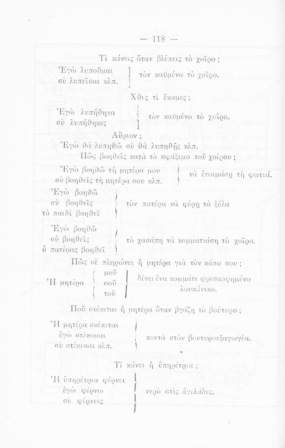 Βαθμίδα εκπαίδευσης: Πρωτοβάθμια Τάξη: Α' Δημοτικού / Β' Δημοτικού Γλώσσα: Απλή καθαρεύουσα Παρουσίαση περιεχομένου: Παιδαγωγικό βοήθημα που εμφορείται από τις αρχές της Νέας Αγωγής και απευθύνεται στους δασκάλους των Μονοταξίων Δημοτικών. Αποσκοπεί στην παροχή θεωρητικών κατευθύνσεων και πρακτικών οδηγιών για τη διδασκαλία της Γλώσσας και της Πατριδογνωσίας σε μονοτάξια σχολεία και συνδιδασκόμενες τάξεις. |