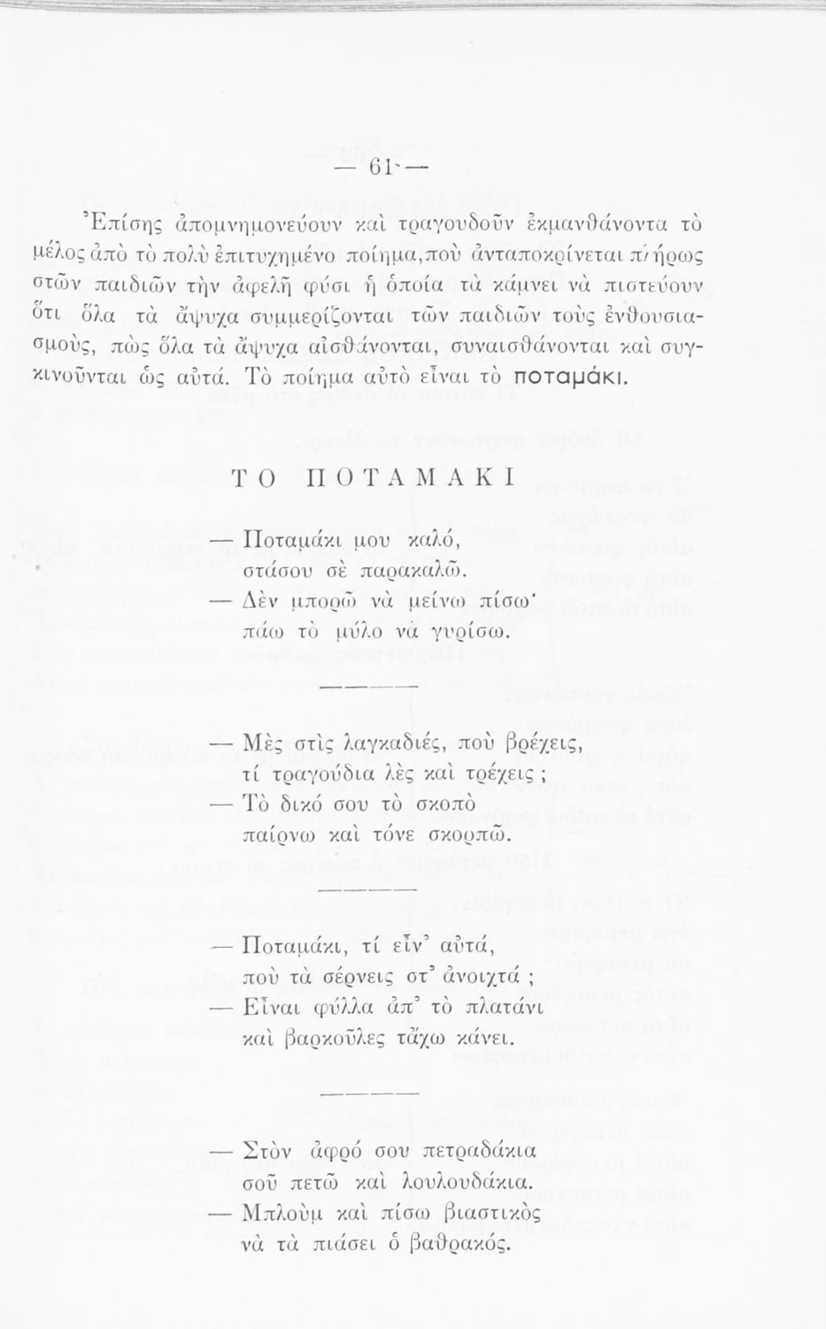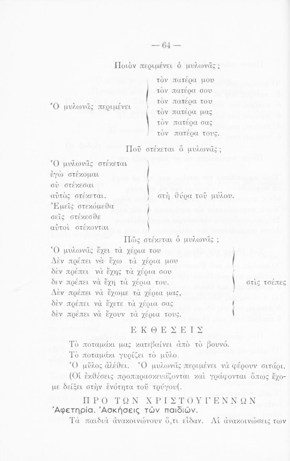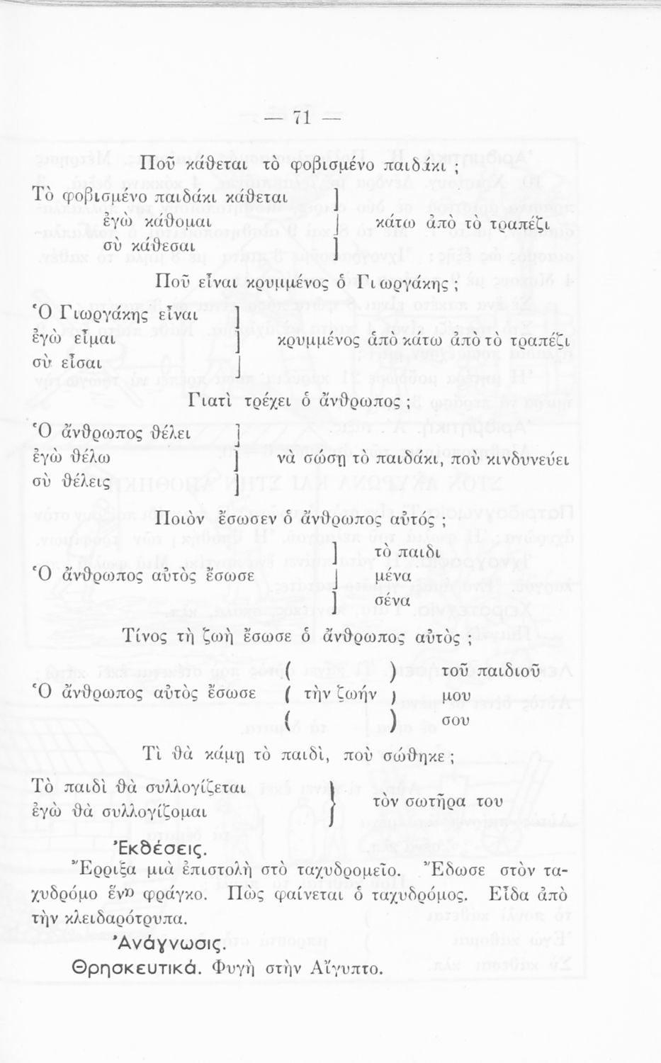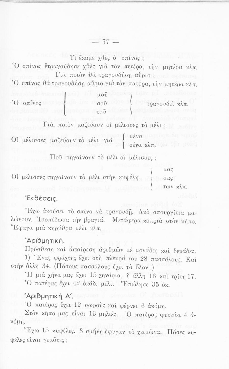 Παιδαγωγικό βοήθημα που εμφορείται από τις αρχές της Νέας Αγωγής και απευθύνεται στους δασκάλους των Μονοταξίων Δημοτικών. Αποσκοπεί στην παροχή θεωρητικών κατευθύνσεων και πρακτικών οδηγιών για τη διδασκαλία της Γλώσσας και της Πατριδογνωσίας σε μονοτάξια σχολεία και συνδιδασκόμενες τάξεις.
