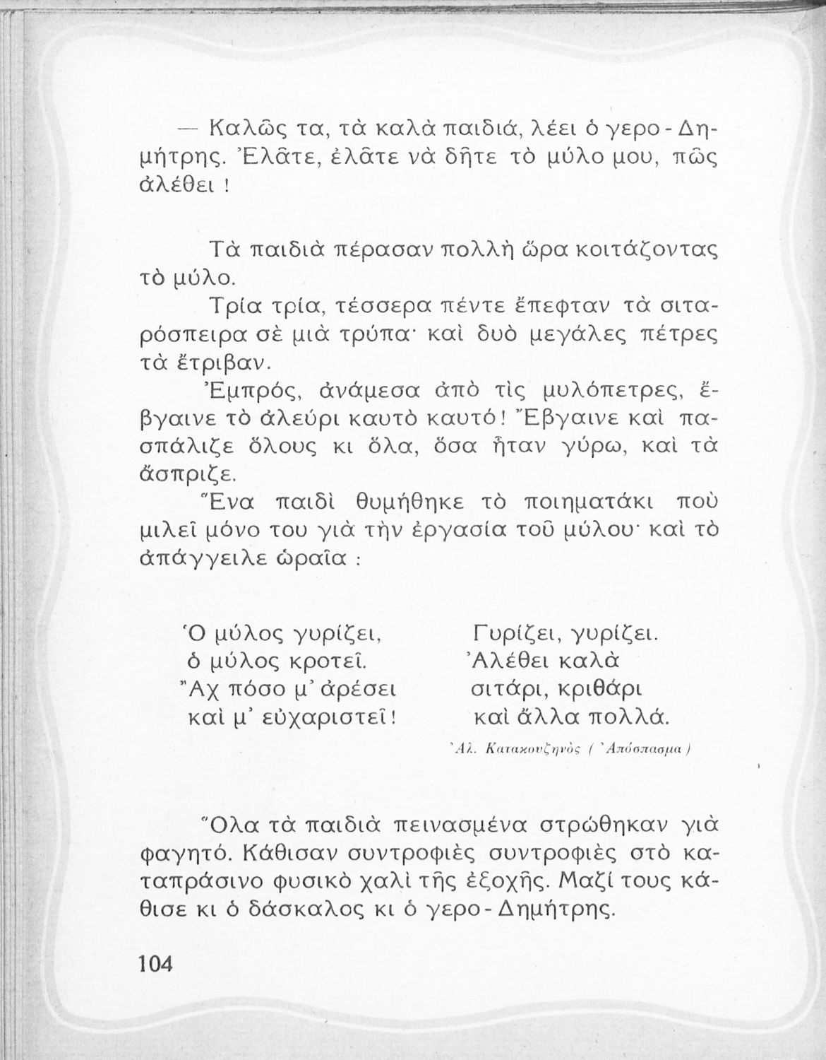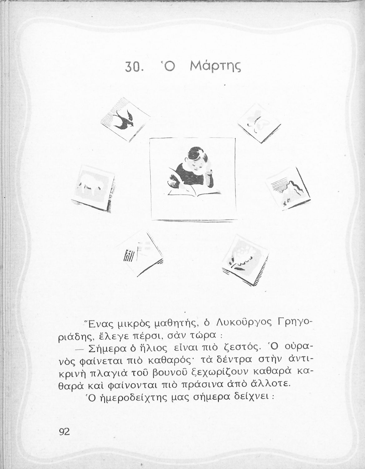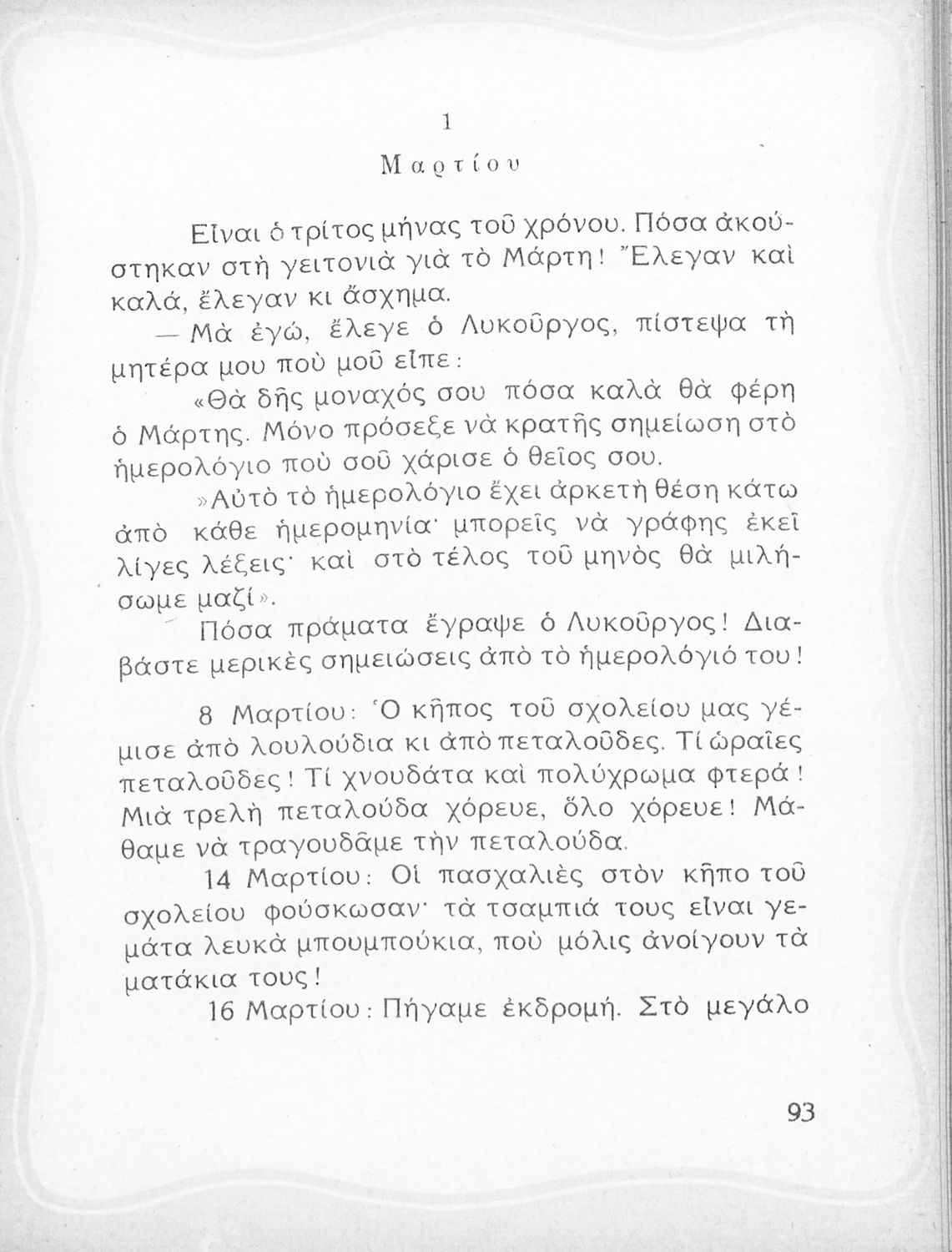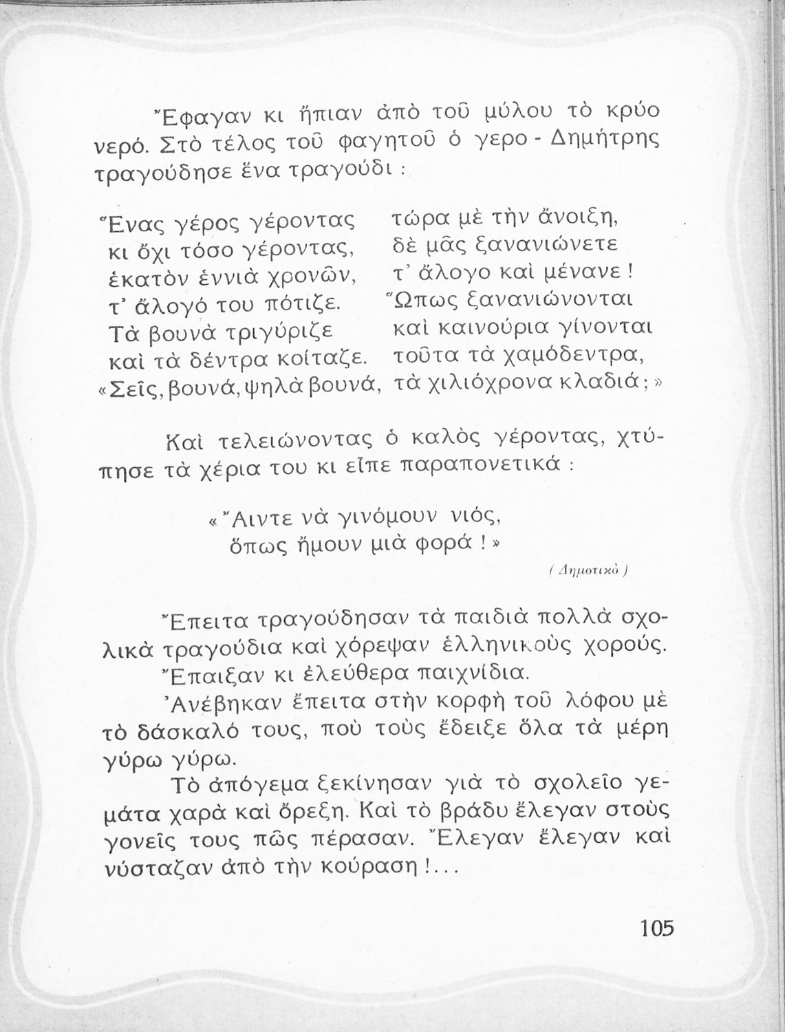 Αναγνωστικό Β' Δημοτικού που περιλαμβάνει ποιήματα και πεζά εμπνευσμένα από την καθημερινή ζωή, την ελληνική μυθολογία, την ελληνική φύση και τη θρησκευτική παράδοση.