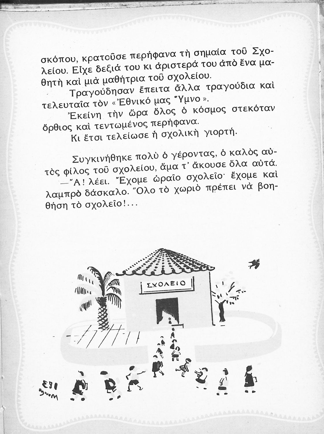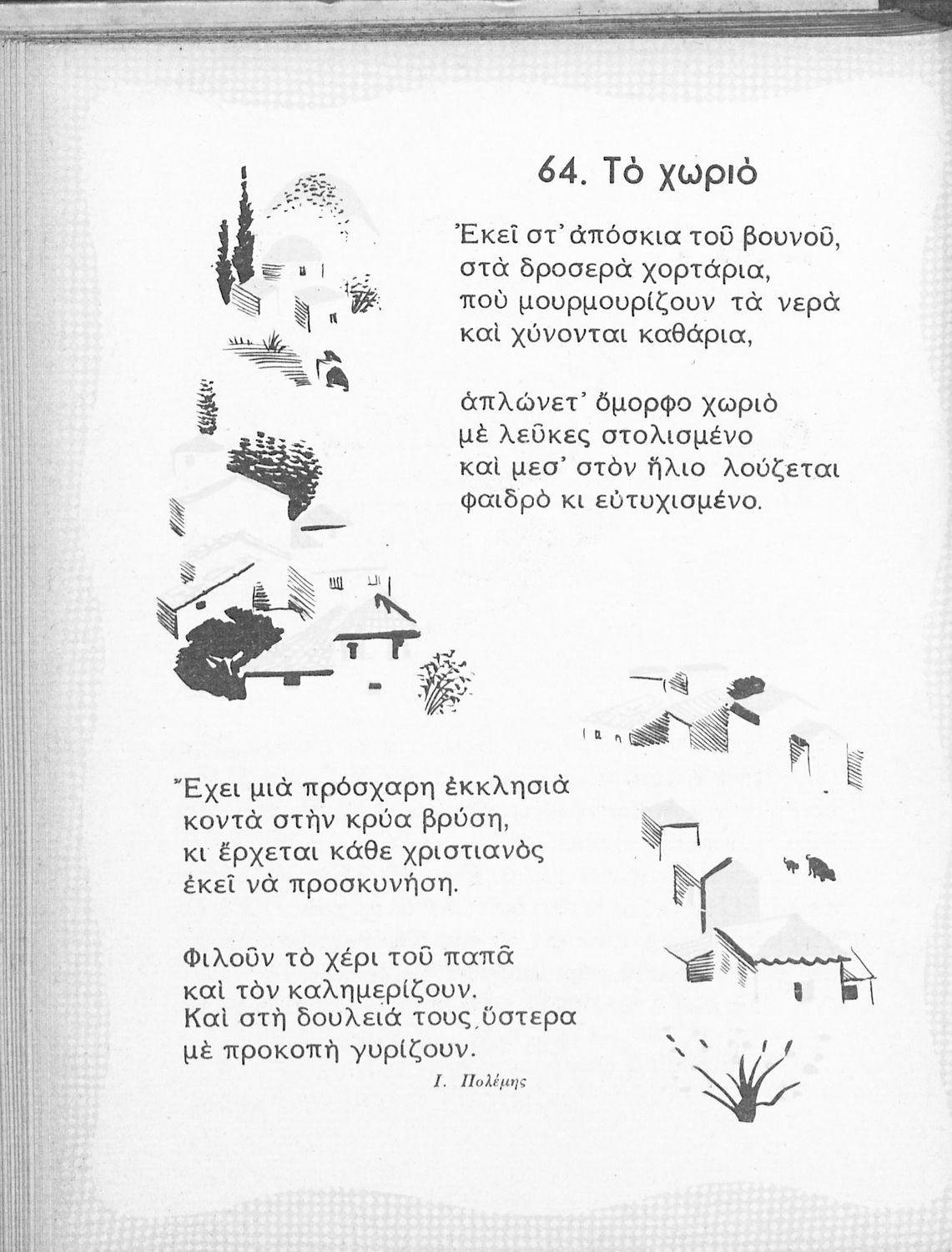 Αναγνωστικό για τη Β΄ Δημοτικού που περιέχει ποιήματα και πεζά που αντλούν τα θέματά τους από τη φύση και την παράδοση της Ελλάδας και την κοινωνική και επαγγελματική ζωή των κατοίκων της.