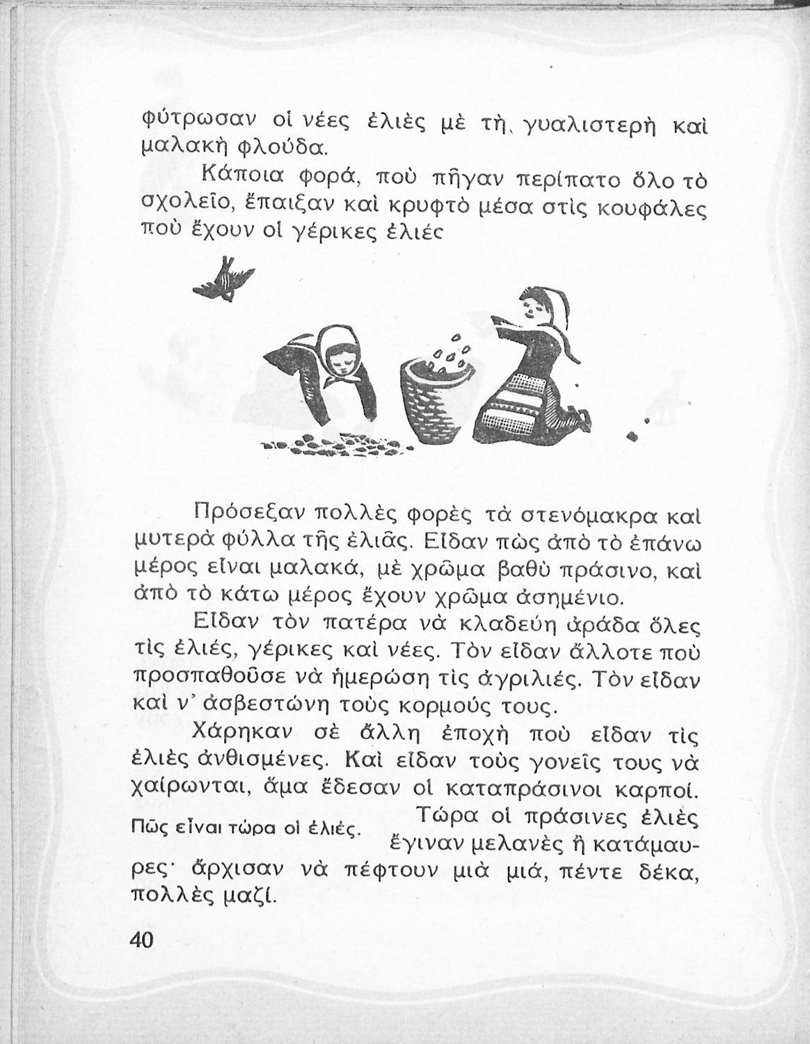 Αναγνωστικό Β΄ Δημοτικού που περιέχει ποιήματα και διηγήματα Ελλήνων συγγραφέων που αντλούν τα θέματά τους από την καθημερινή ζωή των ανθρώπων.
