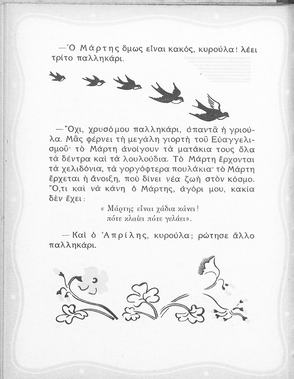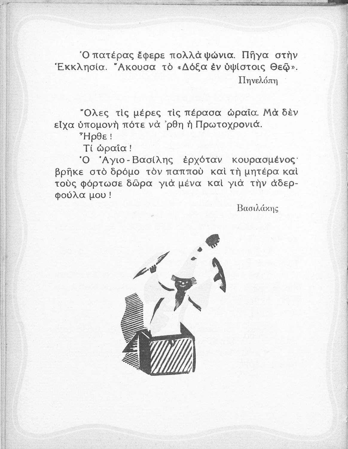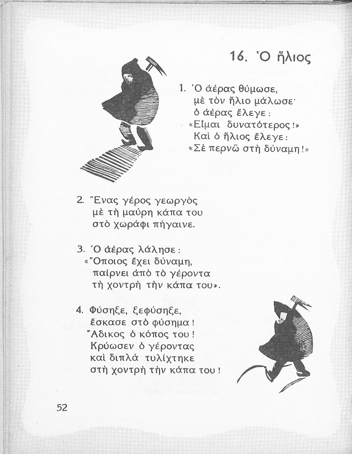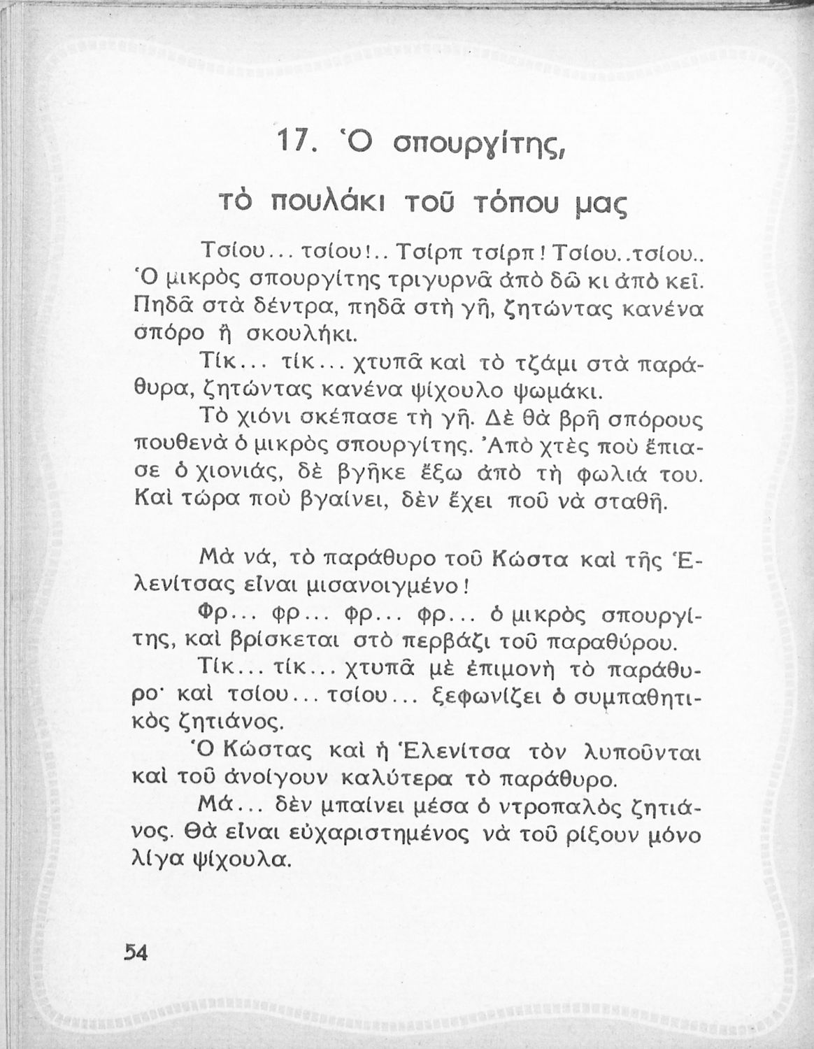 Αναγνωστικό Β΄ Δημοτικού που περιέχει ποιήματα και διηγήματα Ελλήνων συγγραφέων που αντλούν τα θέματά τους από την καθημερινή ζωή των ανθρώπων.