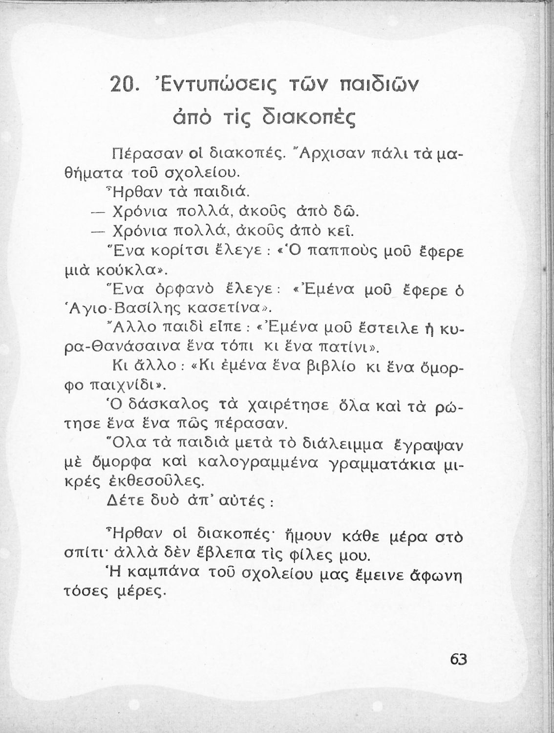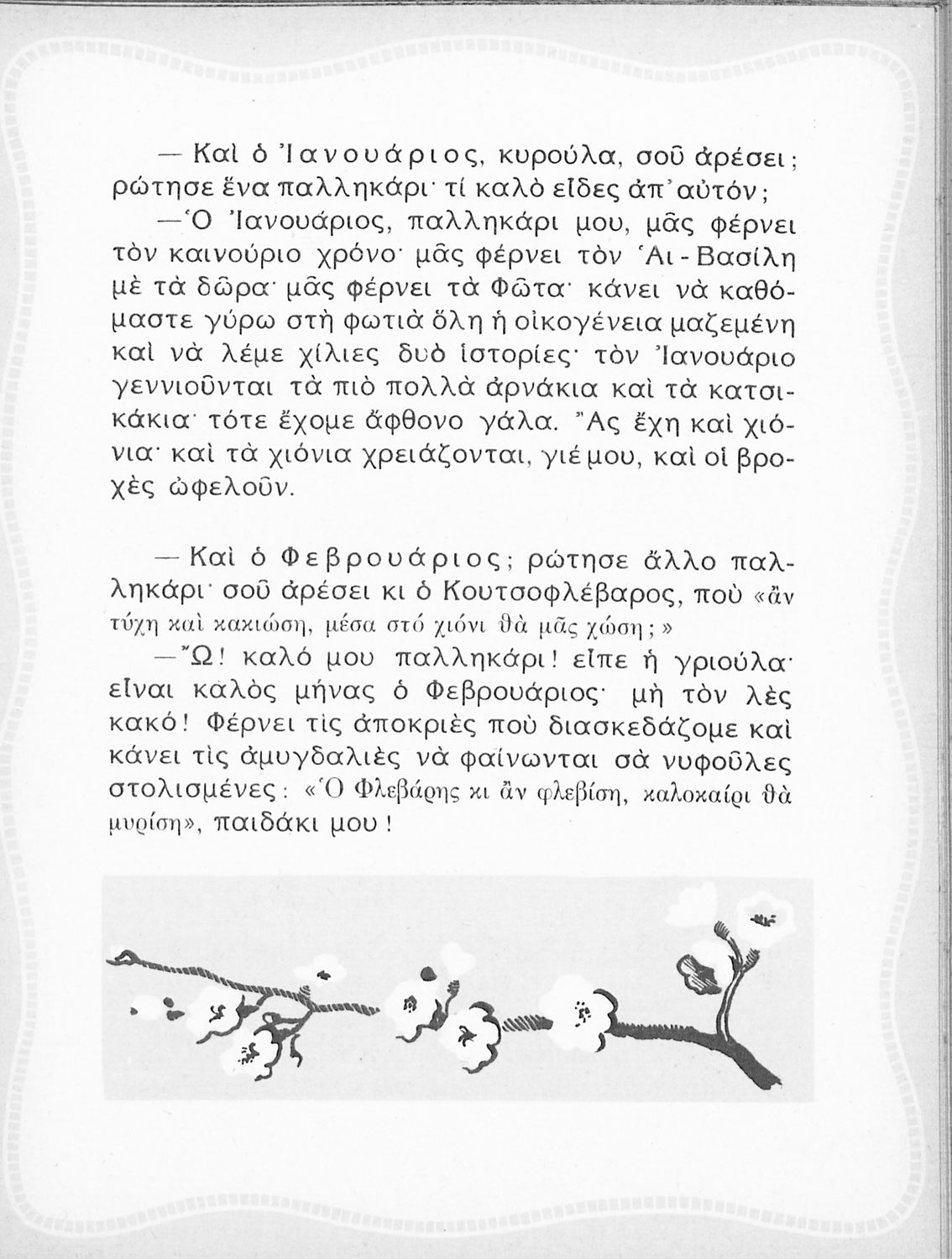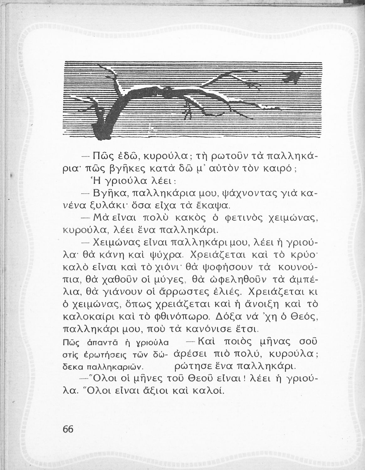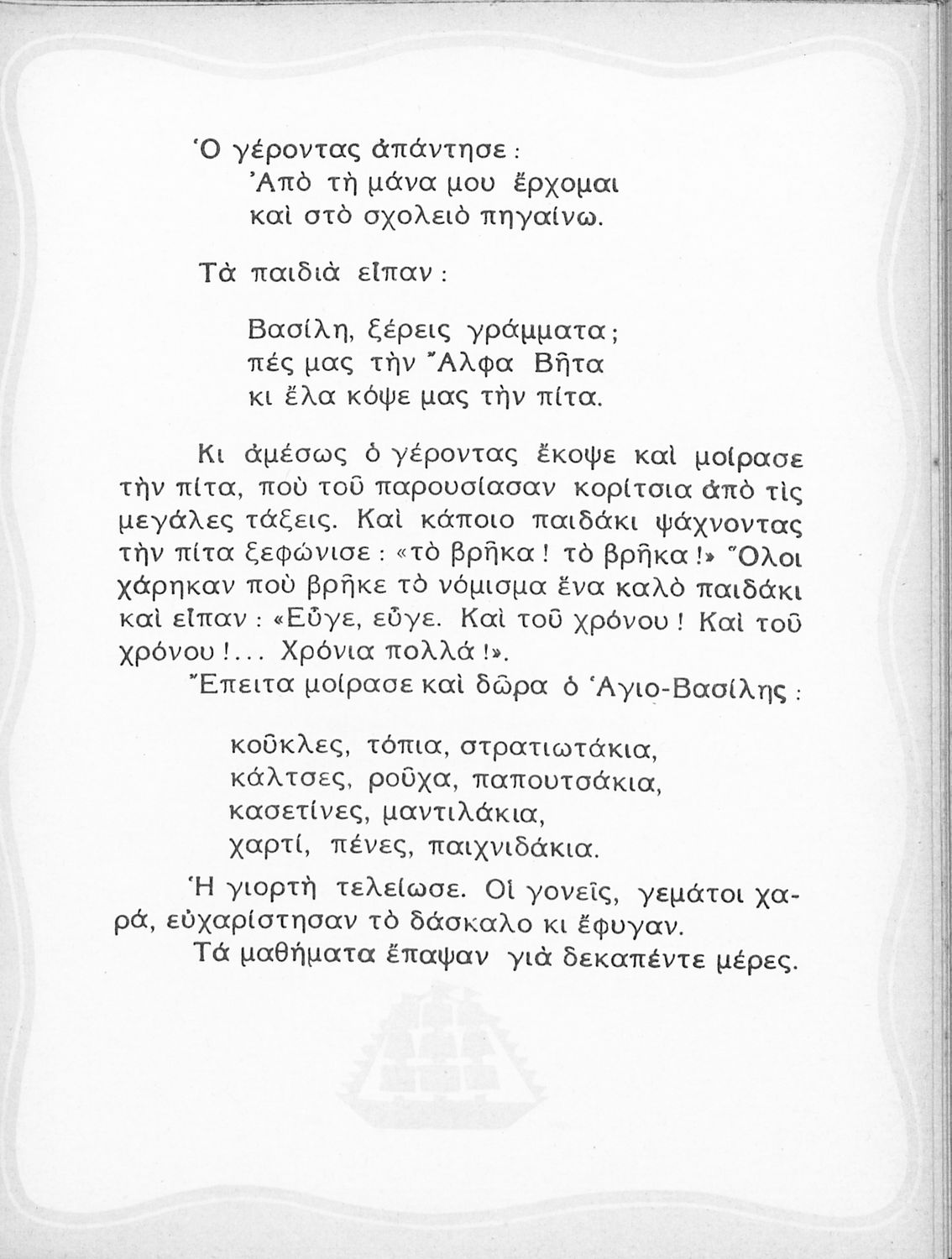 Αναγνωστικό Β΄ Δημοτικού που περιέχει ποιήματα και διηγήματα Ελλήνων συγγραφέων που αντλούν τα θέματά τους από την καθημερινή ζωή των ανθρώπων.