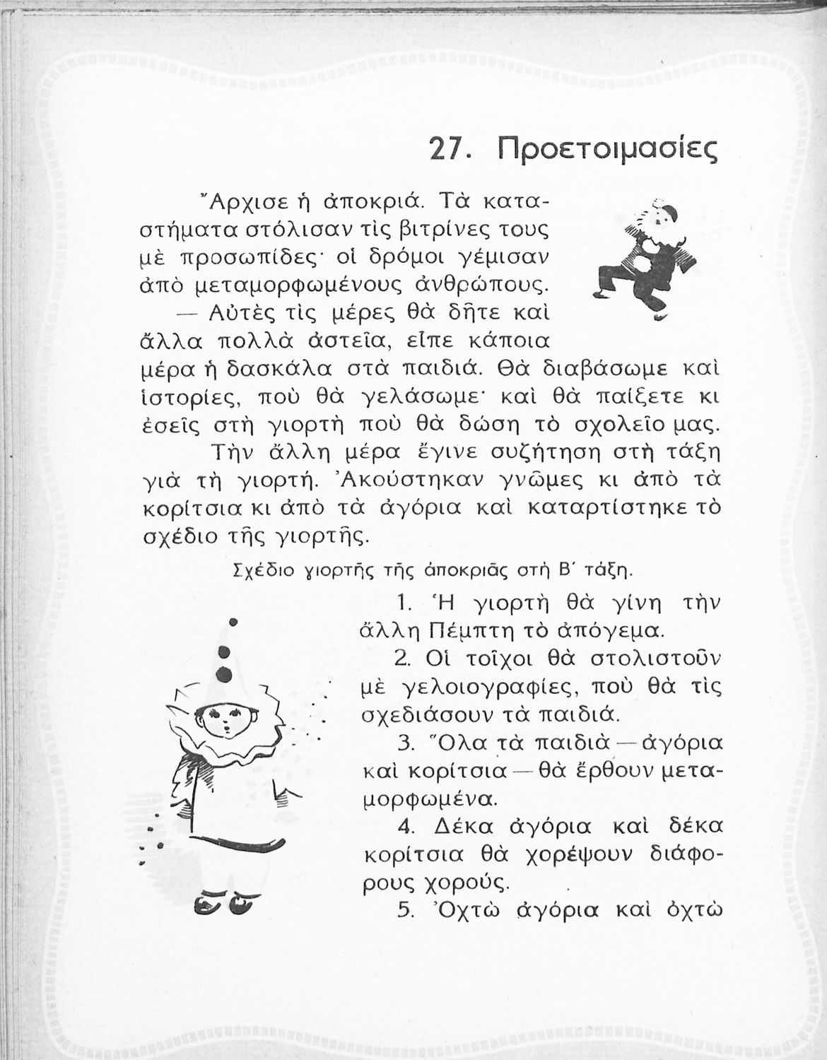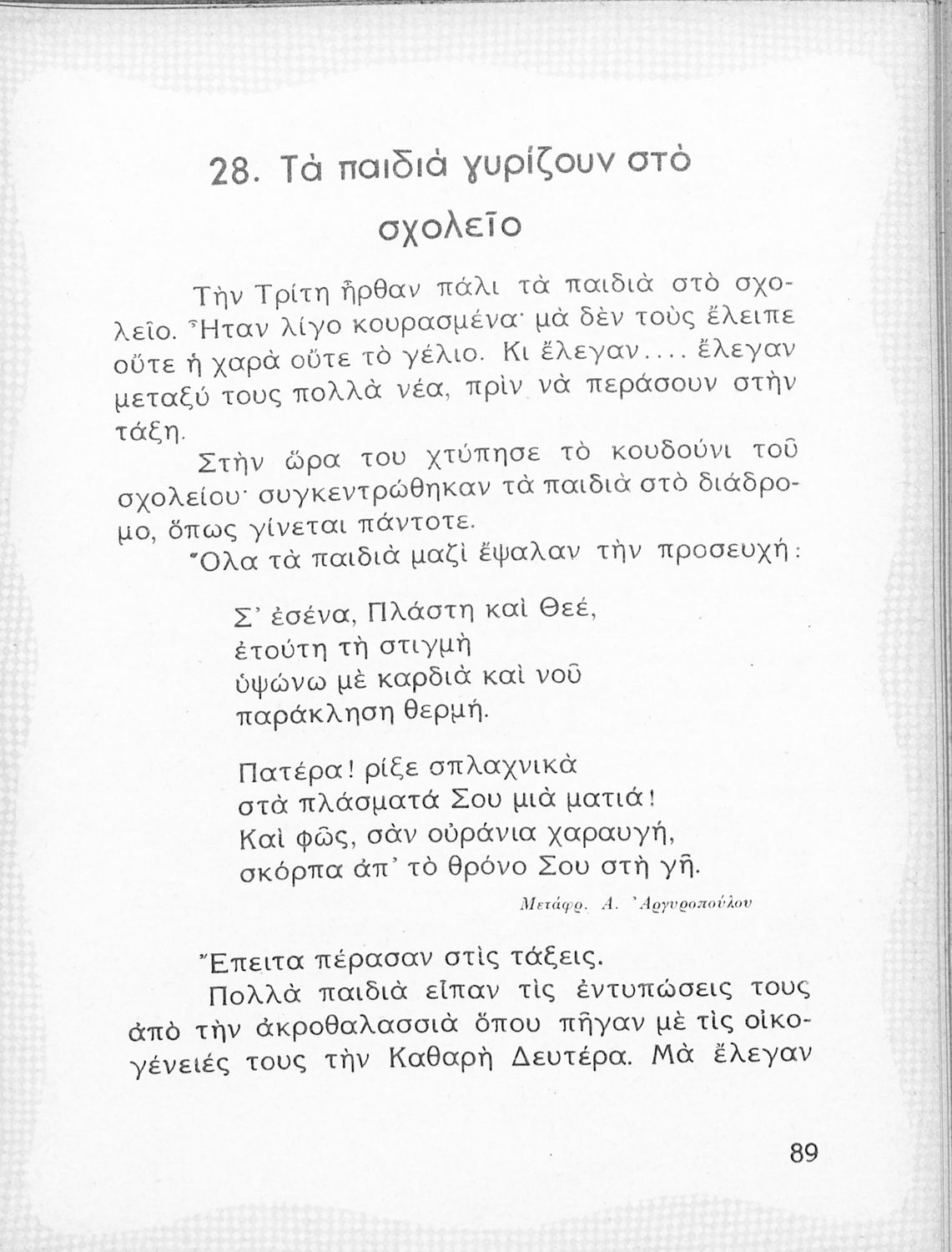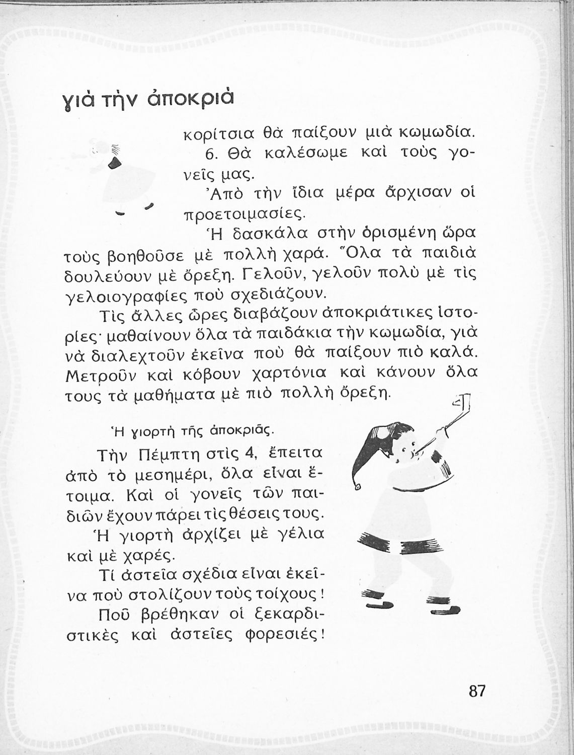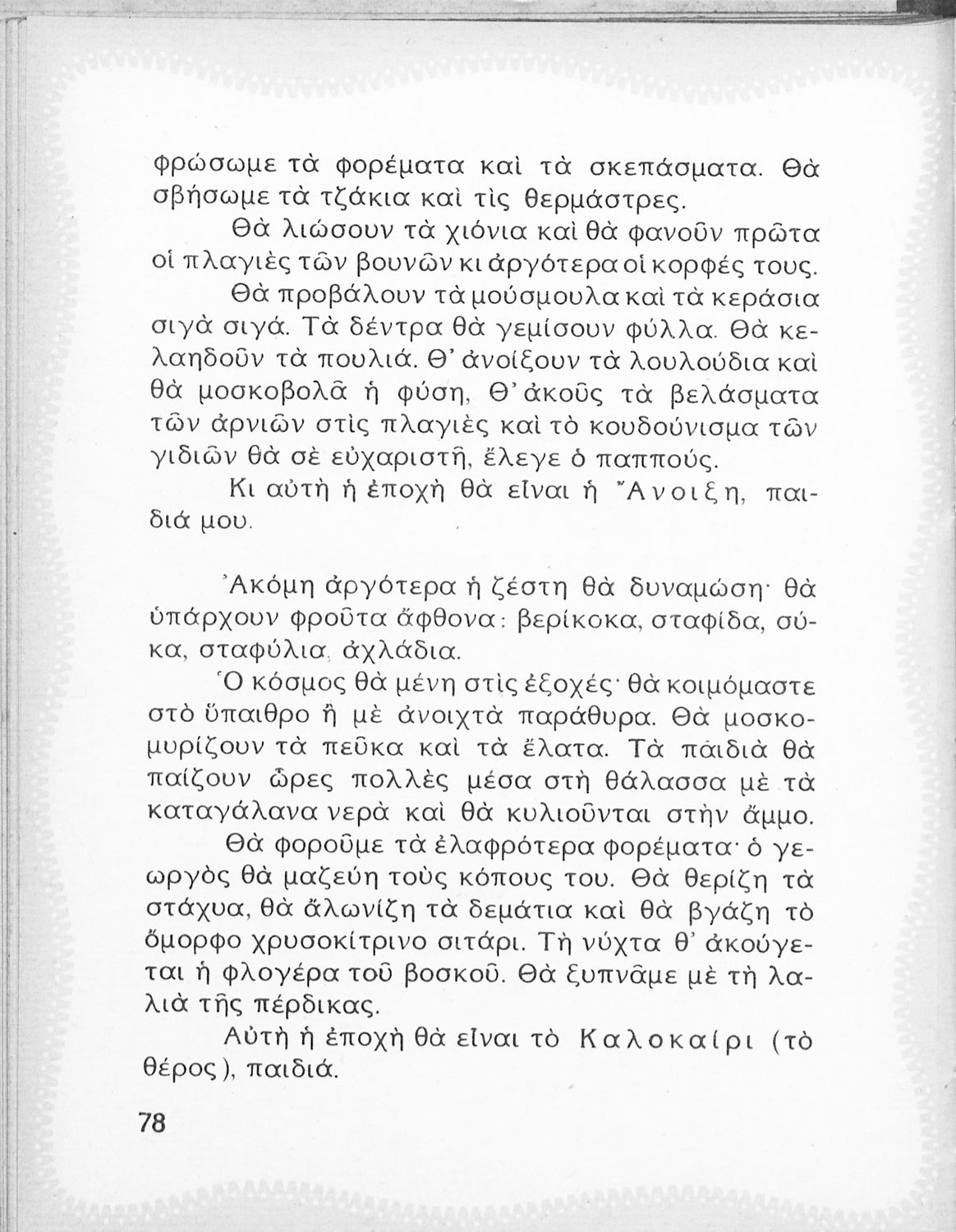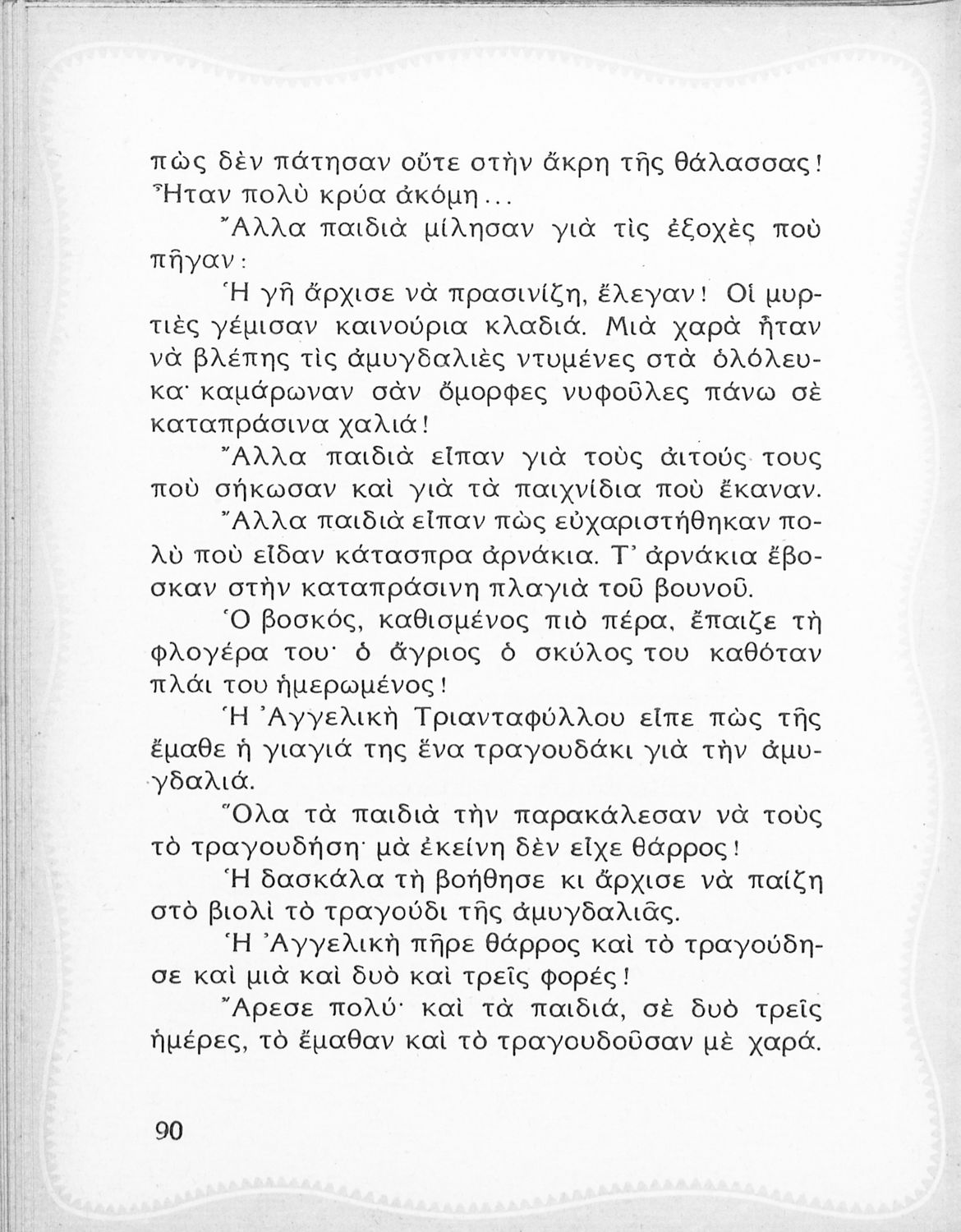 Αναγνωστικό Β΄ Δημοτικού που περιέχει ποιήματα και διηγήματα Ελλήνων συγγραφέων που αντλούν τα θέματά τους από την καθημερινή ζωή των ανθρώπων.