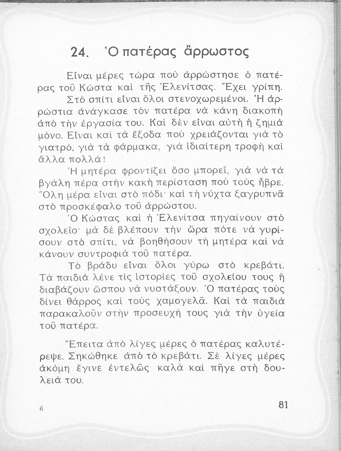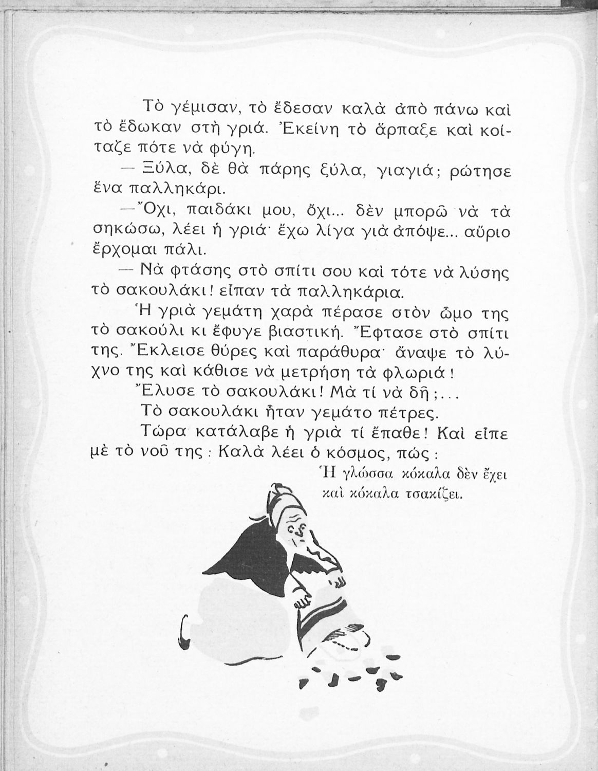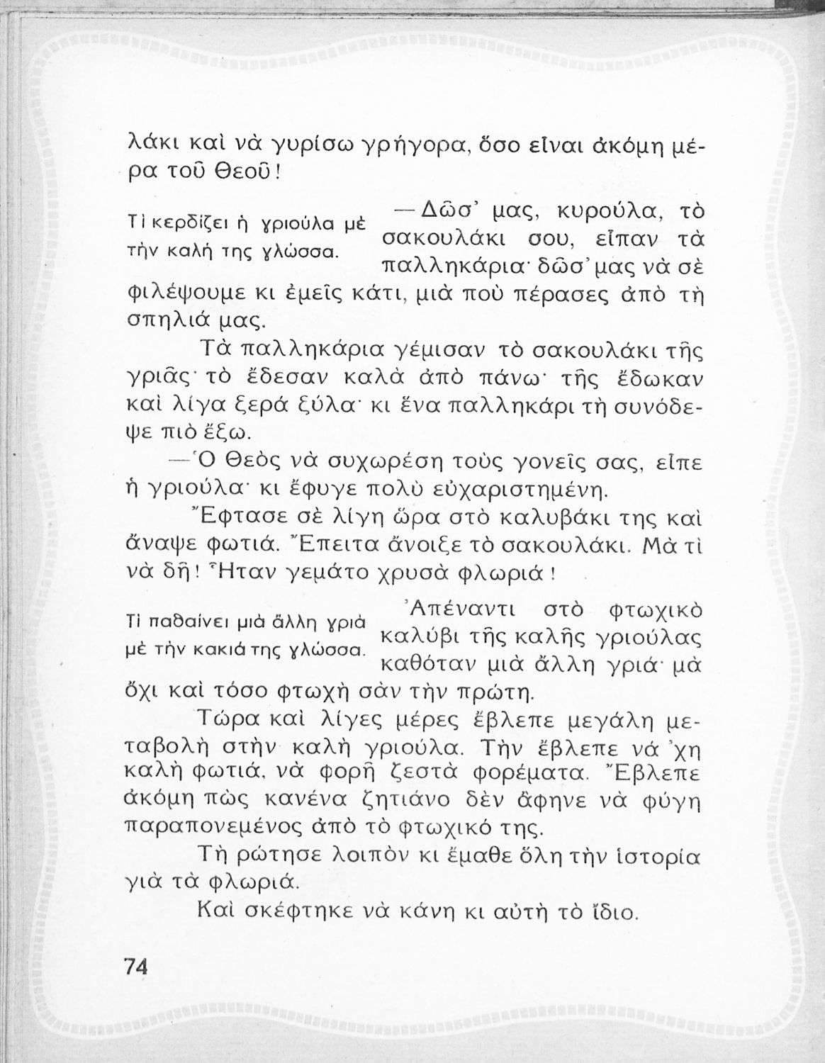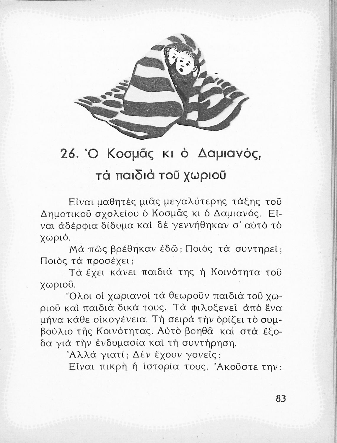 Αναγνωστικό Β΄ Δημοτικού που περιέχει ποιήματα και διηγήματα Ελλήνων συγγραφέων που αντλούν τα θέματά τους από την καθημερινή ζωή των ανθρώπων.