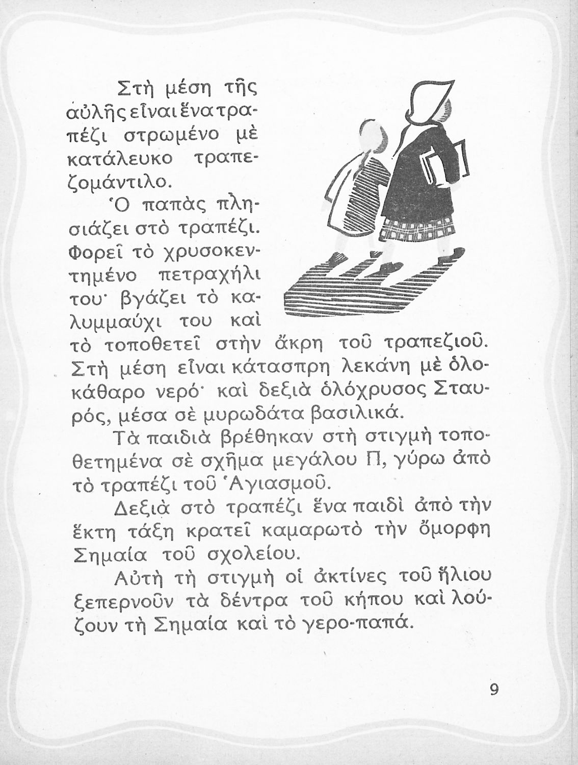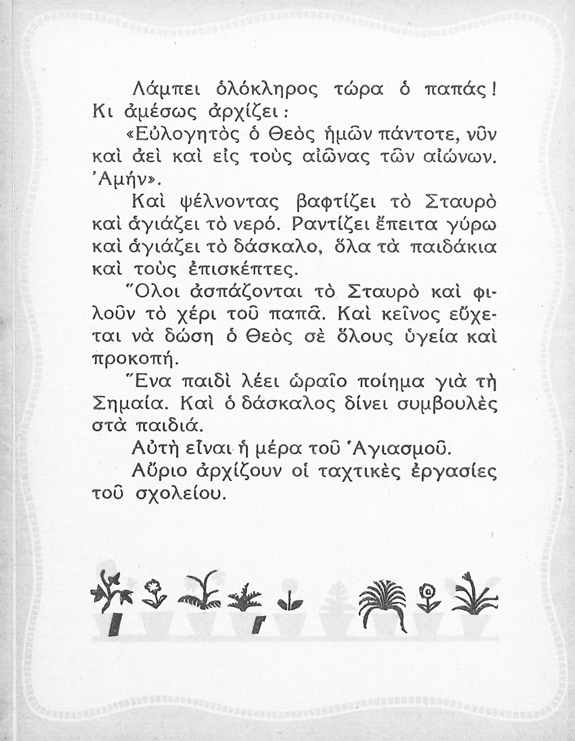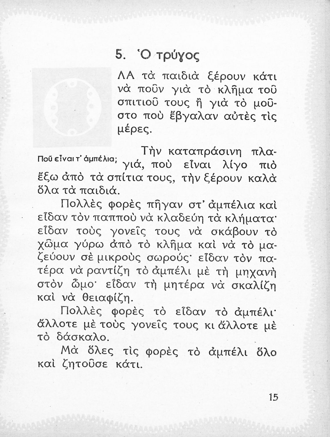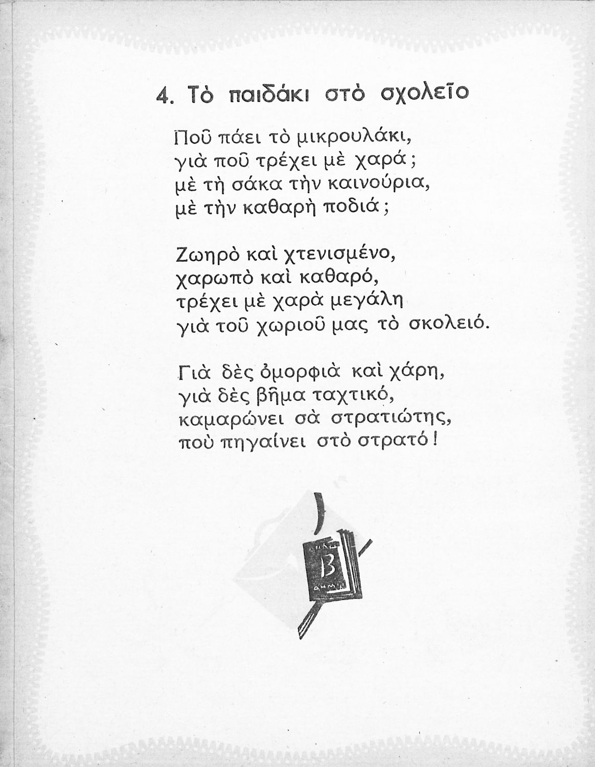 Αναγνωστικό Β΄ Δημοτικού που περιέχει ποιήματα και διηγήματα Ελλήνων συγγραφέων που αντλούν τα θέματά τους από την καθημερινή ζωή των ανθρώπων.