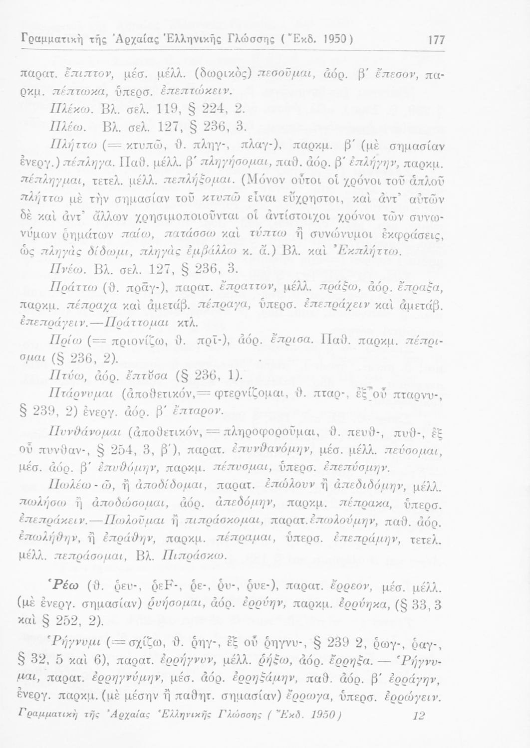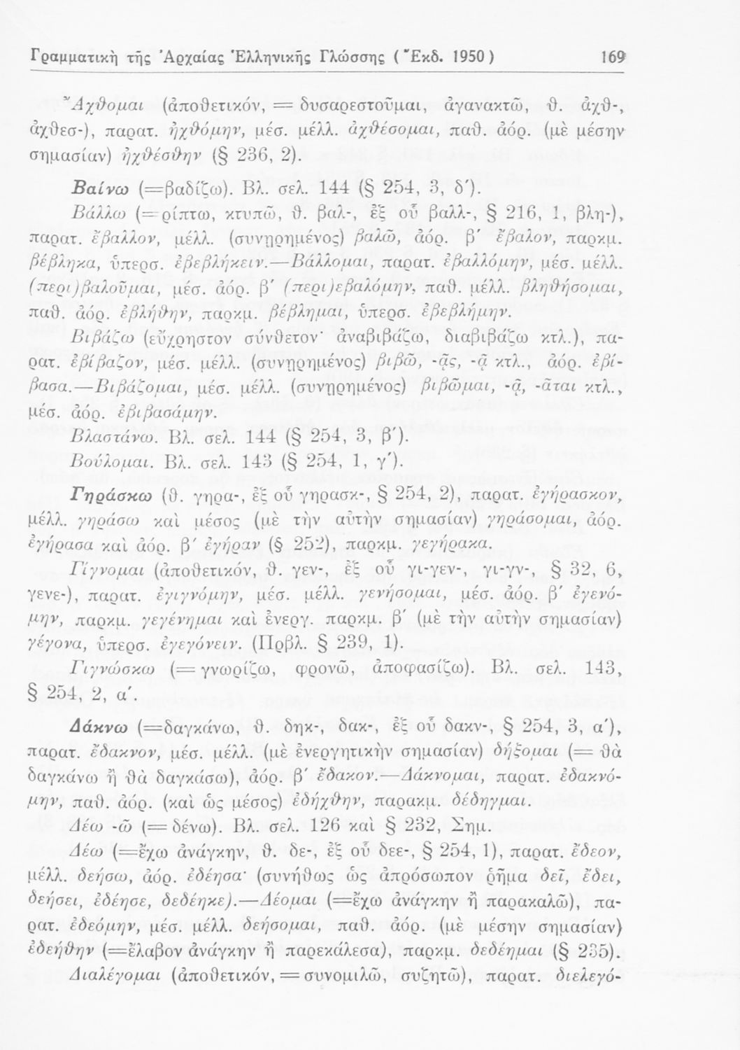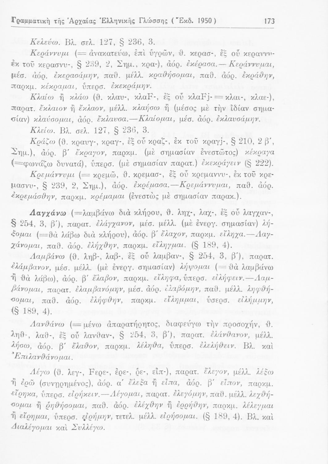 Σχολικό εγχειρίδιο Αρχαίων Ελληνικών Γυμνασίου που περιέχει τους κανόνες γραμματικής και είναι χωρισμένο σε φθογγολογικό, τυπολογικό και ετυμολογικό μέρος. Περιέχει και κατάλογο ανωμάλων ρημάτων.