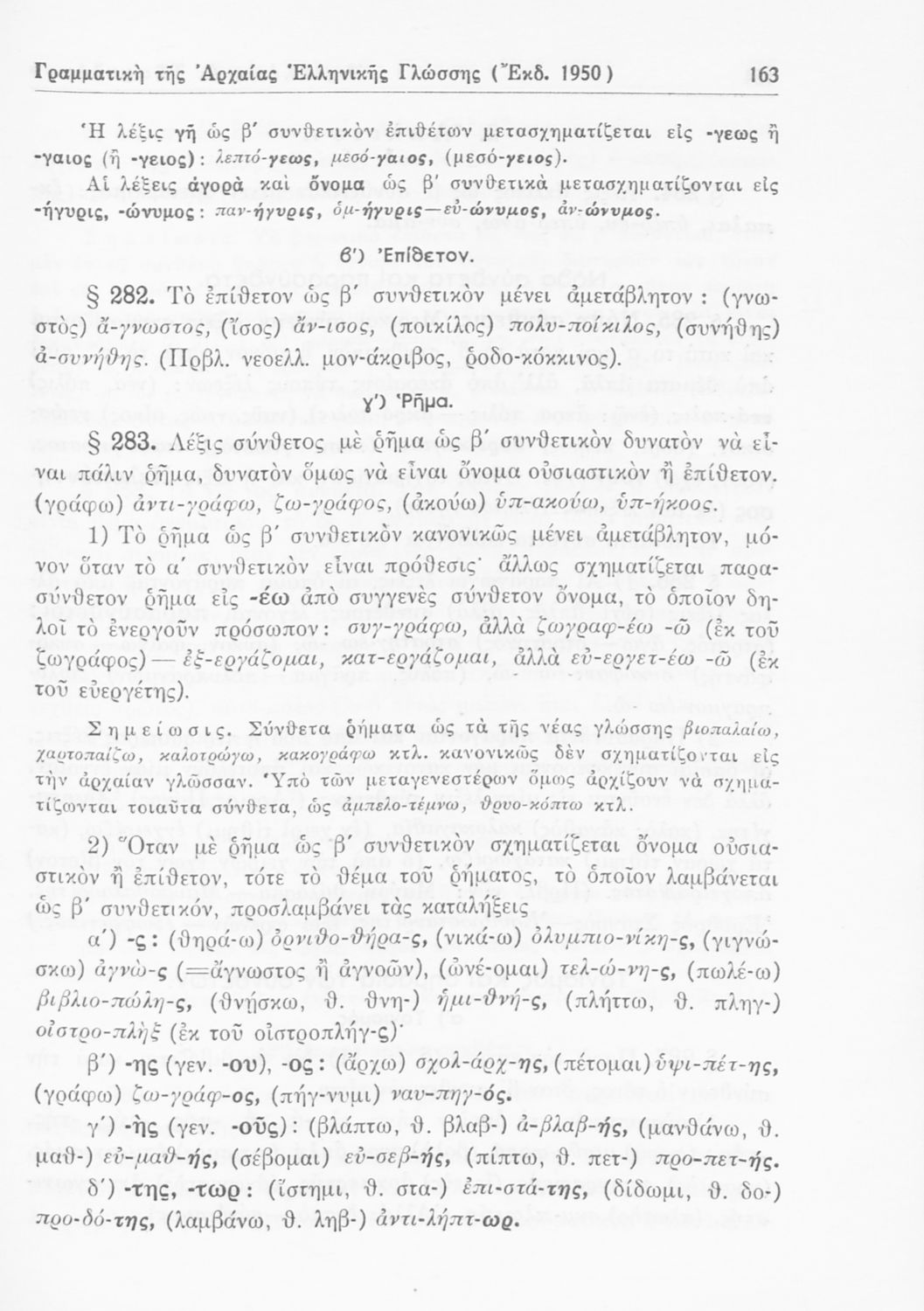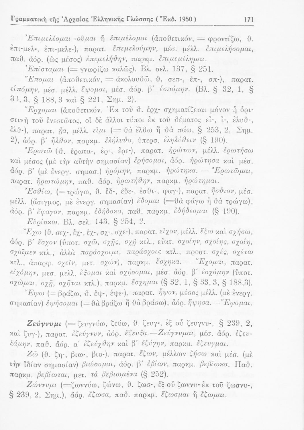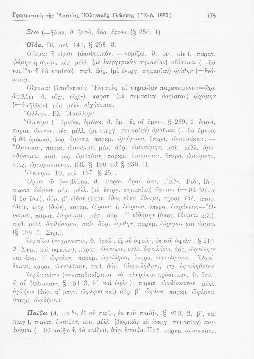 Σχολικό εγχειρίδιο Αρχαίων Ελληνικών Γυμνασίου που περιέχει τους κανόνες γραμματικής και είναι χωρισμένο σε φθογγολογικό, τυπολογικό και ετυμολογικό μέρος. Περιέχει και κατάλογο ανωμάλων ρημάτων.
