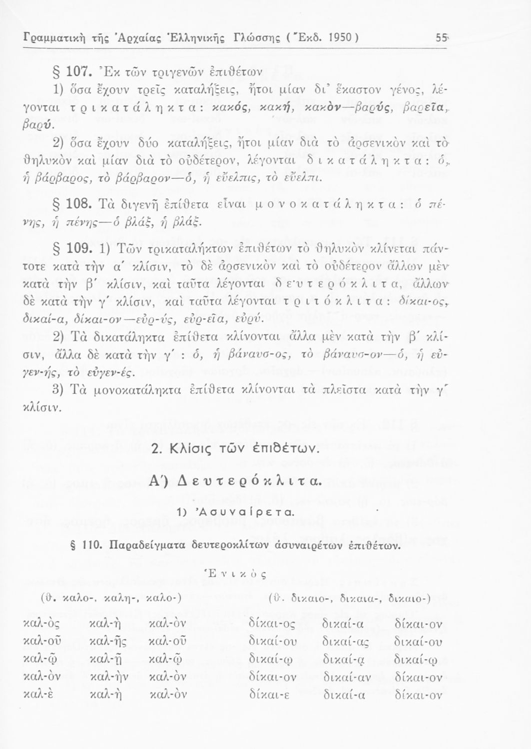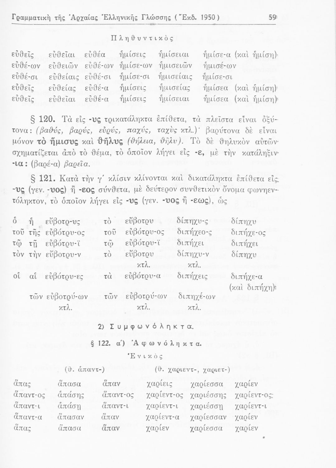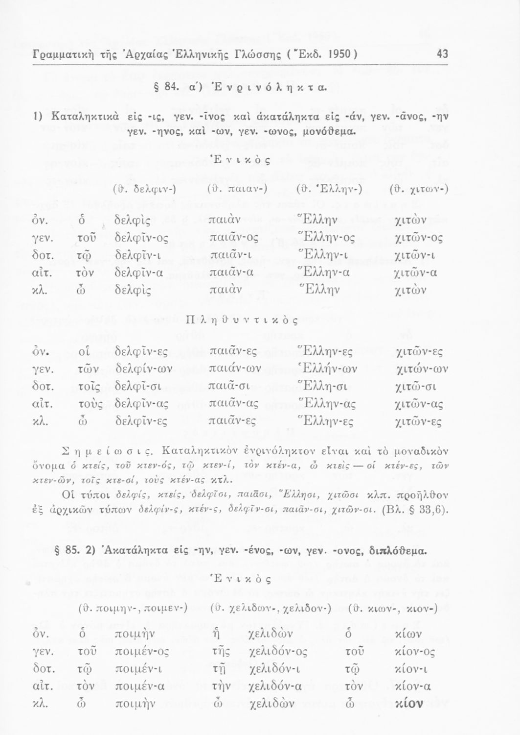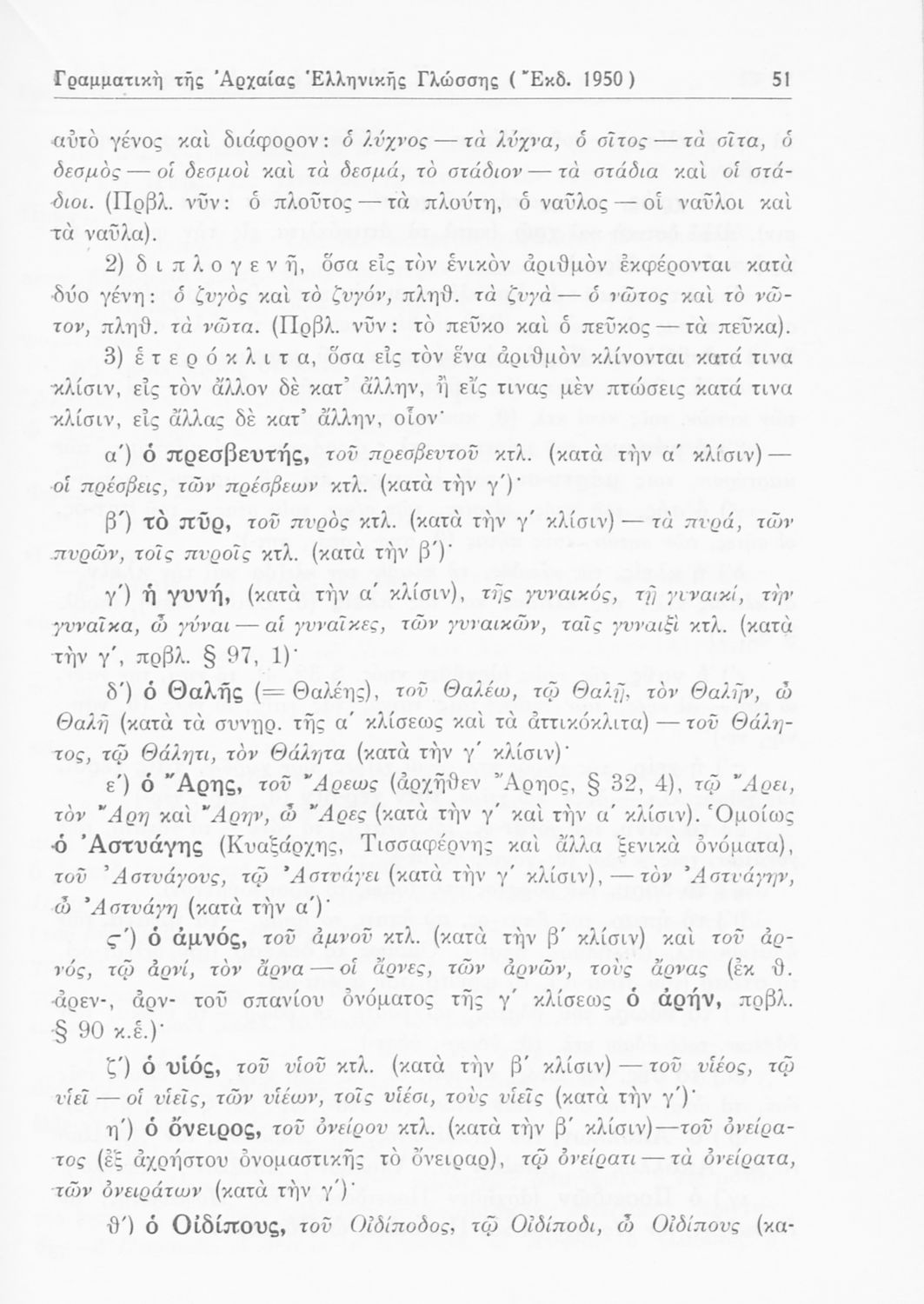 Σχολικό εγχειρίδιο Αρχαίων Ελληνικών Γυμνασίου που περιλαμβάνει τους κανόνες γραμματικής και είναι χωρισμένη στο φθογγολογικό, το τυπολογικό και ετυμολογικό μέρος.