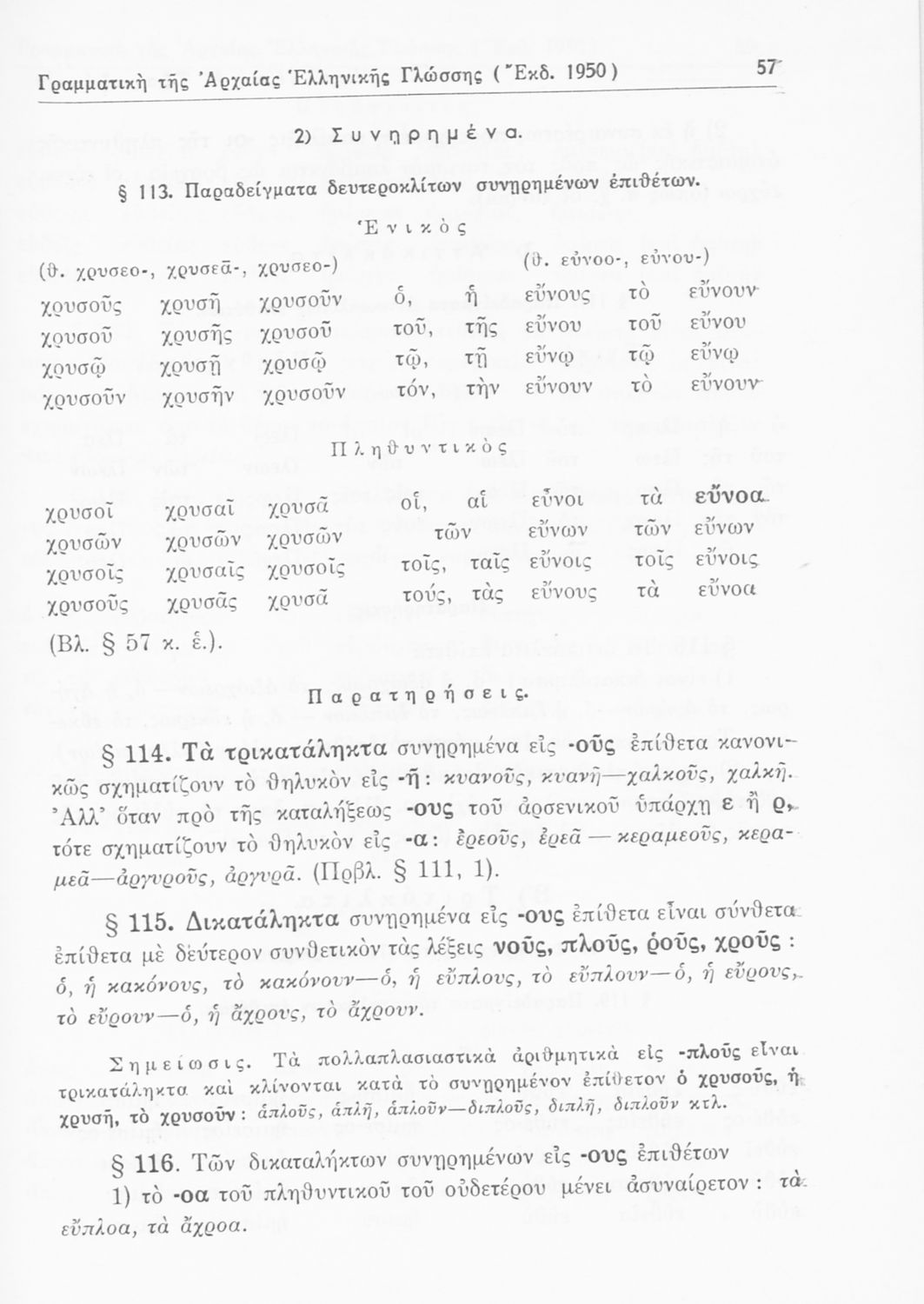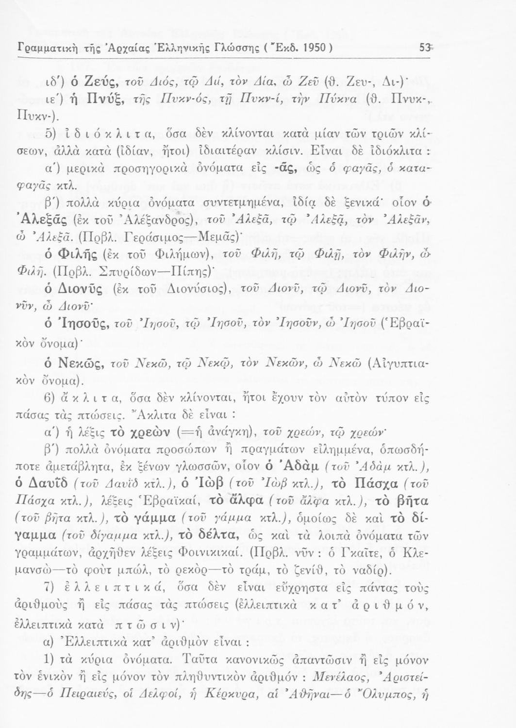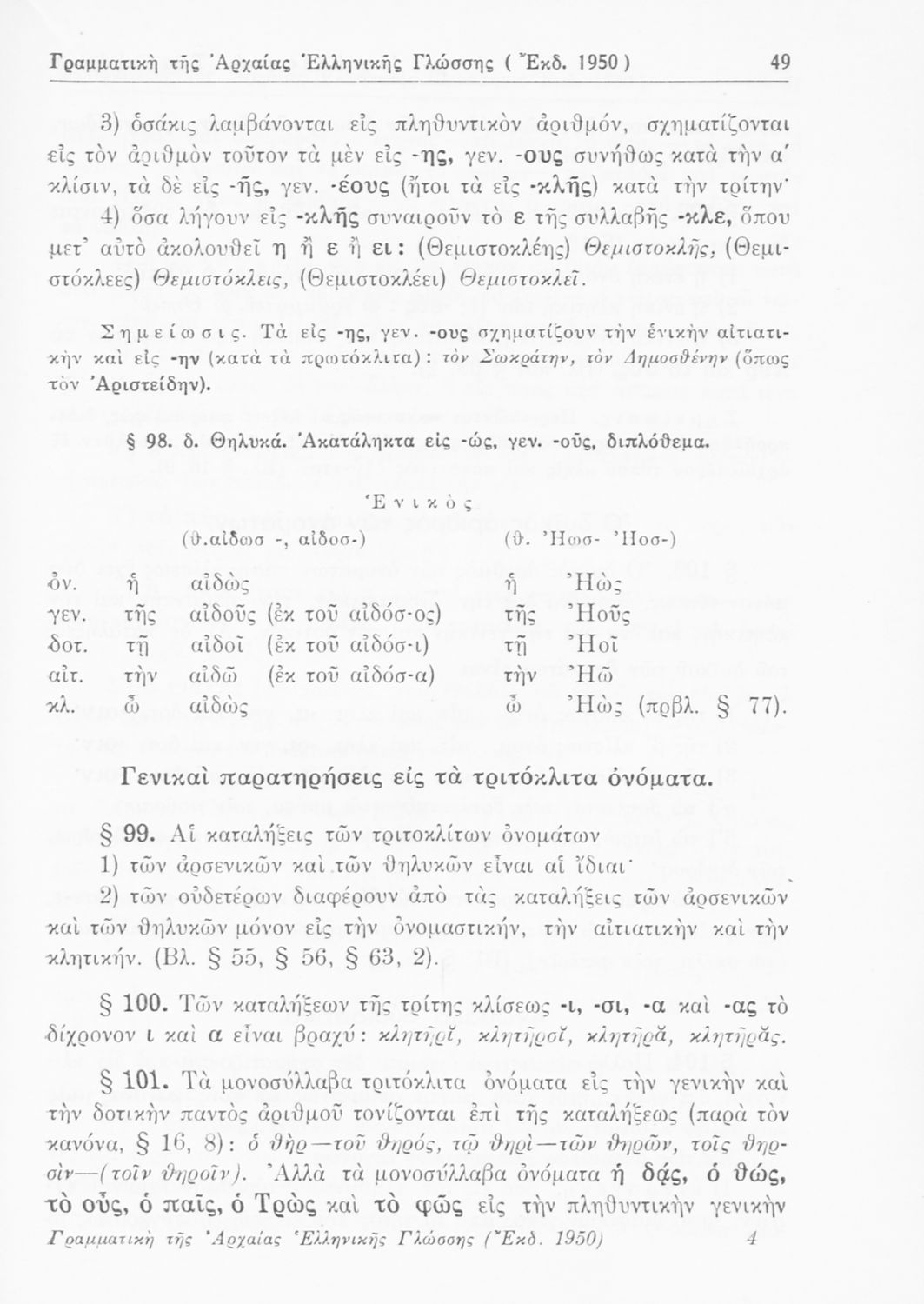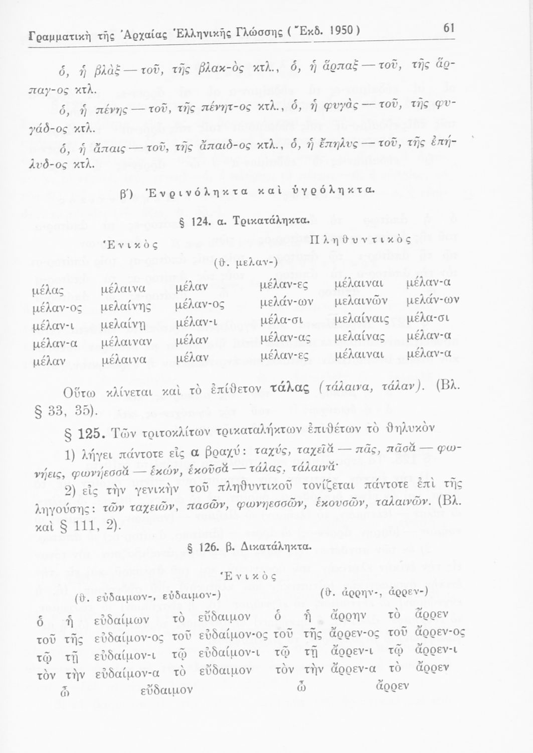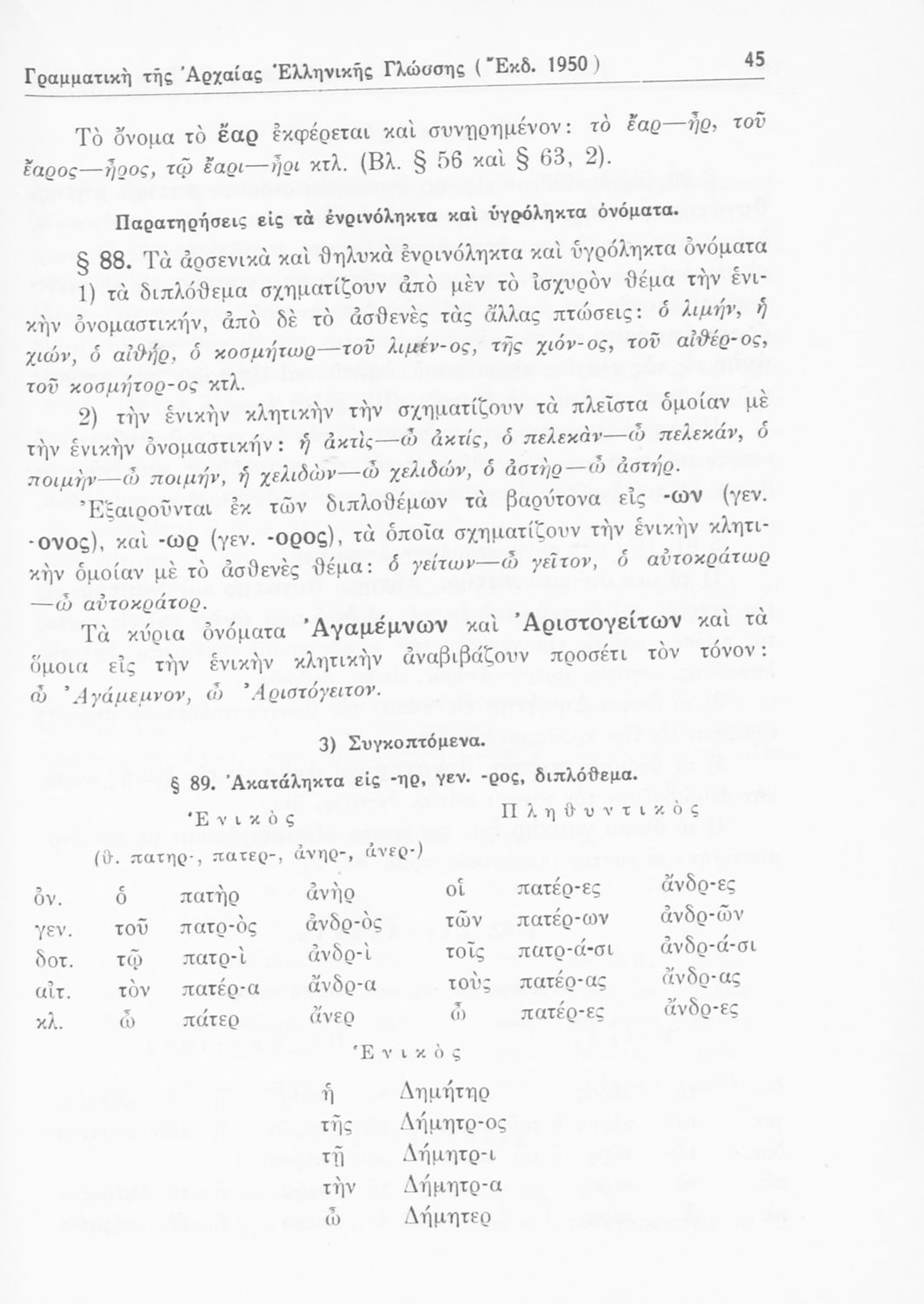 Σχολικό εγχειρίδιο Αρχαίων Ελληνικών Γυμνασίου που περιέχει τους κανόνες γραμματικής και είναι χωρισμένο σε φθογγολογικό, τυπολογικό και ετυμολογικό μέρος. Περιέχει και κατάλογο ανωμάλων ρημάτων.