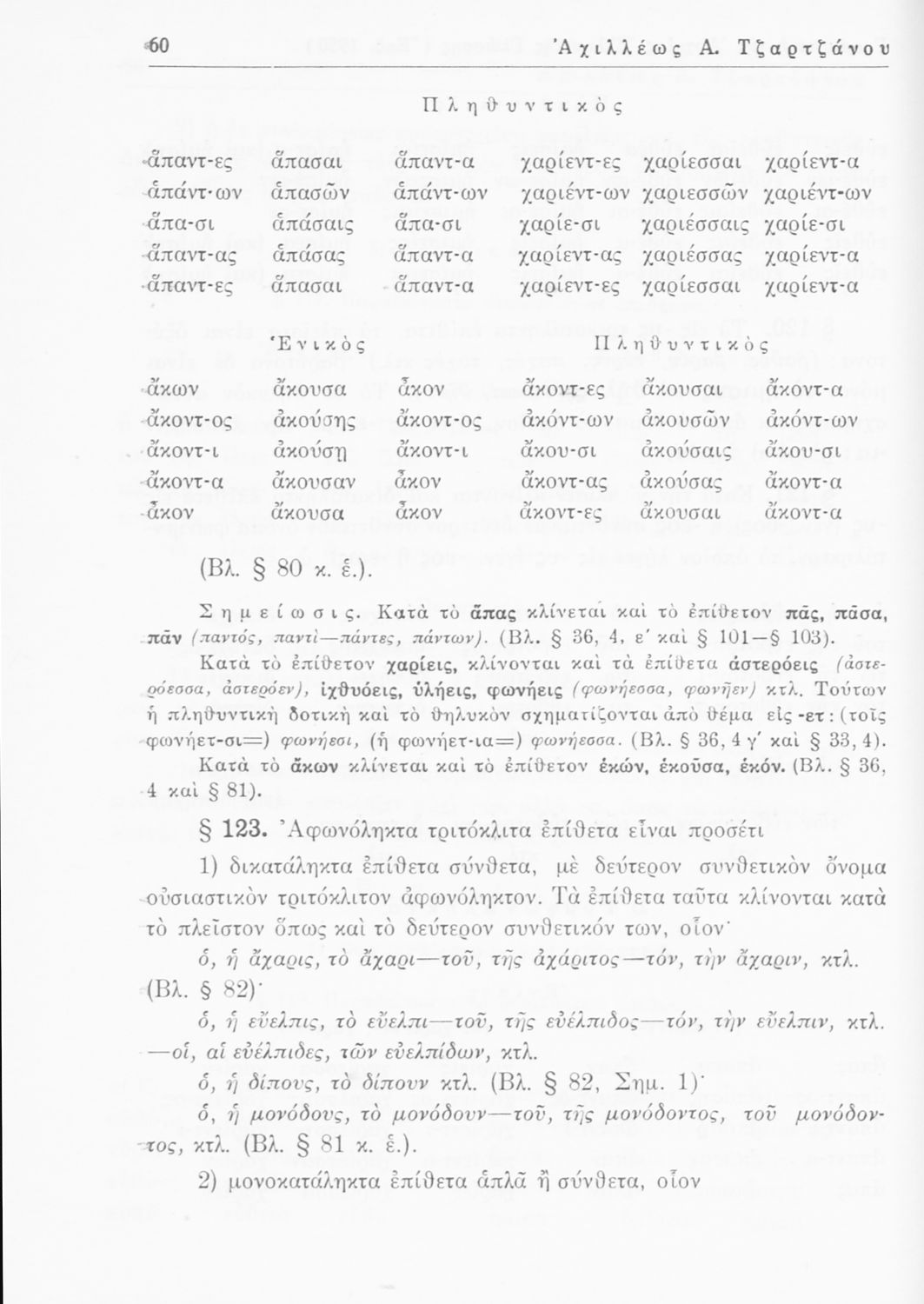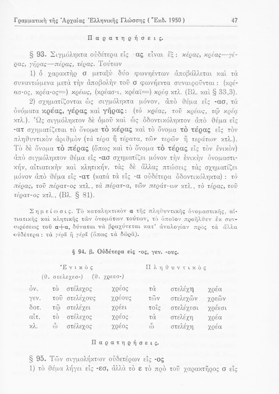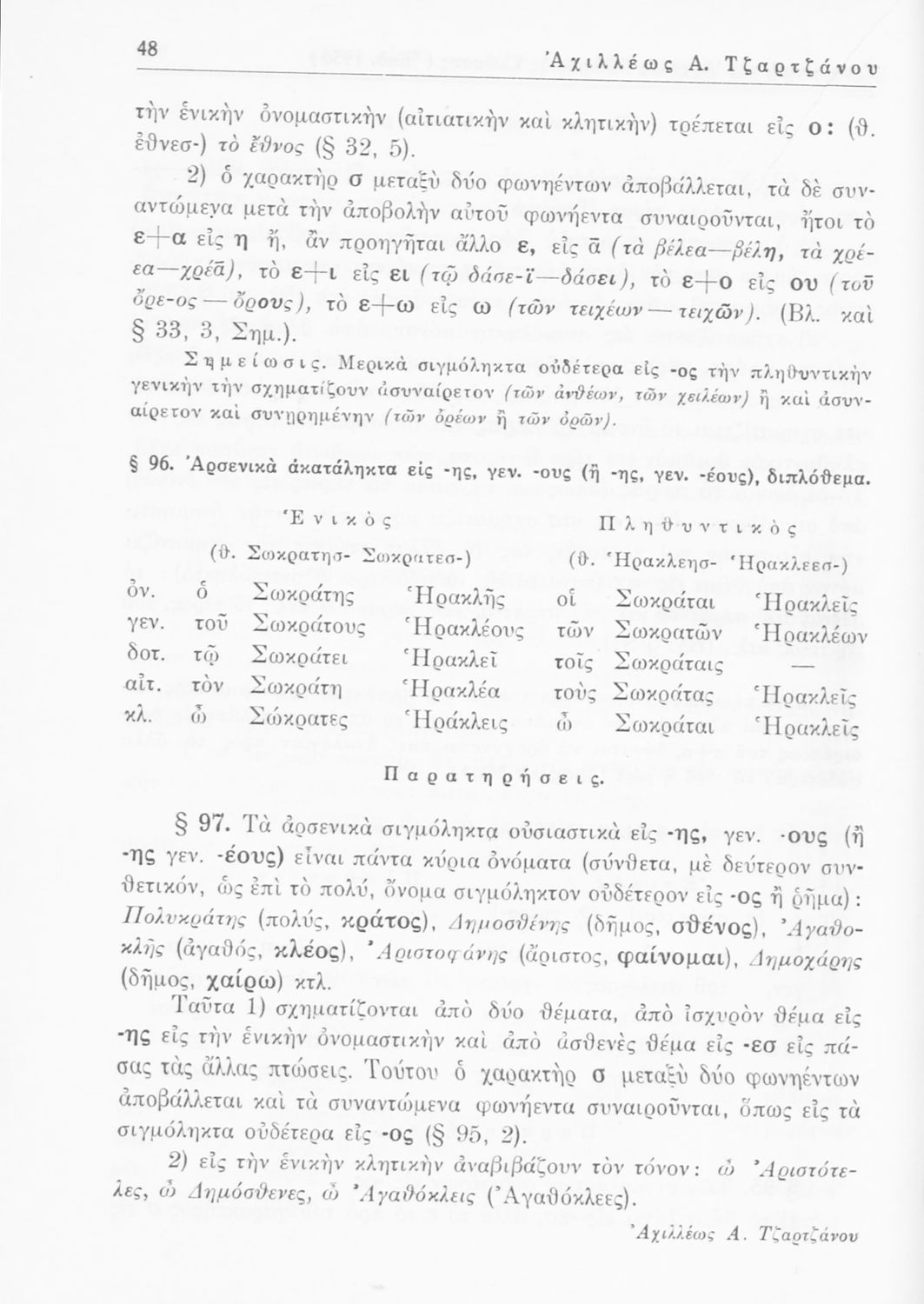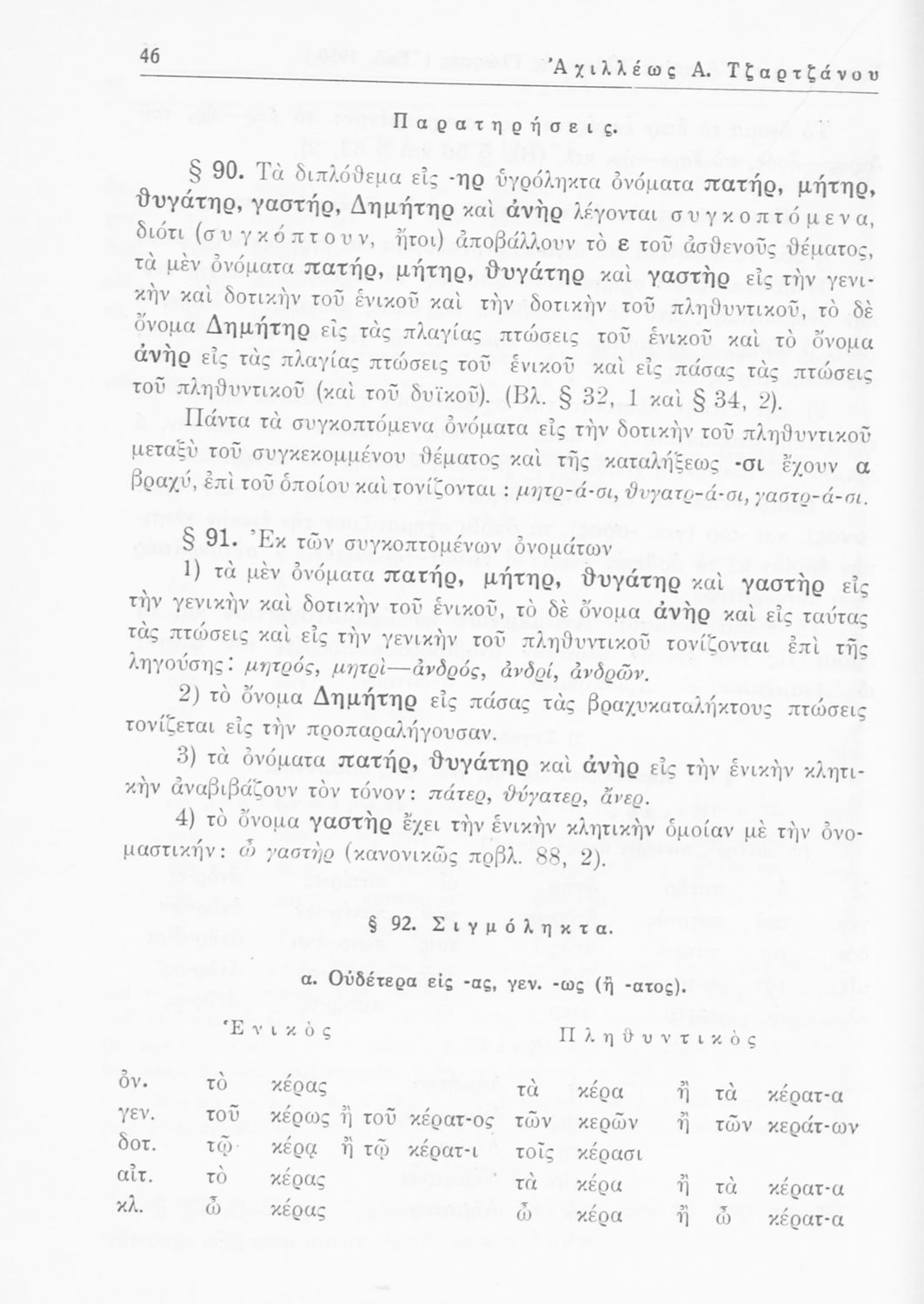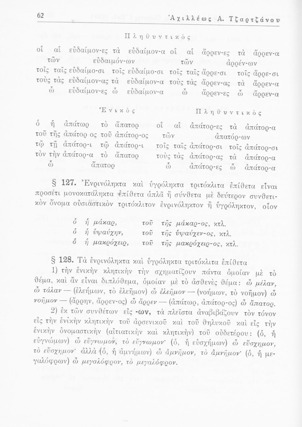 Σχολικό εγχειρίδιο Αρχαίων Ελληνικών Γυμνασίου που περιέχει τους κανόνες γραμματικής και είναι χωρισμένο σε φθογγολογικό, τυπολογικό και ετυμολογικό μέρος. Περιέχει και κατάλογο ανωμάλων ρημάτων.