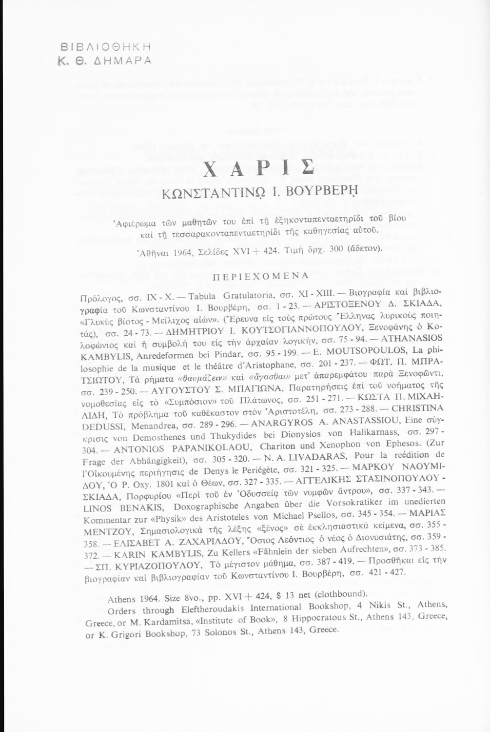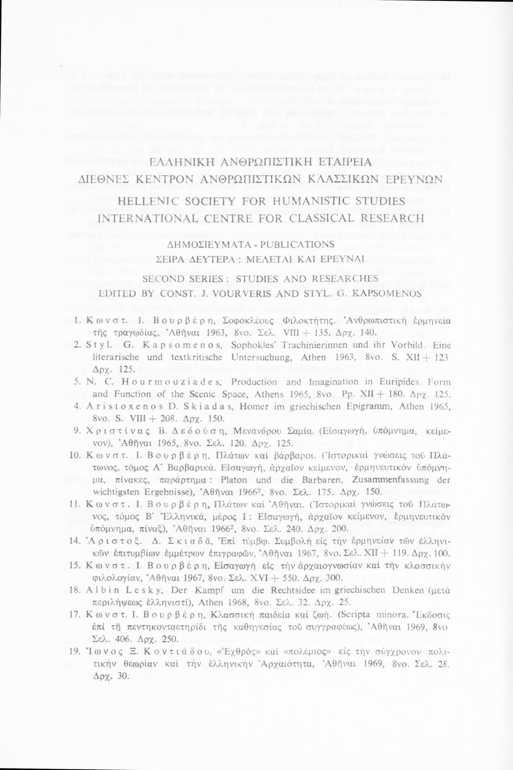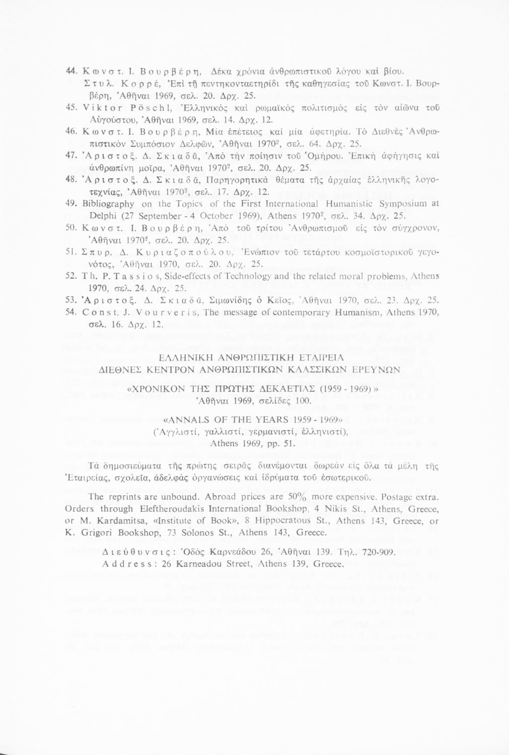Εκδότης: Ελληνική Ανθρωπιστική Εταιρεία Έτος έκδοσης: 1970 Τόπος έκδοσης: Αθήνα Έκδοση: 2η |