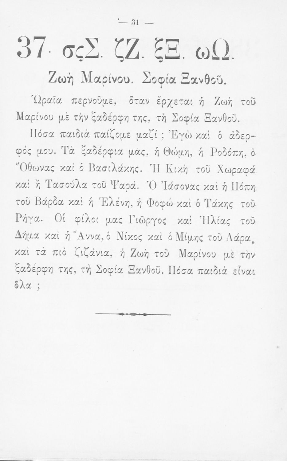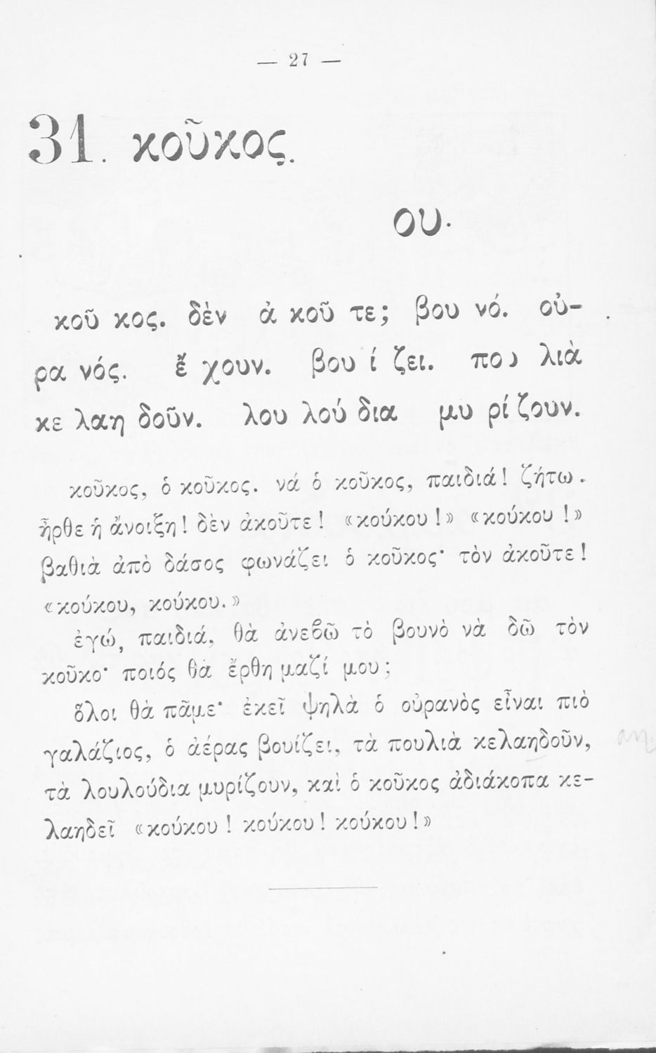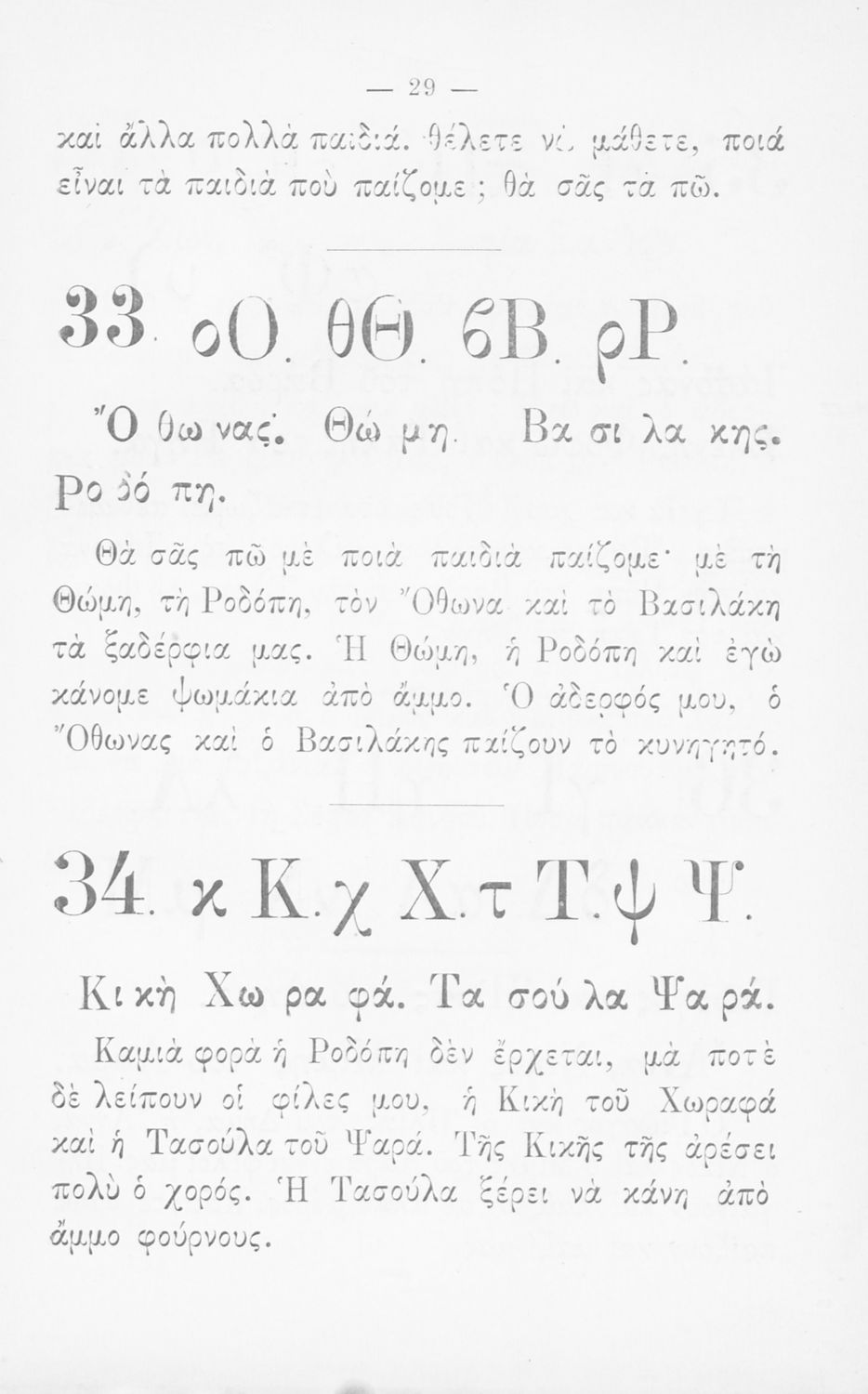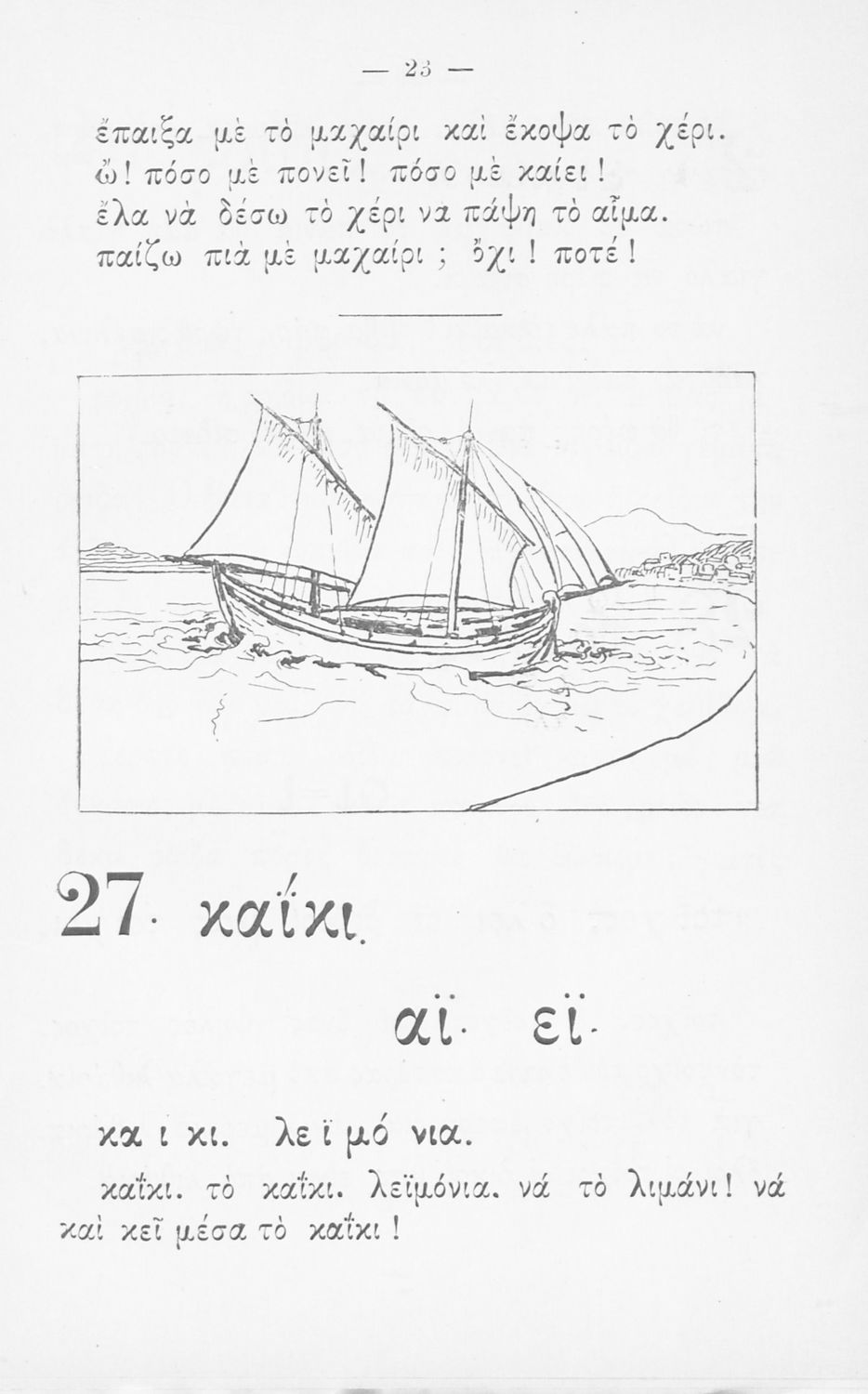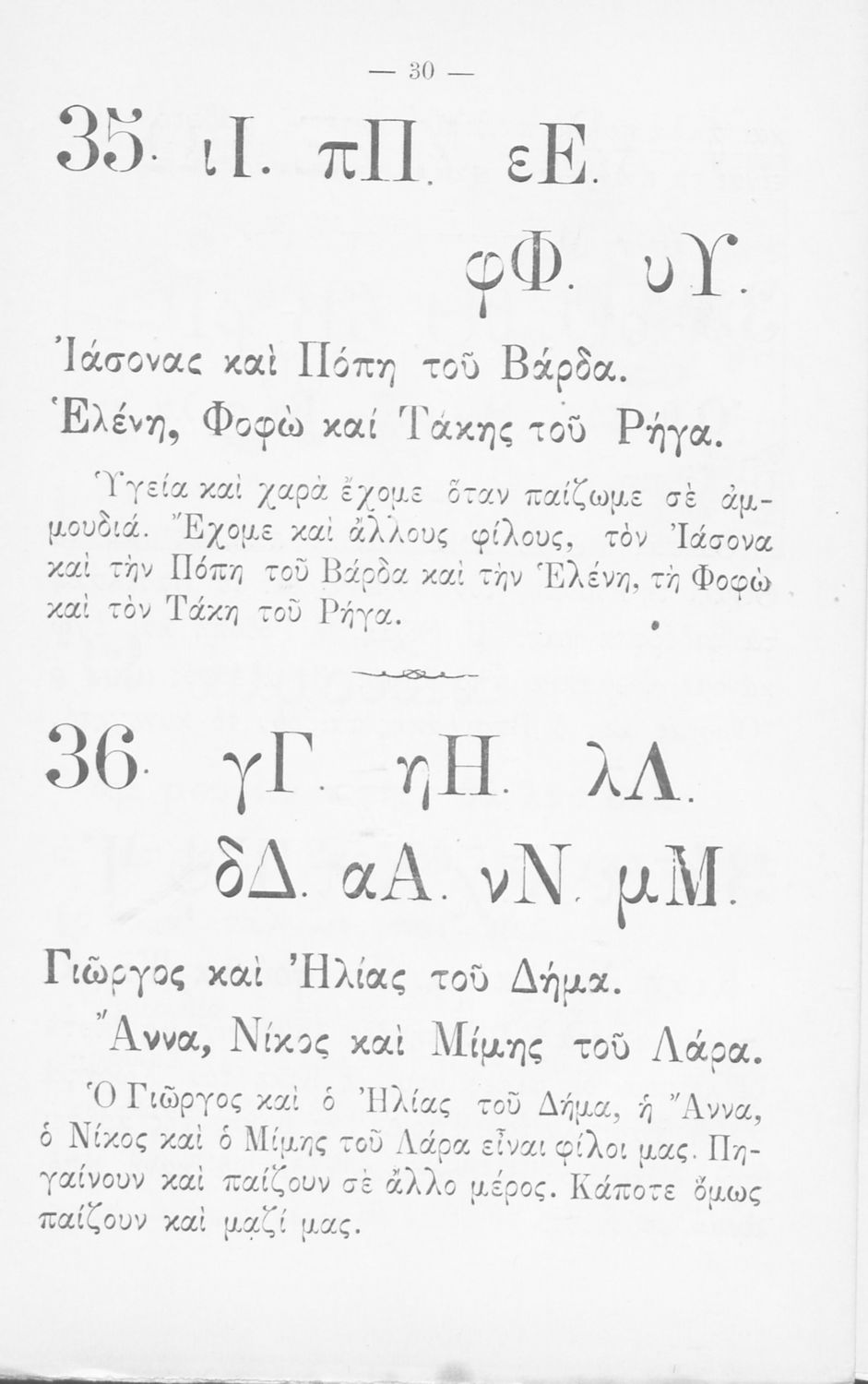 Βαθμίδα εκπαίδευσης: Πρωτοβάθμια Τάξη: Α' Δημοτικού Μάθημα: Νέα Ελληνικά Γλώσσα: Δημοτική Παρουσίαση περιεχομένου: Αναγνωστικό Α΄ Δημοτικού που περιλαμβάνει την εκμάθηση του ελληνικού αλφάβητου, των πρώτων συλλαβών, λέξεων, φράσεων και μικρών παραγράφων. Η θεματολογία αντλείται από την ελληνική ύπαιθρο, την αγροτική ζωή και τον οικογενειακό περίγυρο. |