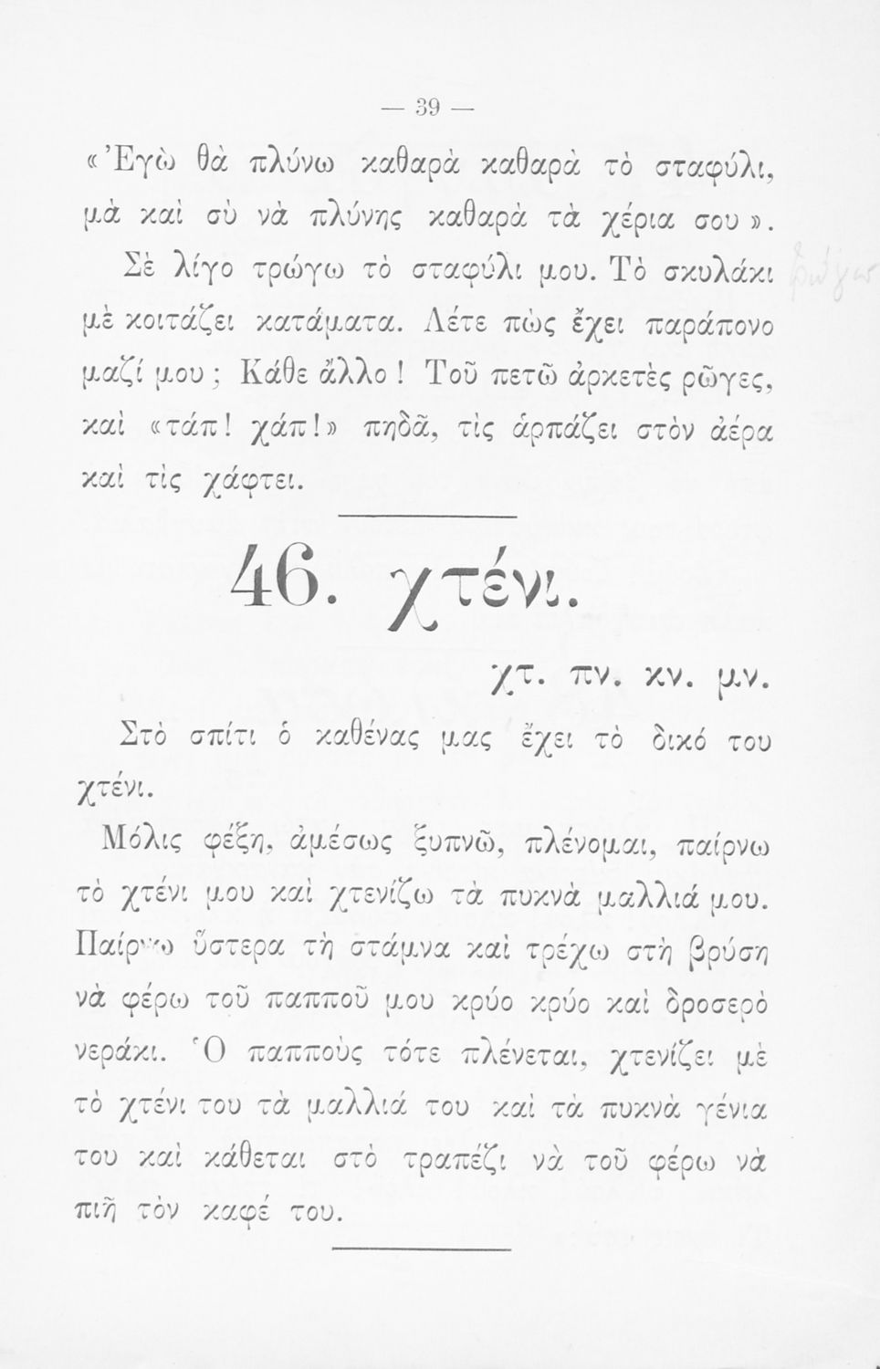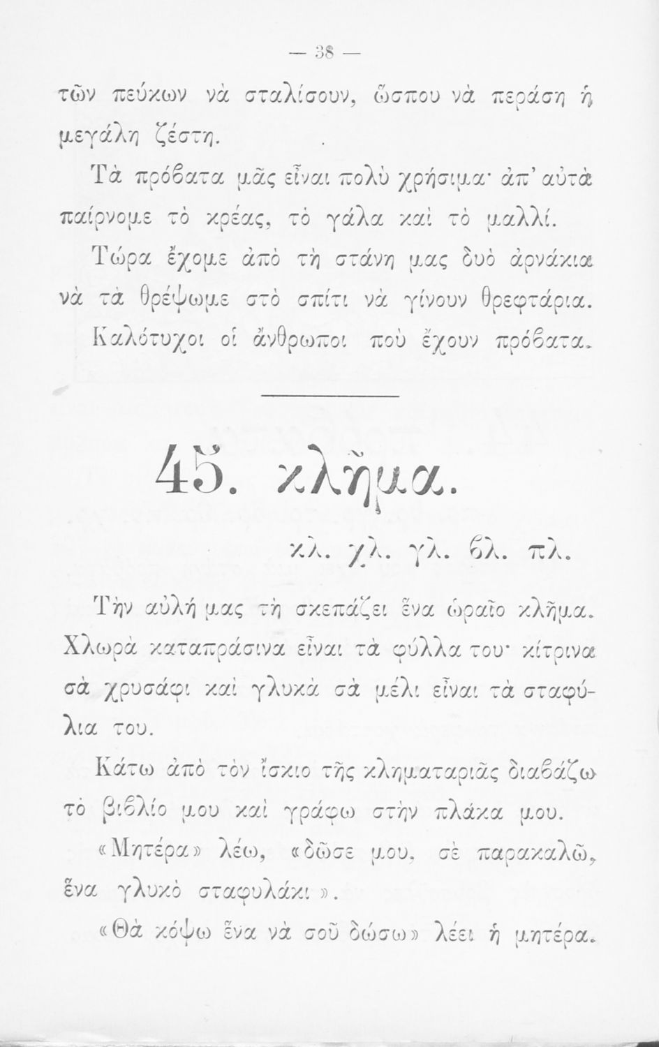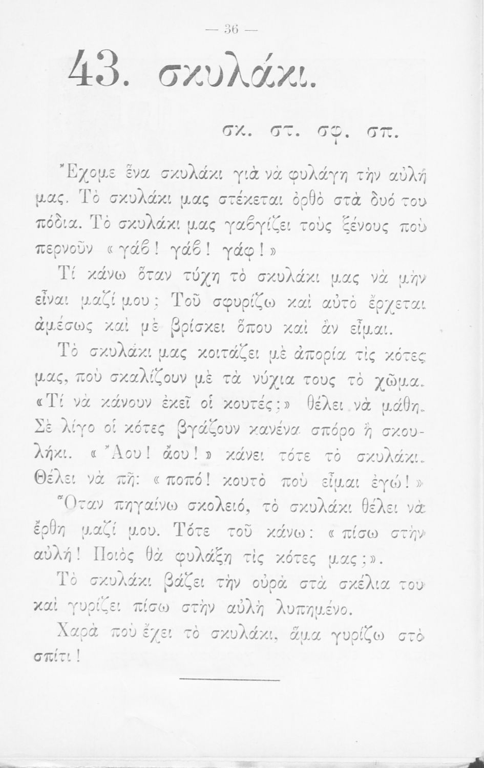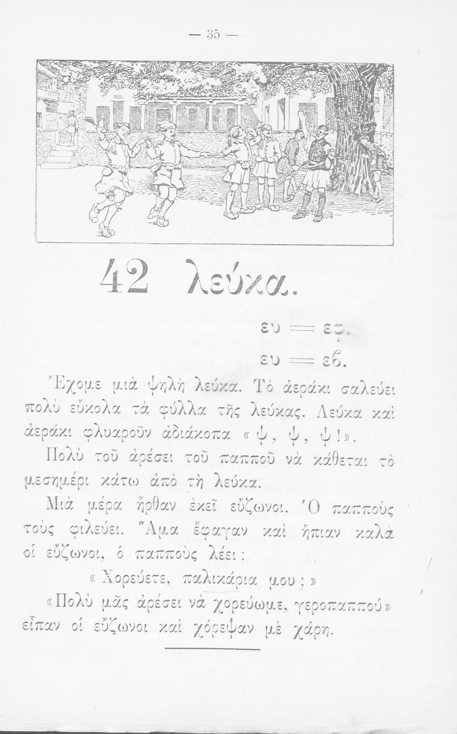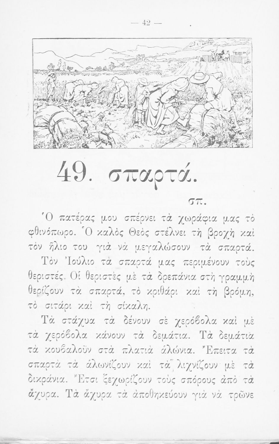 Αναγνωστικό Α΄ Δημοτικού που περιλαμβάνει την εκμάθηση του ελληνικού αλφάβητου, των πρώτων συλλαβών, λέξεων, φράσεων και μικρών παραγράφων. Η θεματολογία αντλείται από την ελληνική ύπαιθρο, την αγροτική ζωή και τον οικογενειακό περίγυρο.