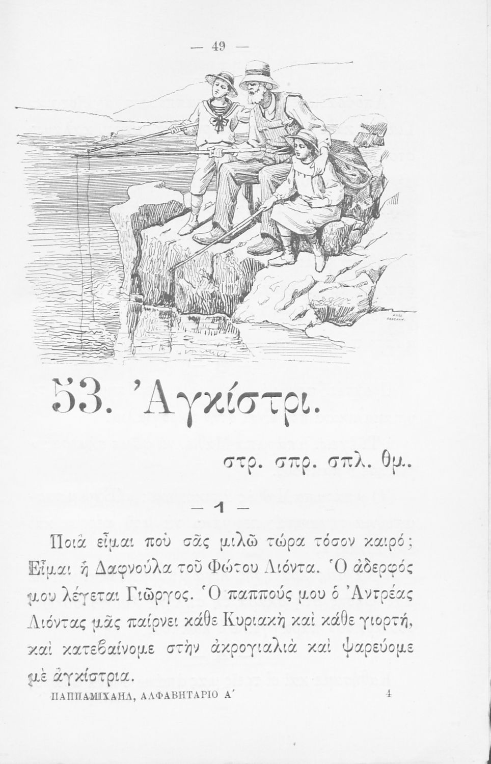 Βαθμίδα εκπαίδευσης: Πρωτοβάθμια Τάξη: Α' Δημοτικού Μάθημα: Νέα Ελληνικά Γλώσσα: Δημοτική Παρουσίαση περιεχομένου: Αναγνωστικό Α΄ Δημοτικού που περιλαμβάνει την εκμάθηση του ελληνικού αλφάβητου, των πρώτων συλλαβών, λέξεων, φράσεων και μικρών παραγράφων. Η θεματολογία αντλείται από την ελληνική ύπαιθρο, την αγροτική ζωή και τον οικογενειακό περίγυρο. |