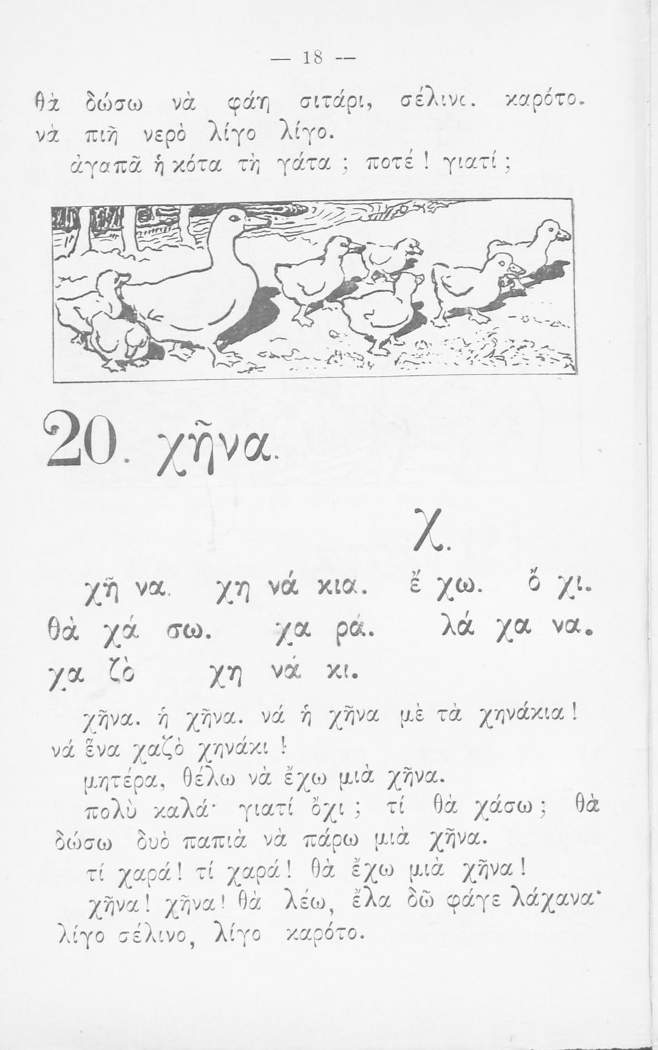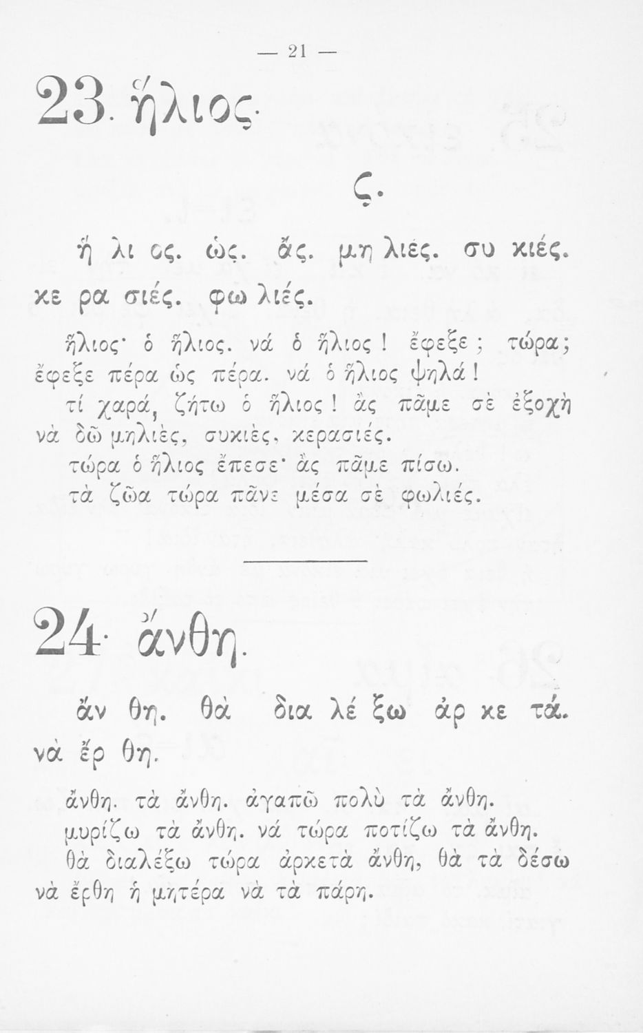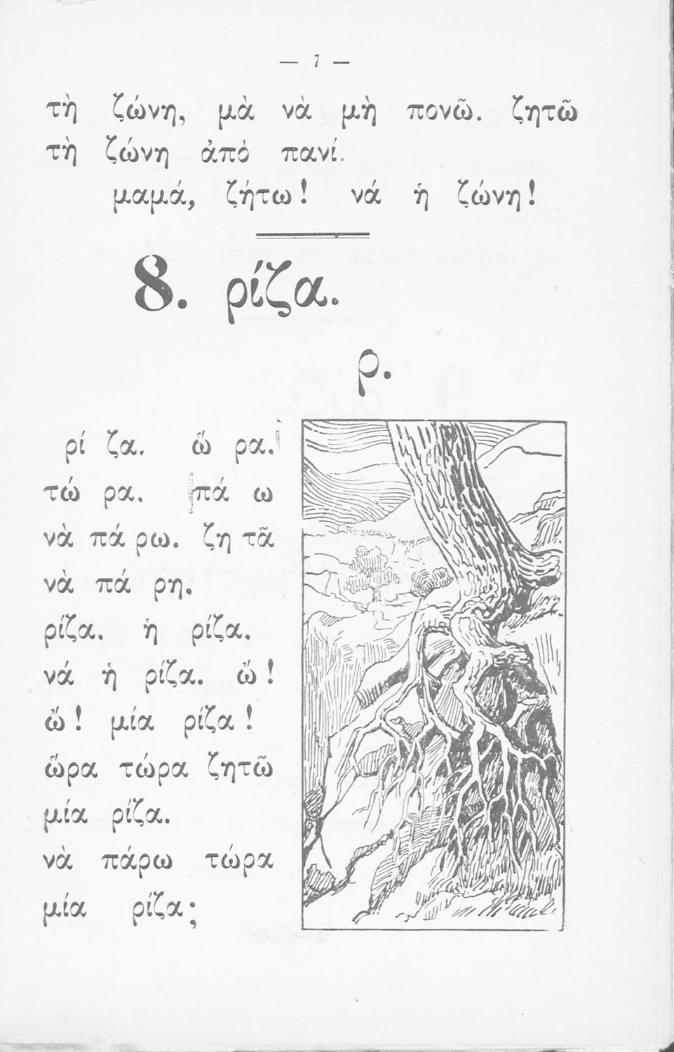 Αναγνωστικό Α΄ Δημοτικού που περιλαμβάνει την εκμάθηση του ελληνικού αλφάβητου, των πρώτων συλλαβών, λέξεων, φράσεων και μικρών παραγράφων. Η θεματολογία αντλείται από την ελληνική ύπαιθρο, την αγροτική ζωή και τον οικογενειακό περίγυρο.