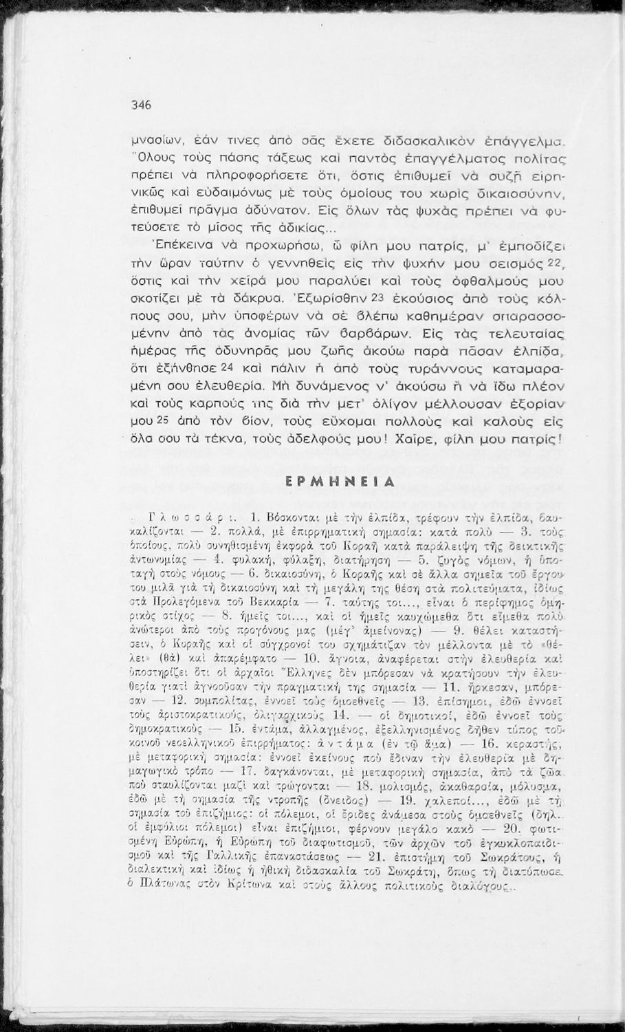 Μαθητικό βοήθημα Αρχαίων Ελληνικών Γυμνασίου που περιλαμβάνει τα κείμενα του Πλάτωνα Απολογία Σωκράτους, Κρίτων, Λάχης και πραγματολογικές παρατηρήσεις.