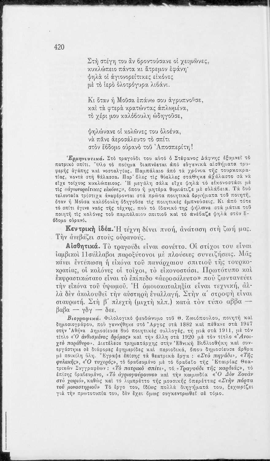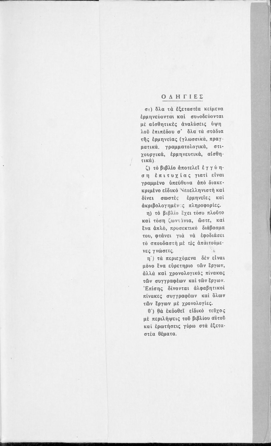 Μαθητικό βοήθημα Νέων Ελληνικών για τη Μέση Εκπαίδευση που περιλαμβάνει οδηγίες για την ανάλυση και εννοιολογική προσέγγιση των νεοελληνικών λογοτεχνικών κειμένων. Φέρει ιδιόχειρη αφιέρωση.
