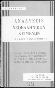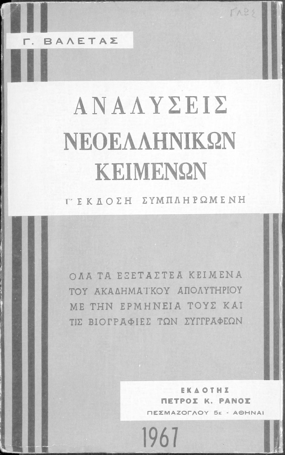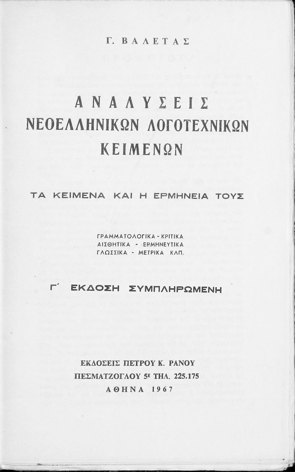 Εκδότης: Πέτρος Ράνος Έτος έκδοσης: 1967 Τόπος έκδοσης: Αθήνα Έκδοση: 3η |